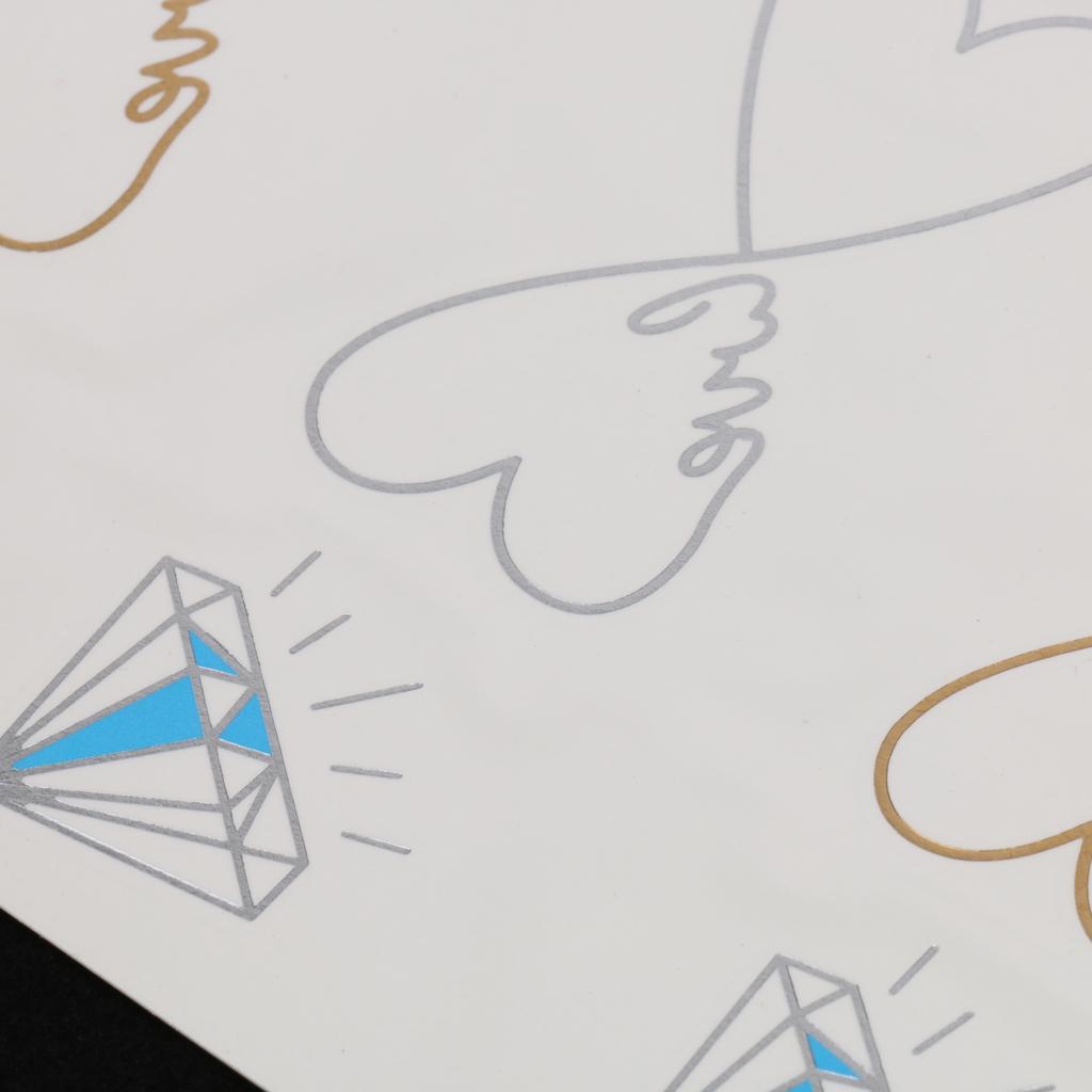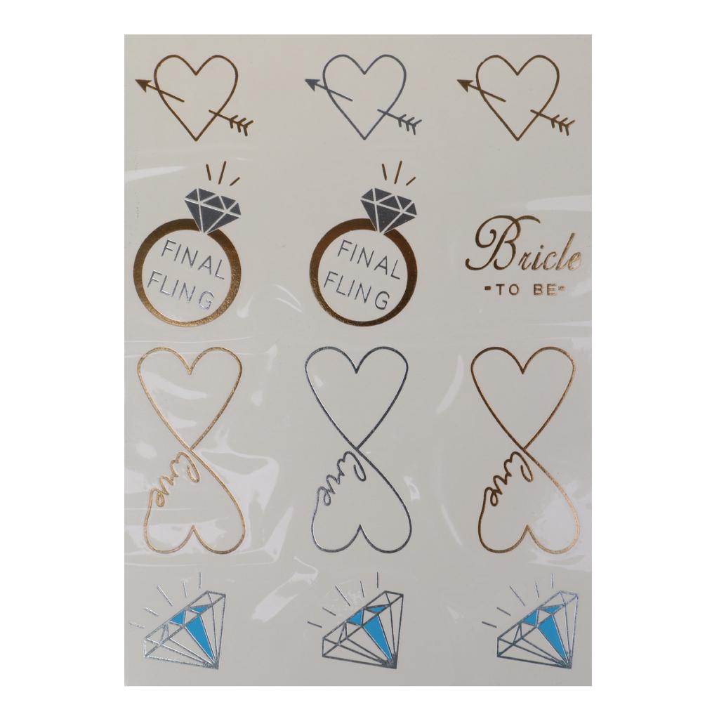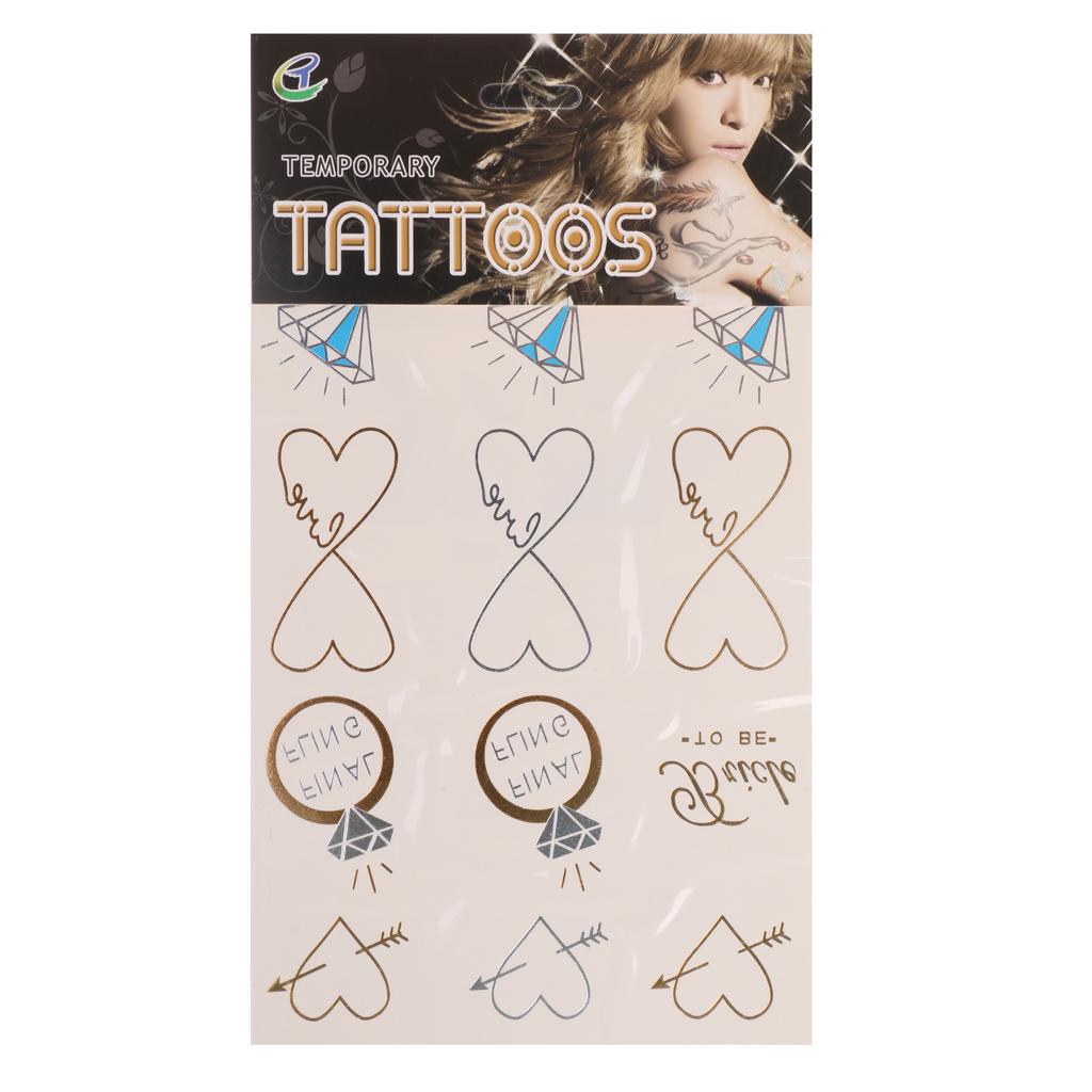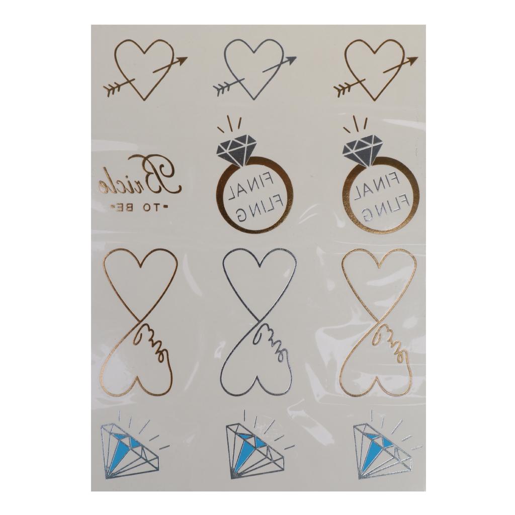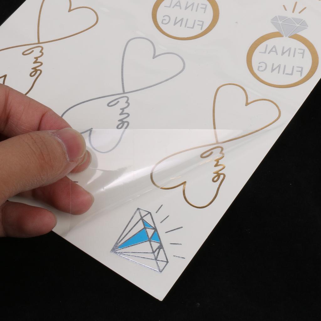 Metallic Temporary Tattoos Blue Diamond Ring Heart Sticker Bride Party DIY Body Arm Decor Removable