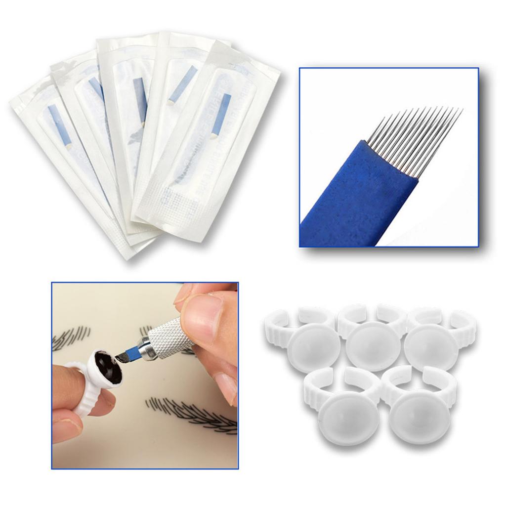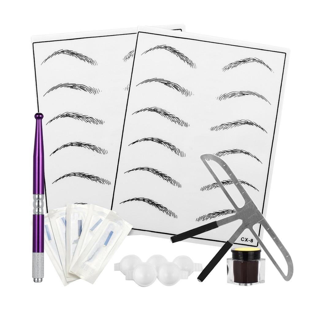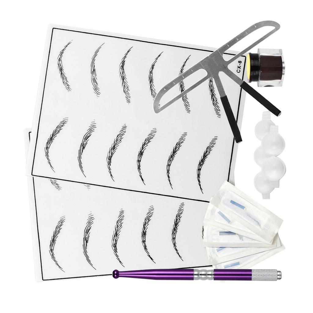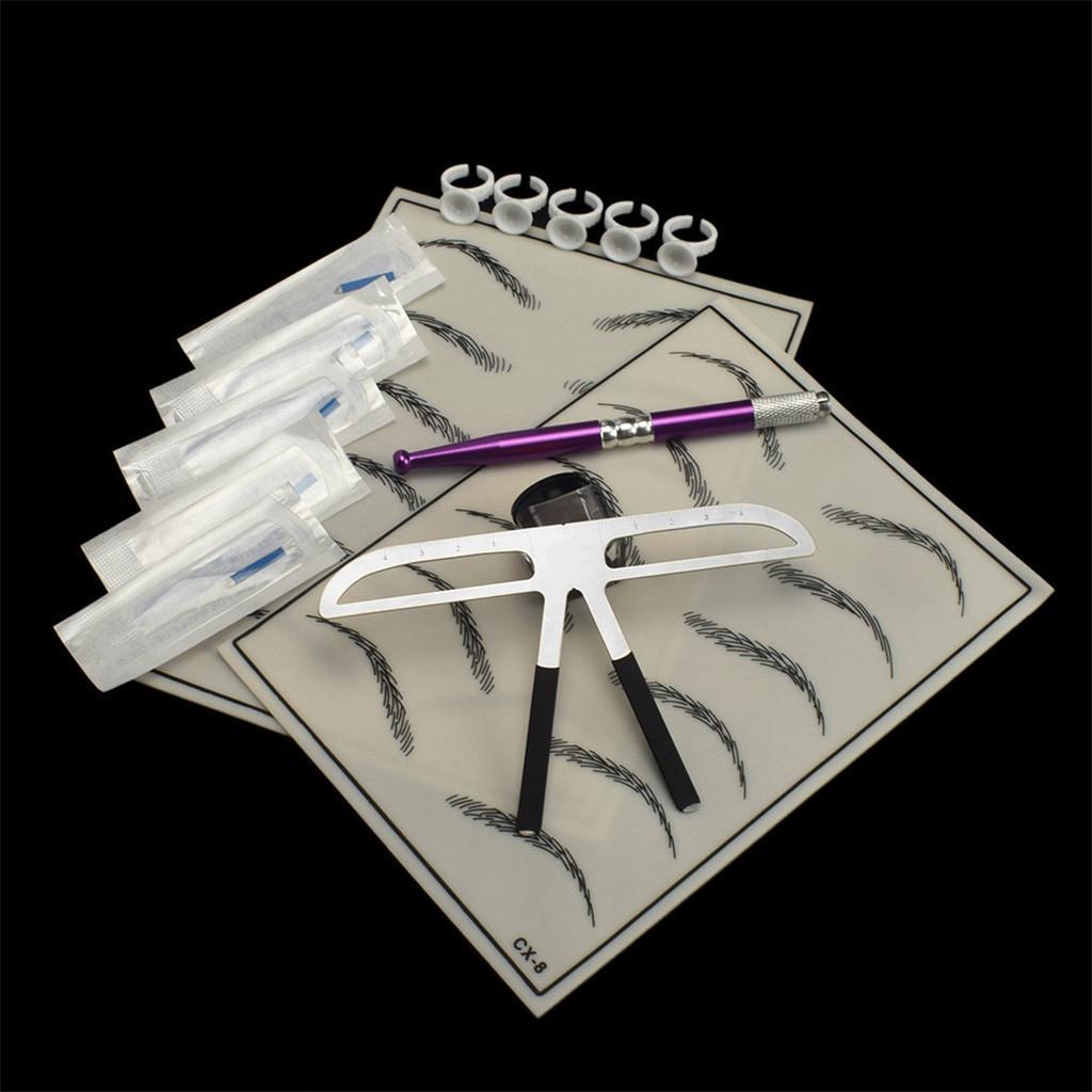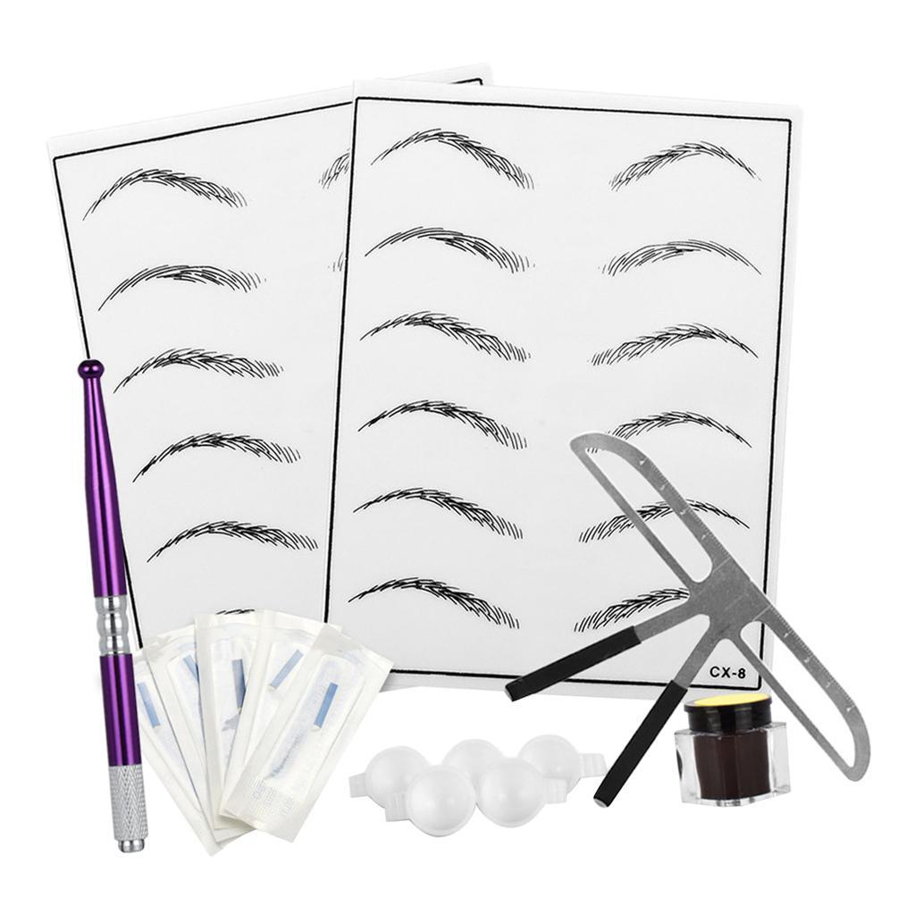 Microblading Permanent Eyebrow Tattoo Ruler Needles Pen Ink Pigment Kit Set