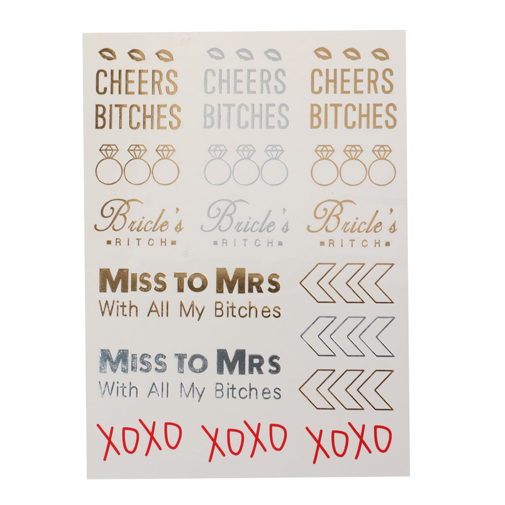 Party Waterproof Transfer Flash Temporary Tattoo Body Art Makeup Tattoo Sticker XOXO Bride