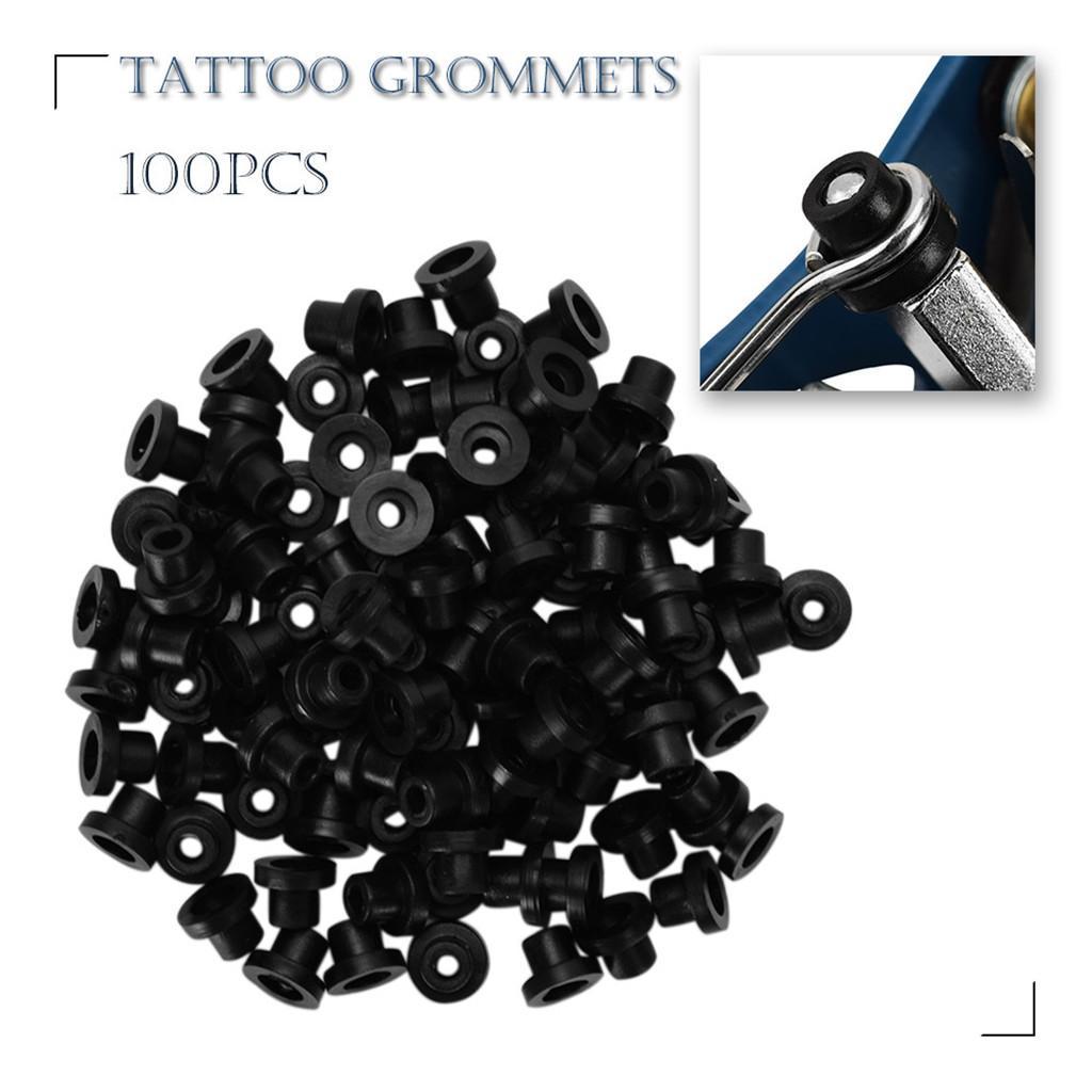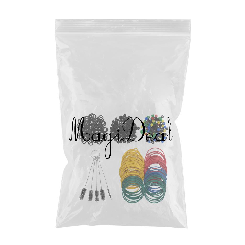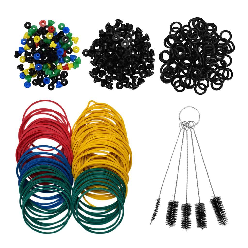 Tattoo Machine Parts - 100 Tattoo Silicone O-rings, 100 Rubber Bands, 100 Multi-Colored Tattoo Grommets, 5 Cleaning Brushes