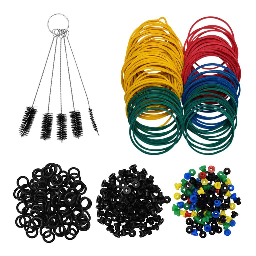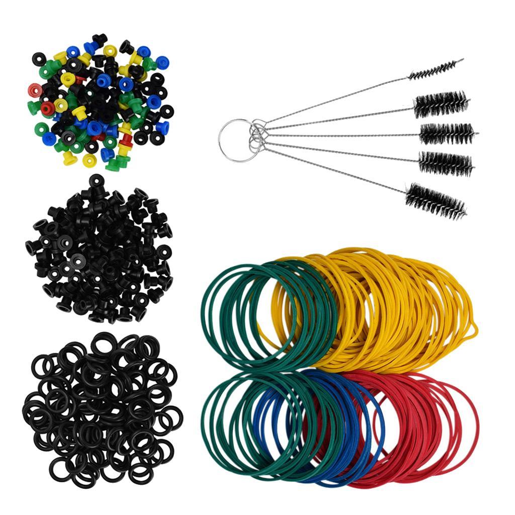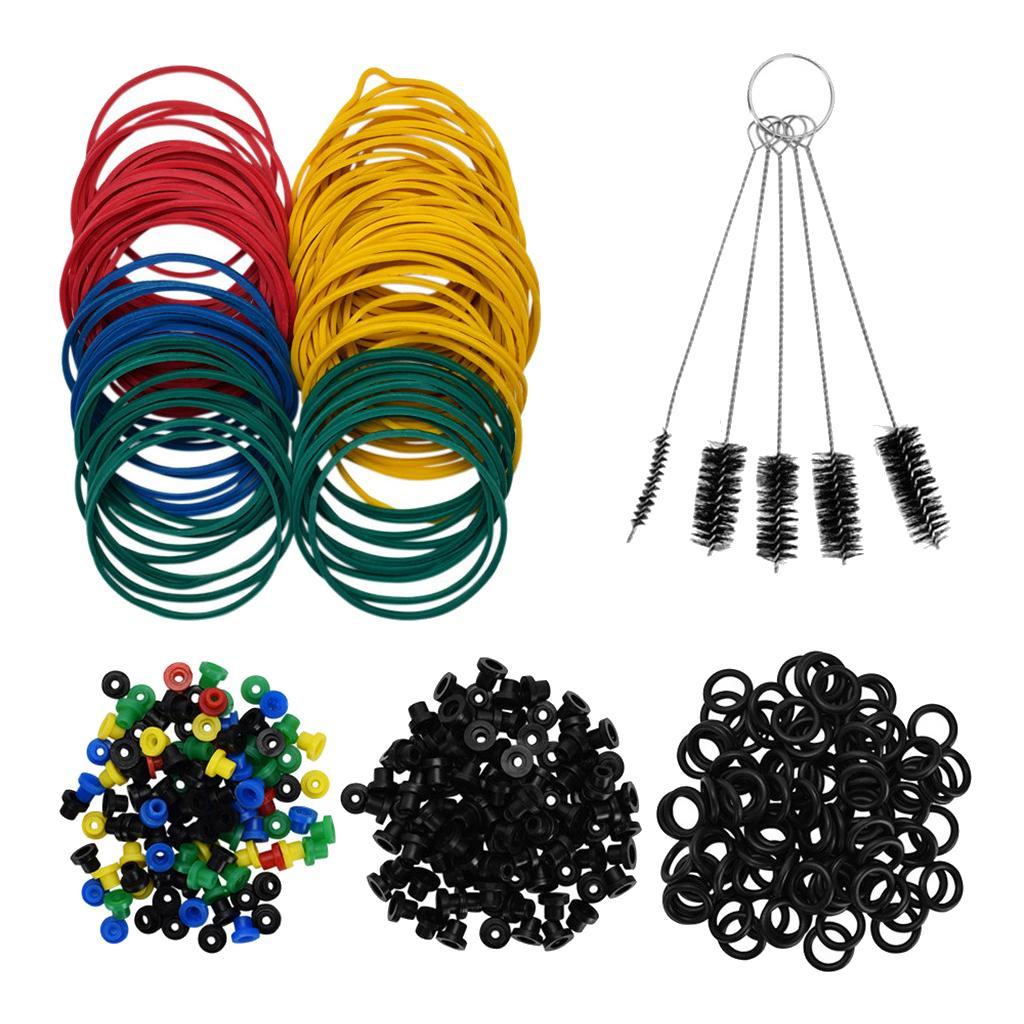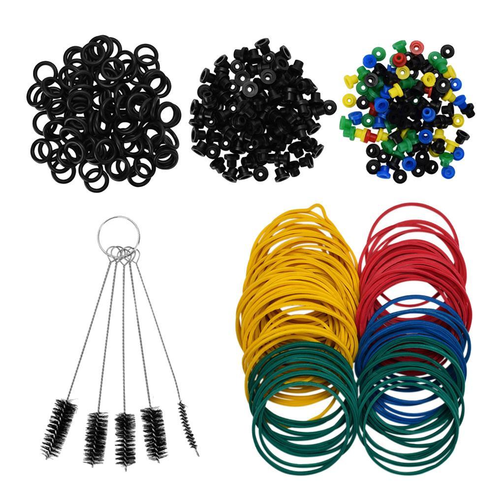 Tattoo Machine Parts - 100 Tattoo Silicone O-rings, 100 Rubber Bands, 100 Multi-Colored Tattoo Grommets, 5 Cleaning Brushes
