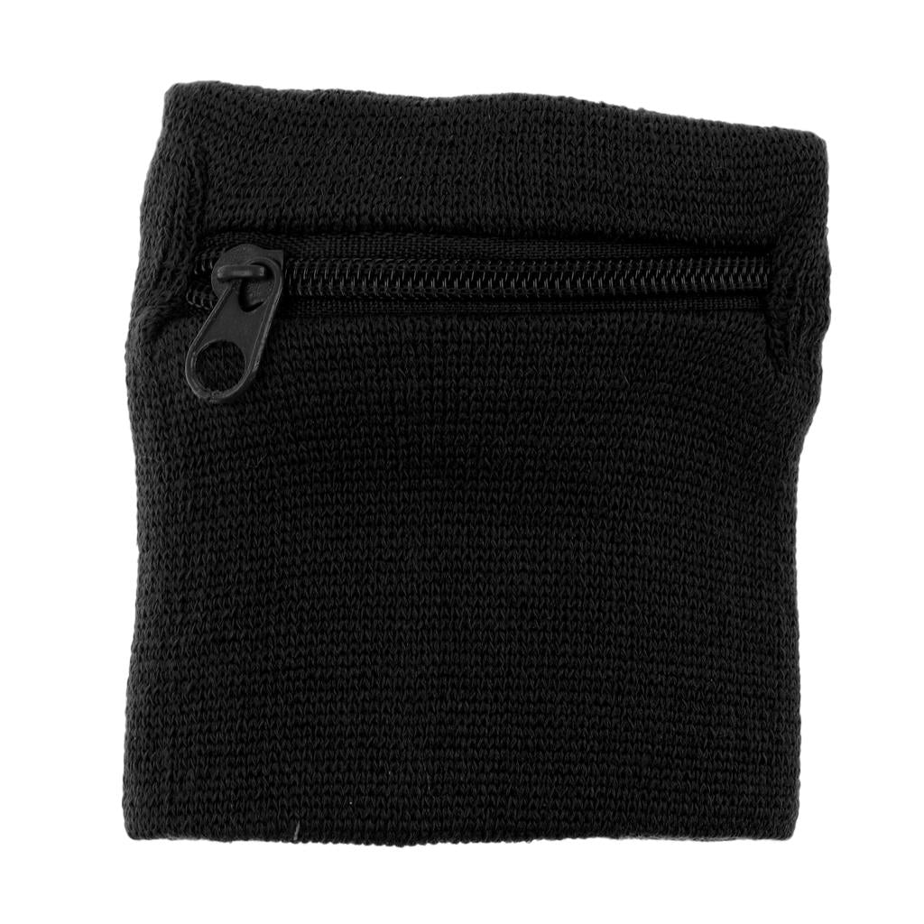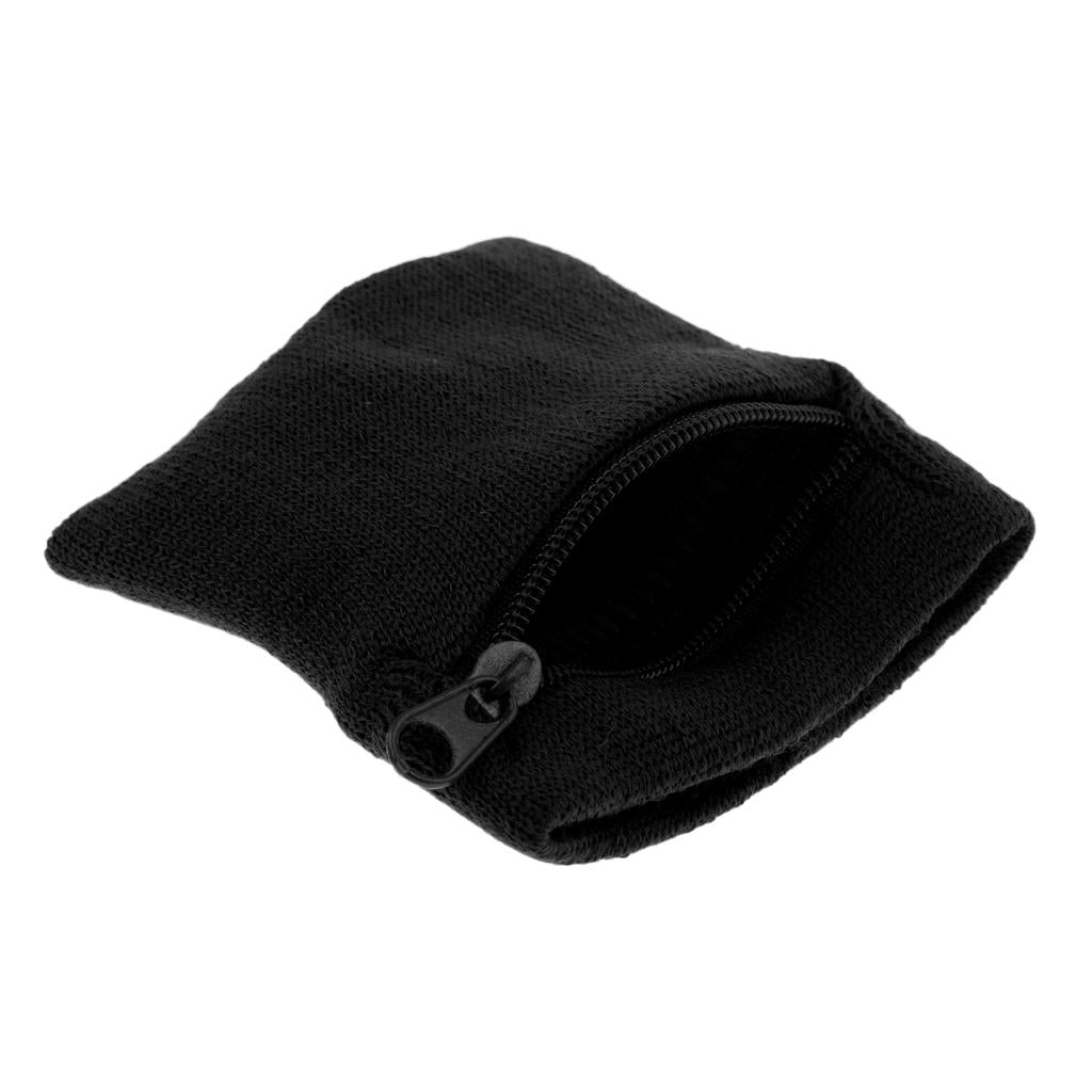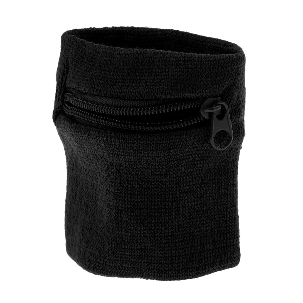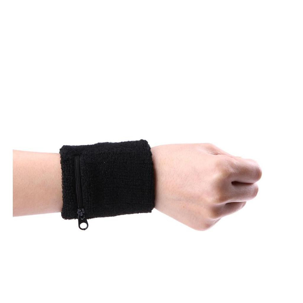 Outdoor Sports Fitness Wristband Sweatband Wallet Zipper Pocket Black
