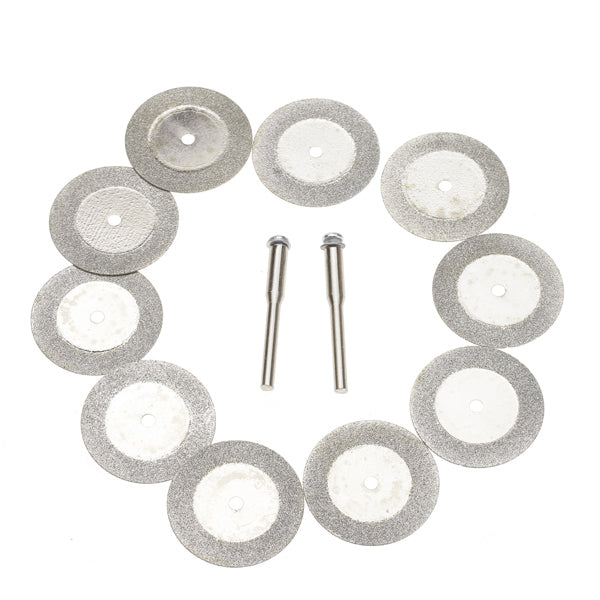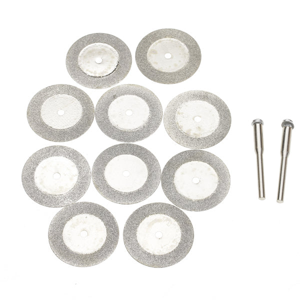 40mm cutting discs with diamond coating on both sides. Come with 3.1mm diameter mandrel, these cutting discs will fit most rotary tools. These cutting discs are perfect for all sorts of jobs like model making and the like.