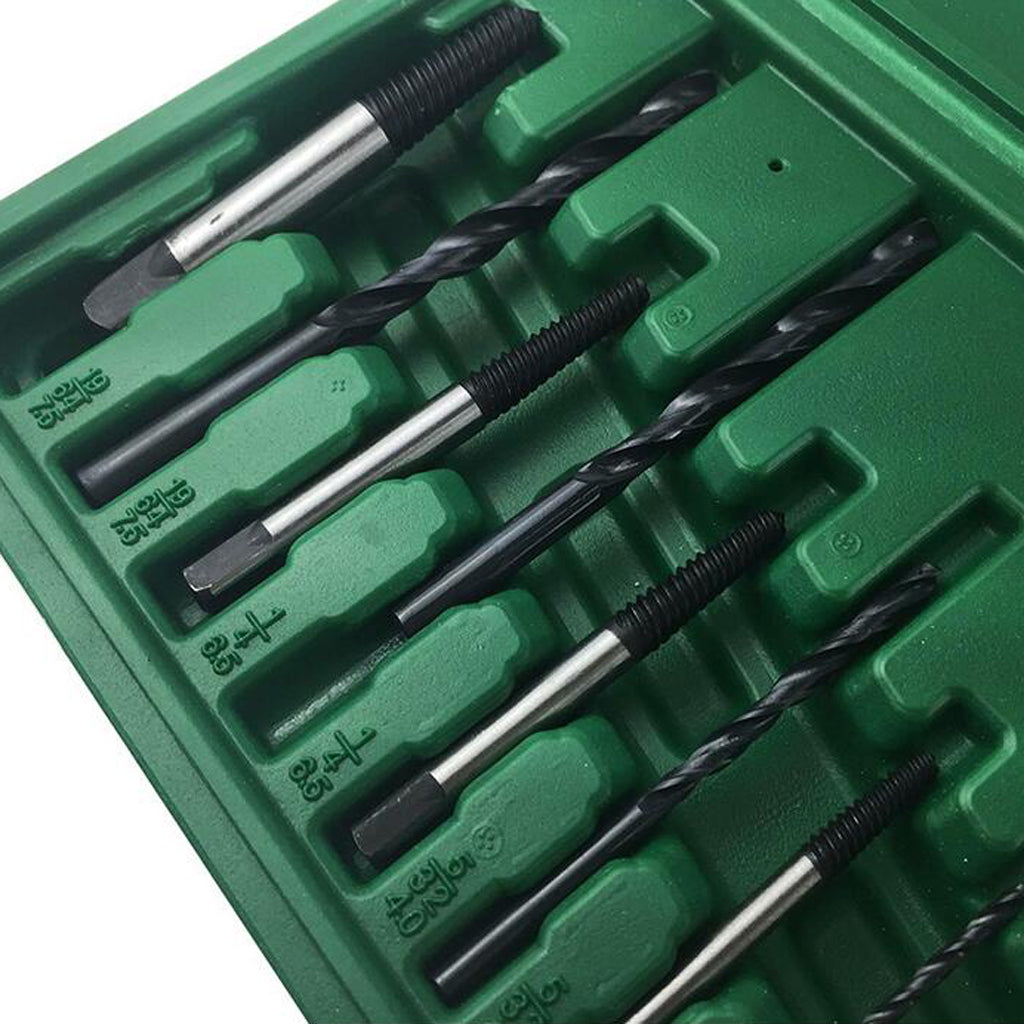 Aggressive left handed(extractors) and righted handed(drill bits) spiral flute design for extra gripping power. Drill bits' diameters and recommended extract diameters of broken screws are etched on case.