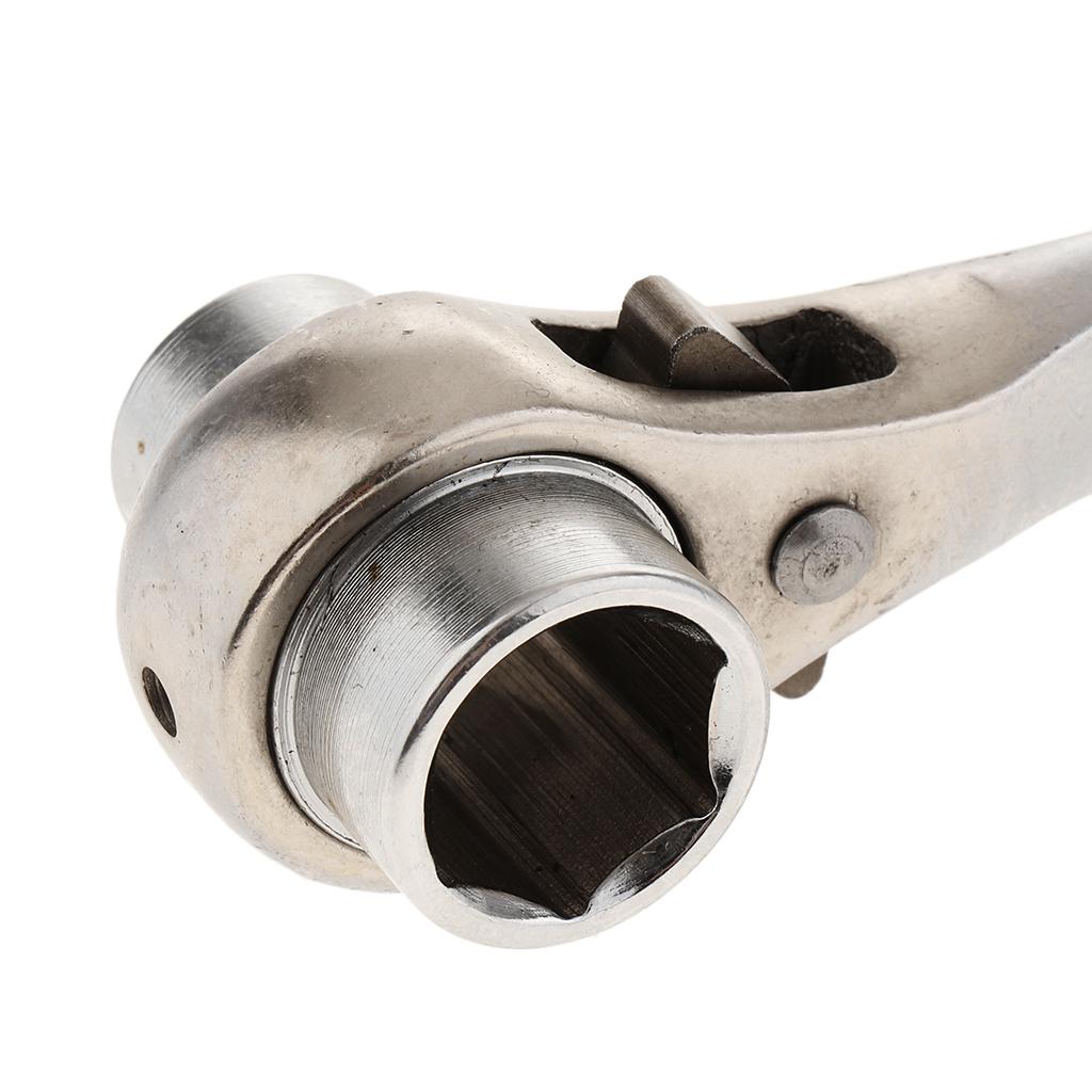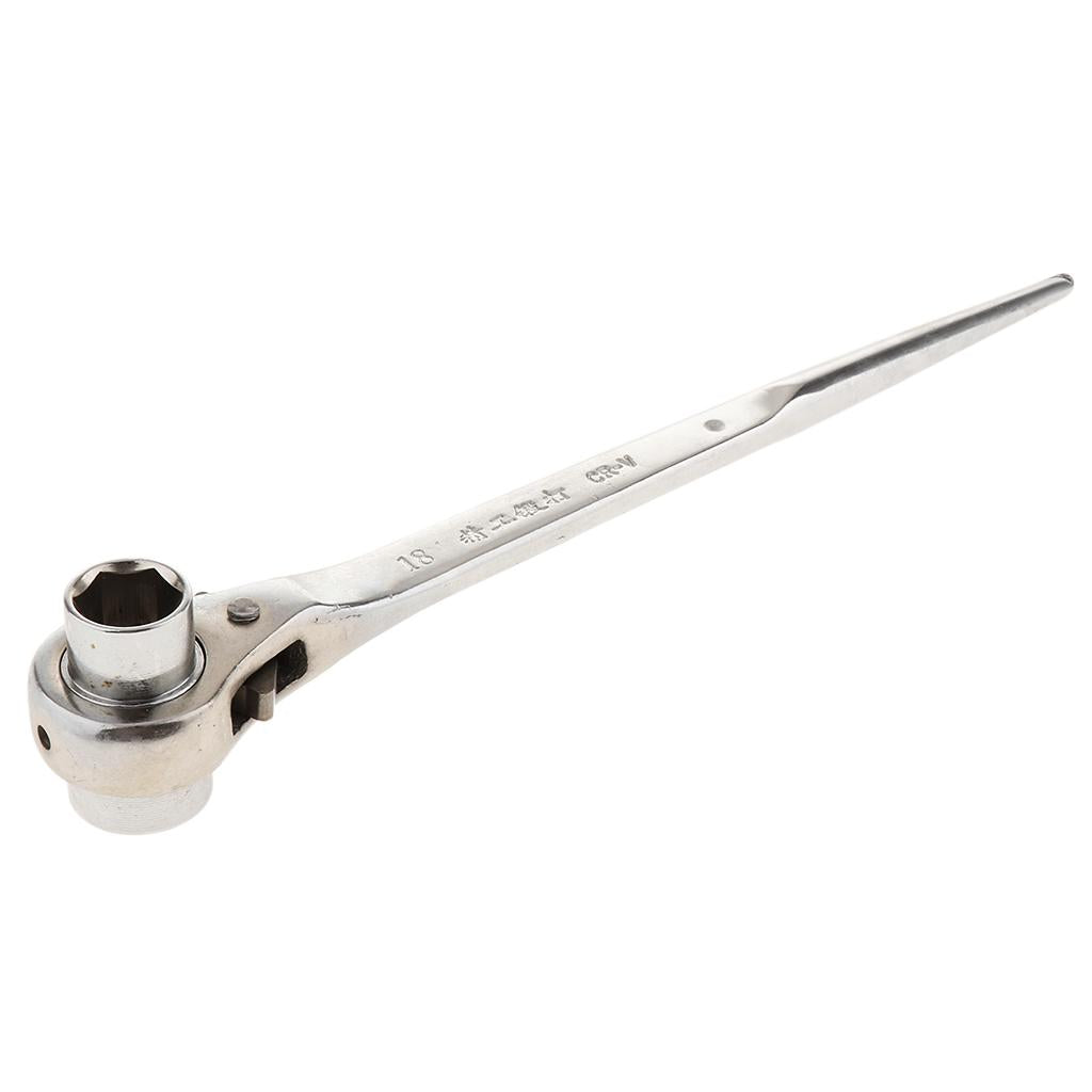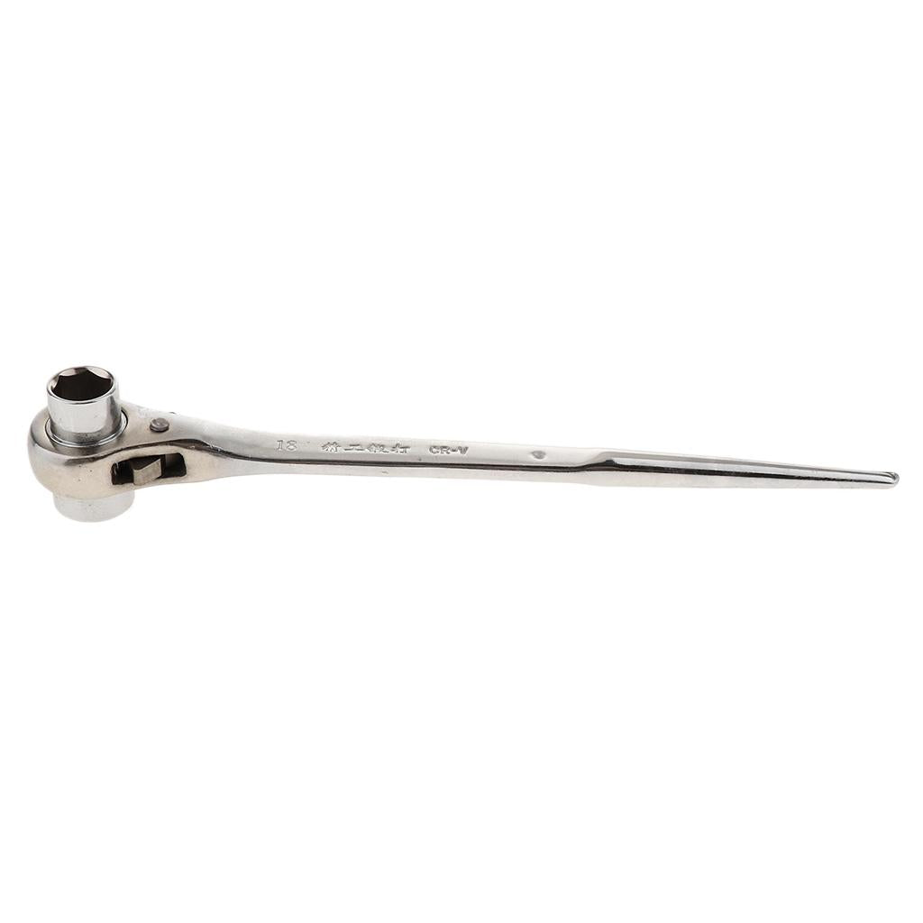 Double sized hexagon spanner with ratchet mechanism, ideal for scaffolding and construction