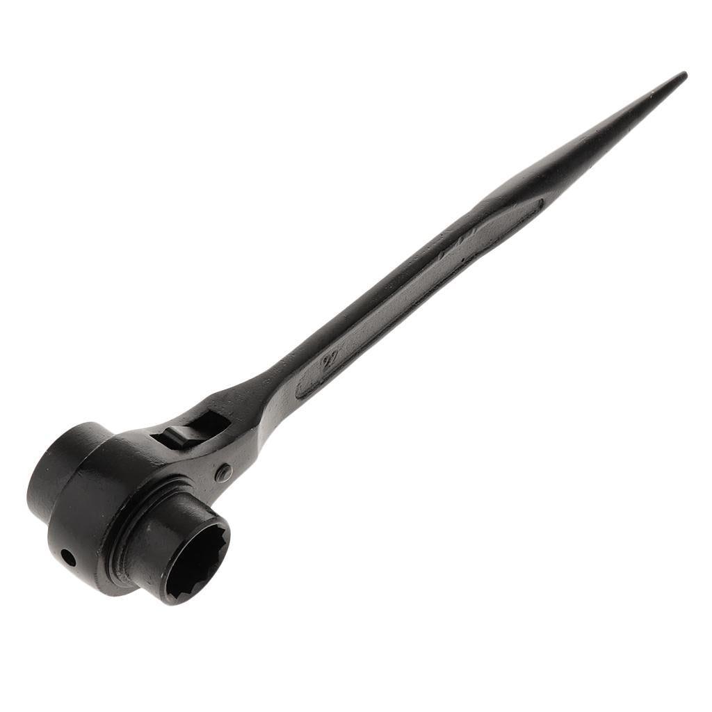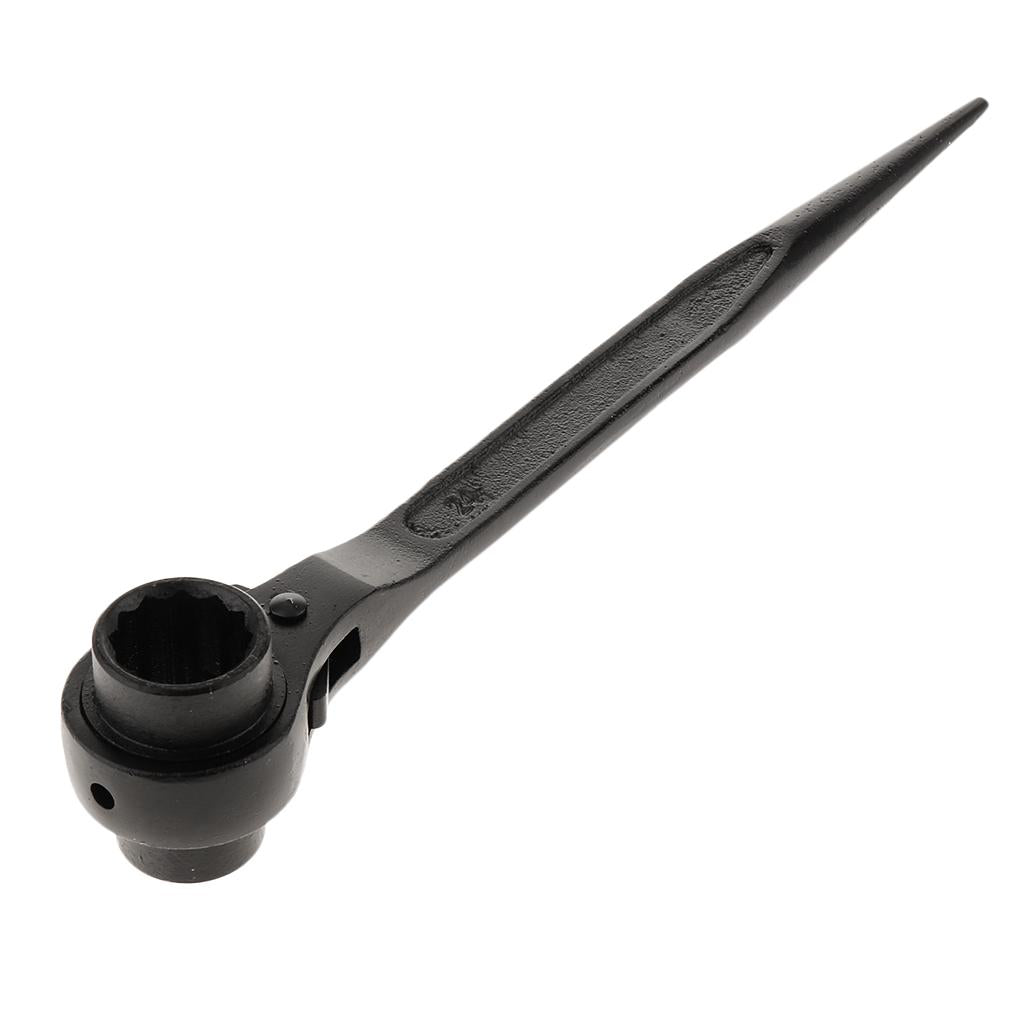 Double sized hexagon spanner with ratchet mechanism, ideal for scaffolding and construction
