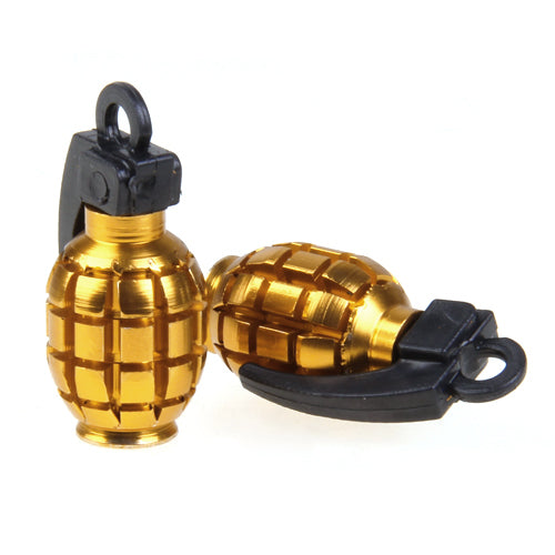 2pcs Bicycle Metal Grenade Shaped Bike Cycling Tyre Valve Dust Cap Cover - Golden