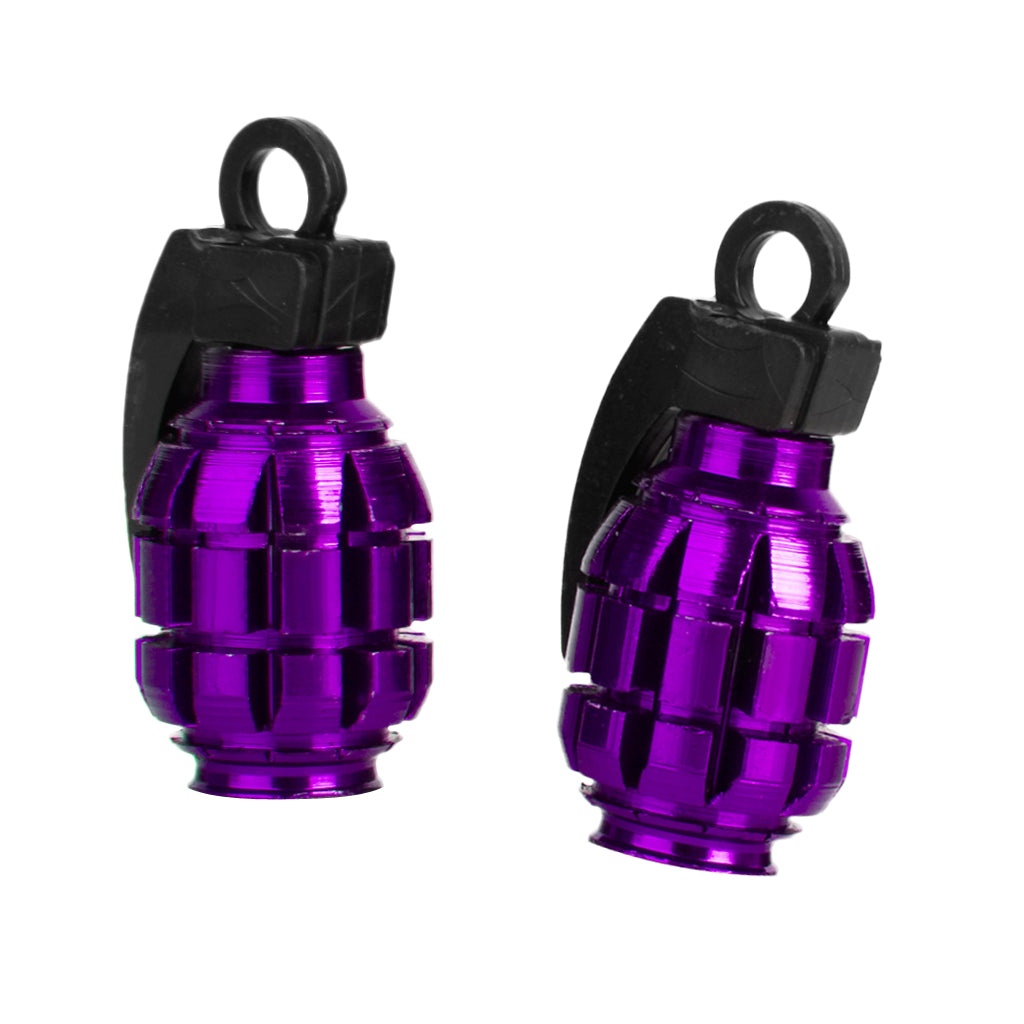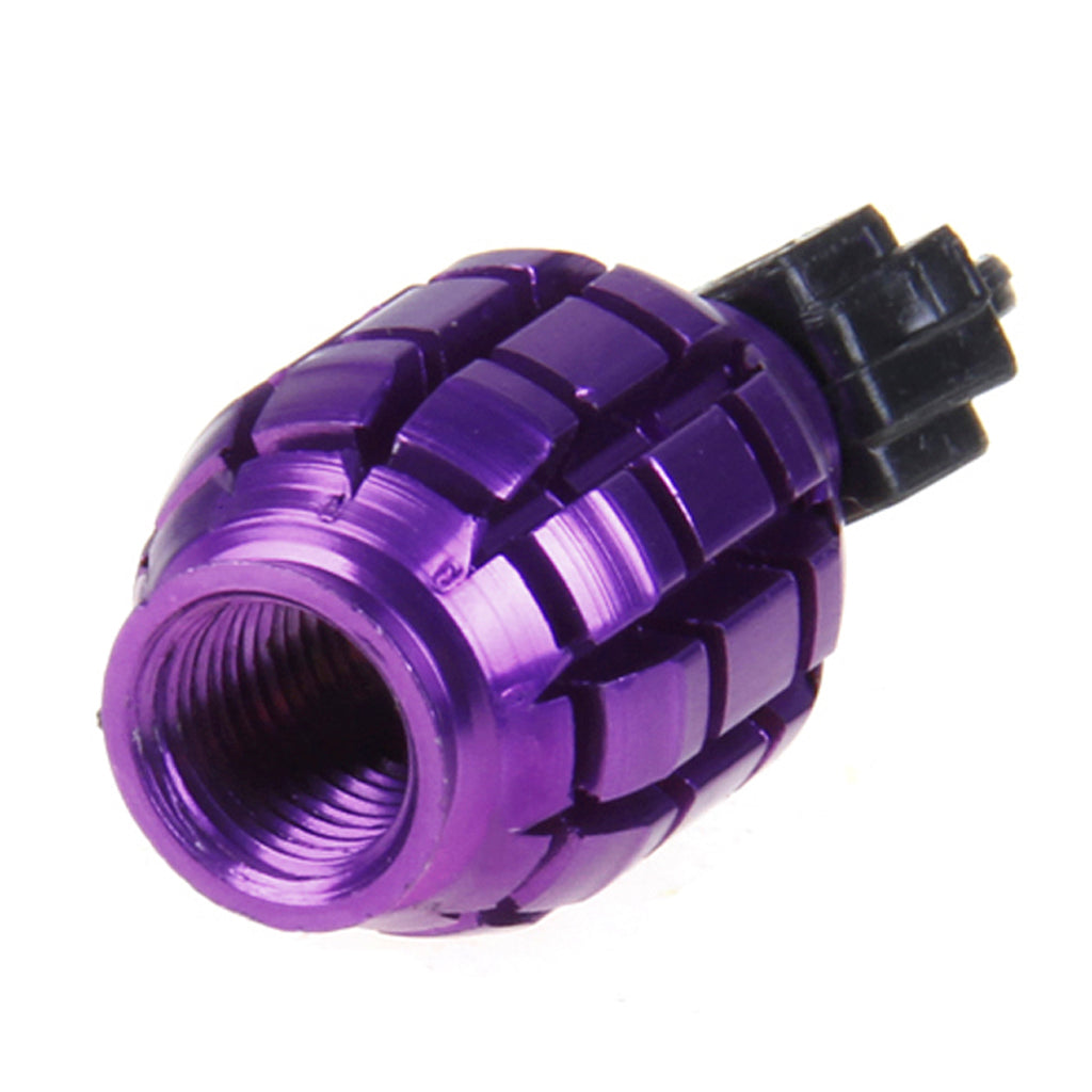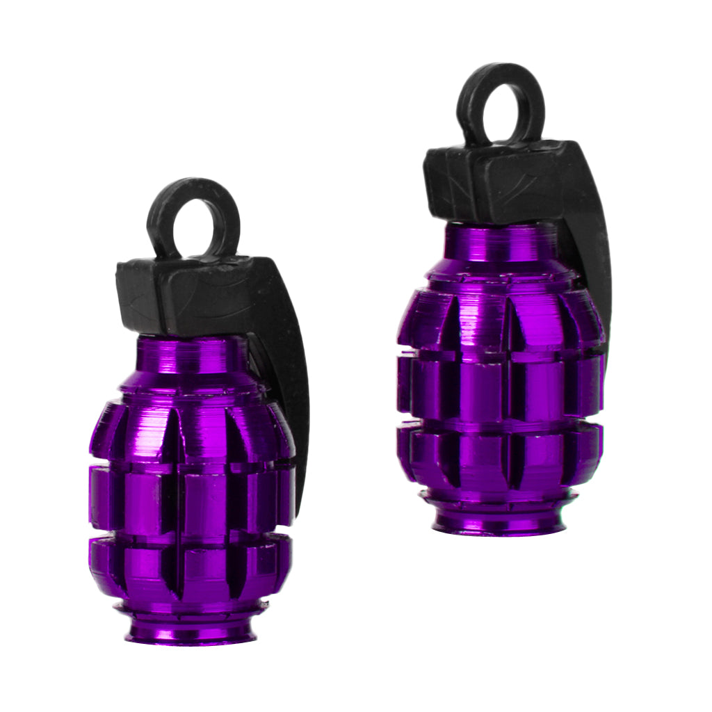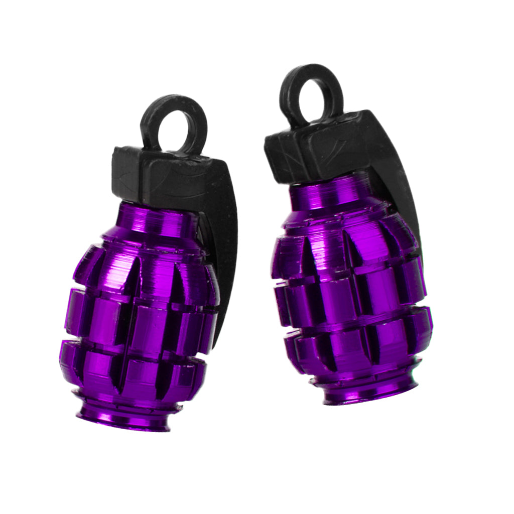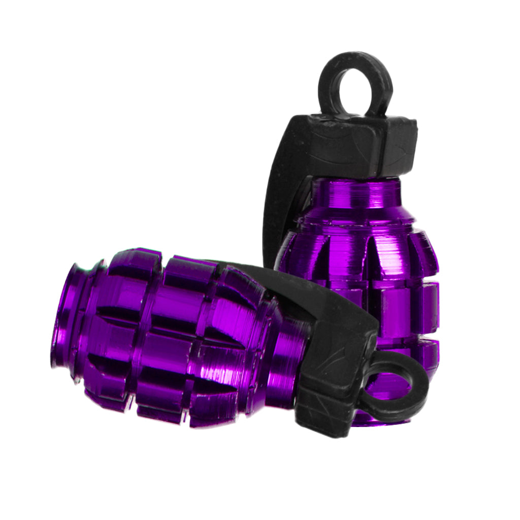 2pcs Bicycle Metal Grenade Shaped Bike Cycling Tyre Valve Dust Cap Cover - Purple