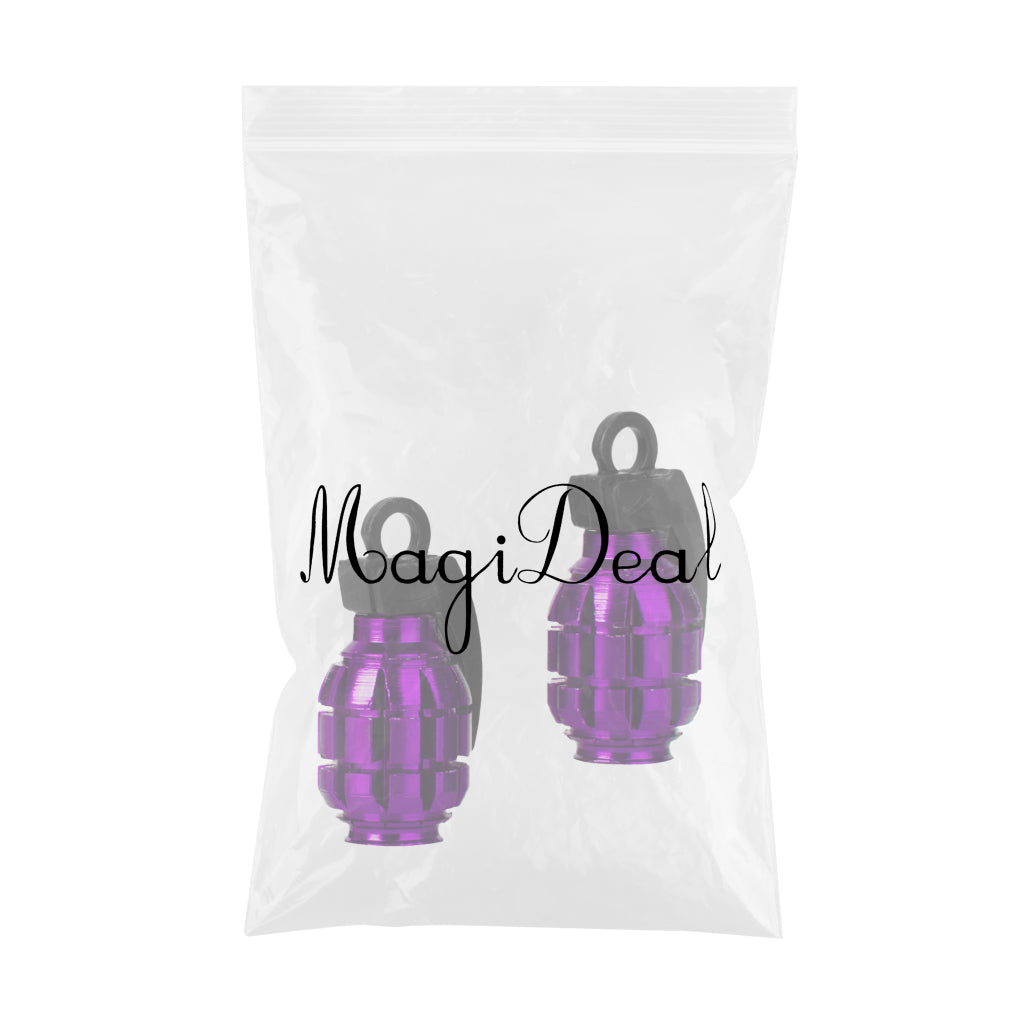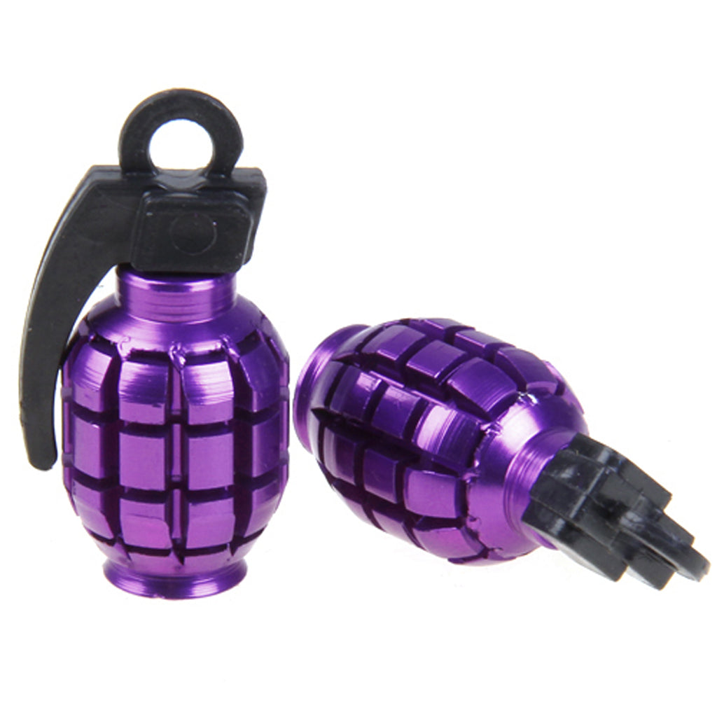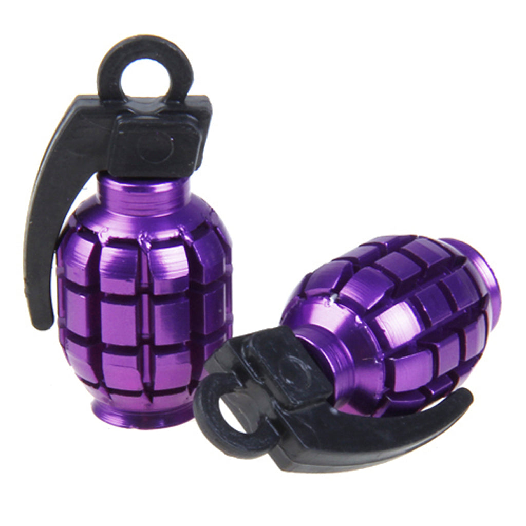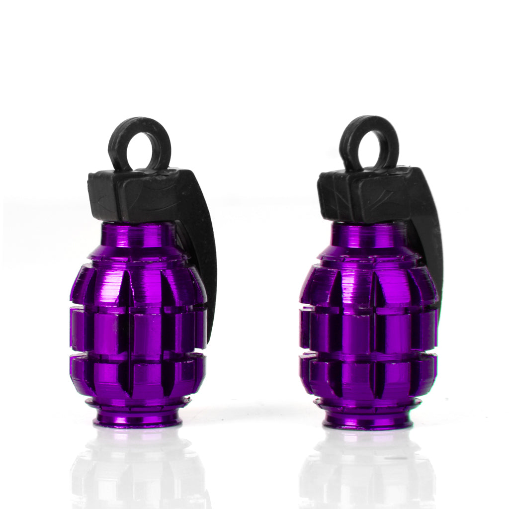 2pcs Bicycle Metal Grenade Shaped Bike Cycling Tyre Valve Dust Cap Cover - Purple