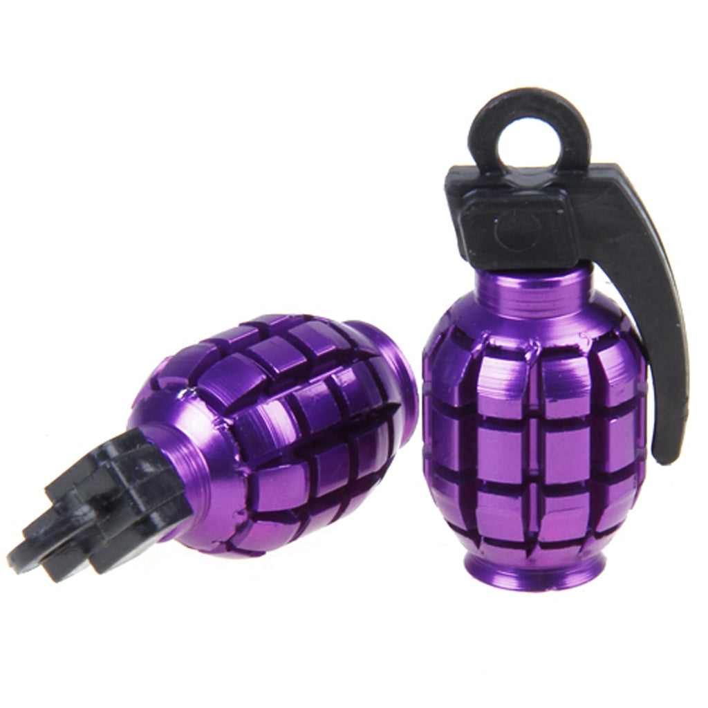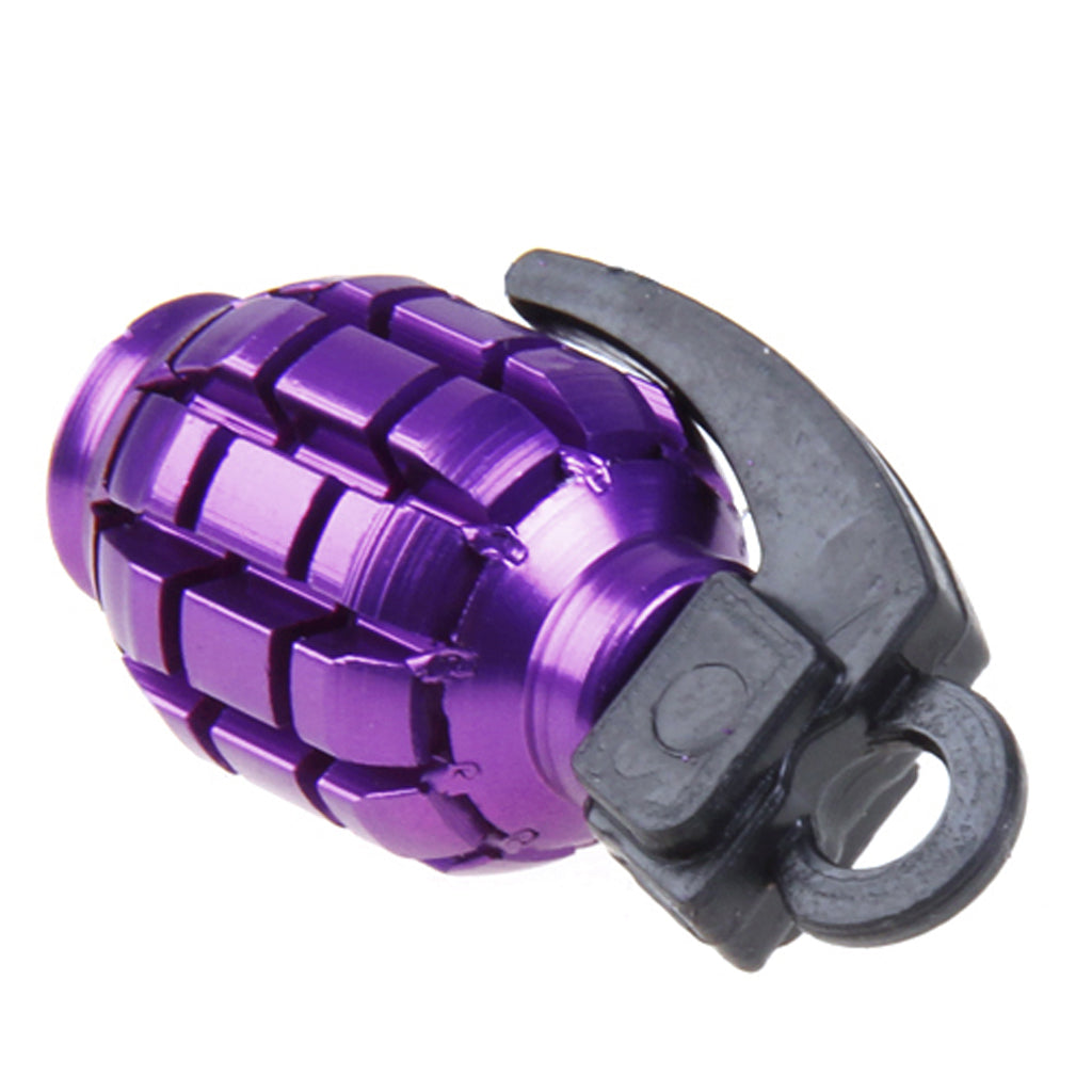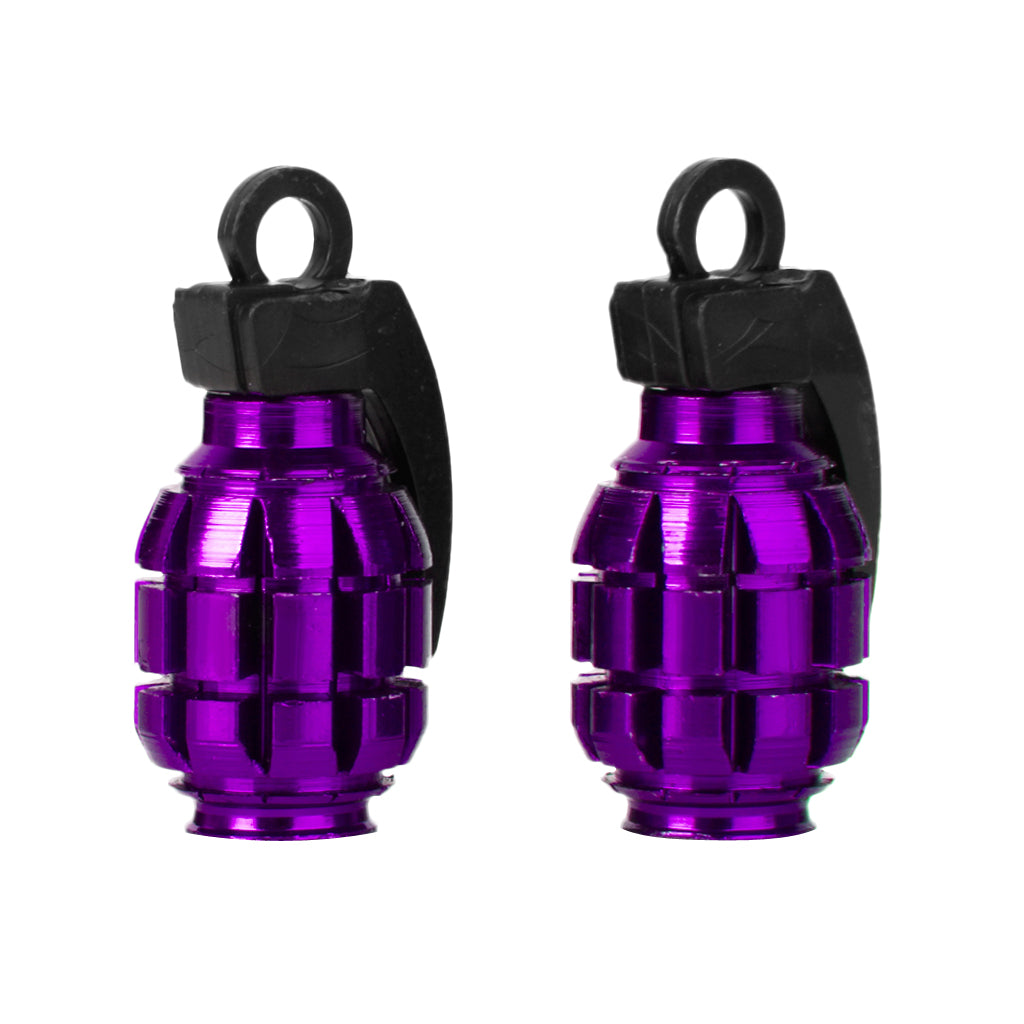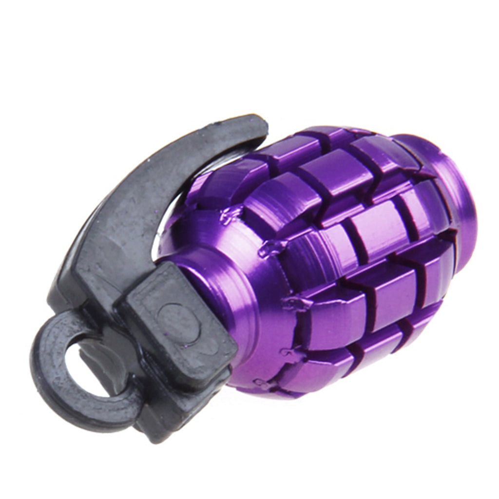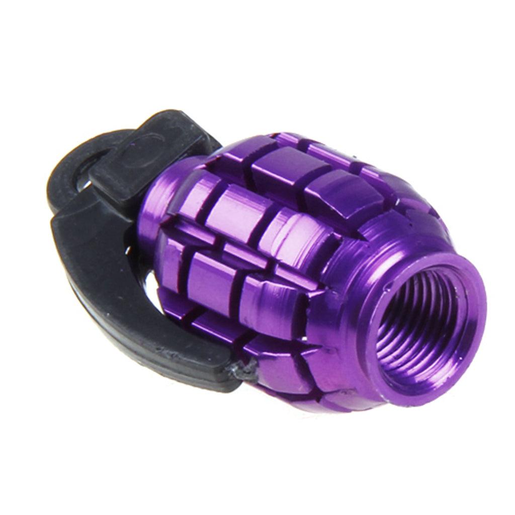 2pcs Bicycle Metal Grenade Shaped Bike Cycling Tyre Valve Dust Cap Cover - Purple