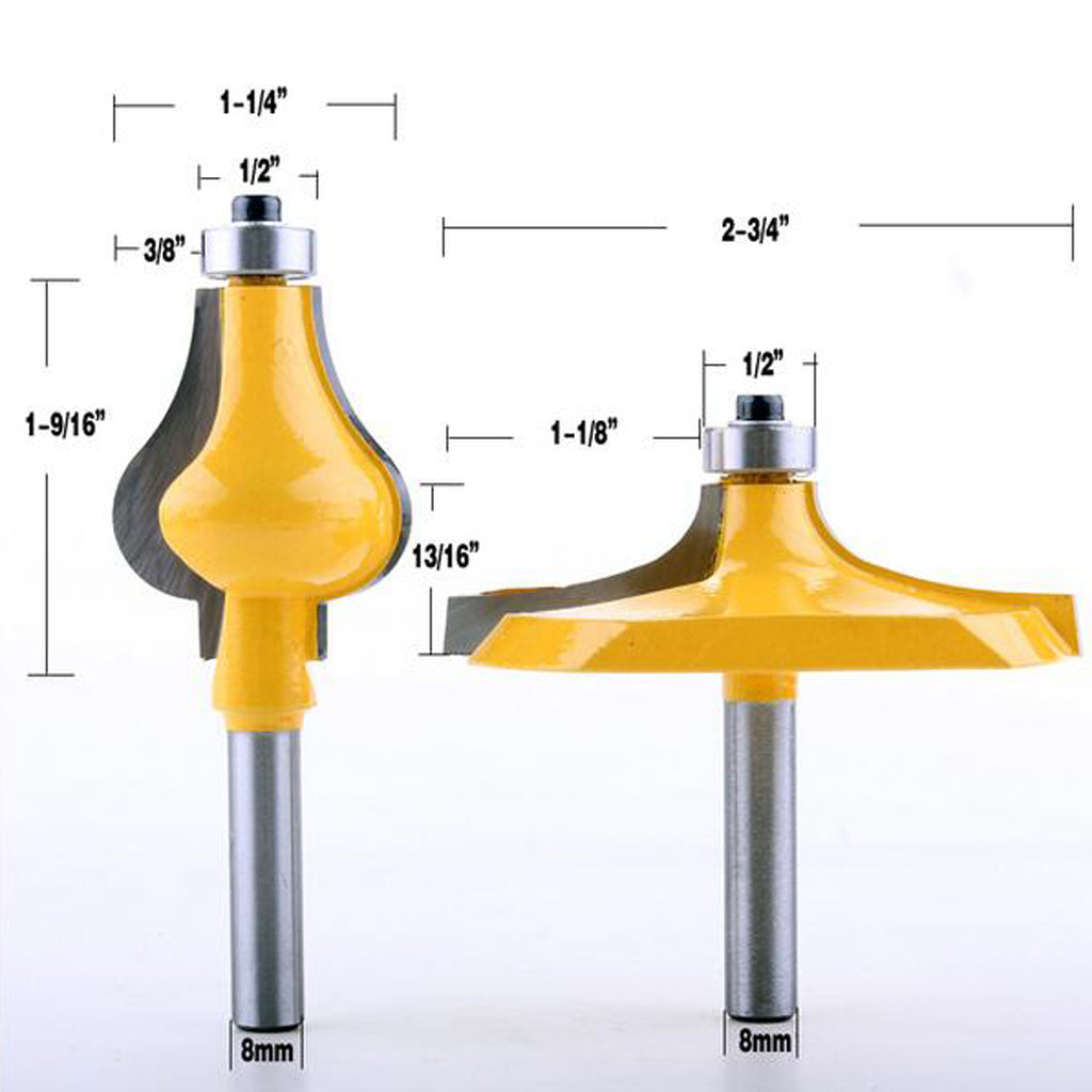 2PCS Carbide 8mm Shank Handrail Router Bits Wood Milling Cutter Durable Power Tools