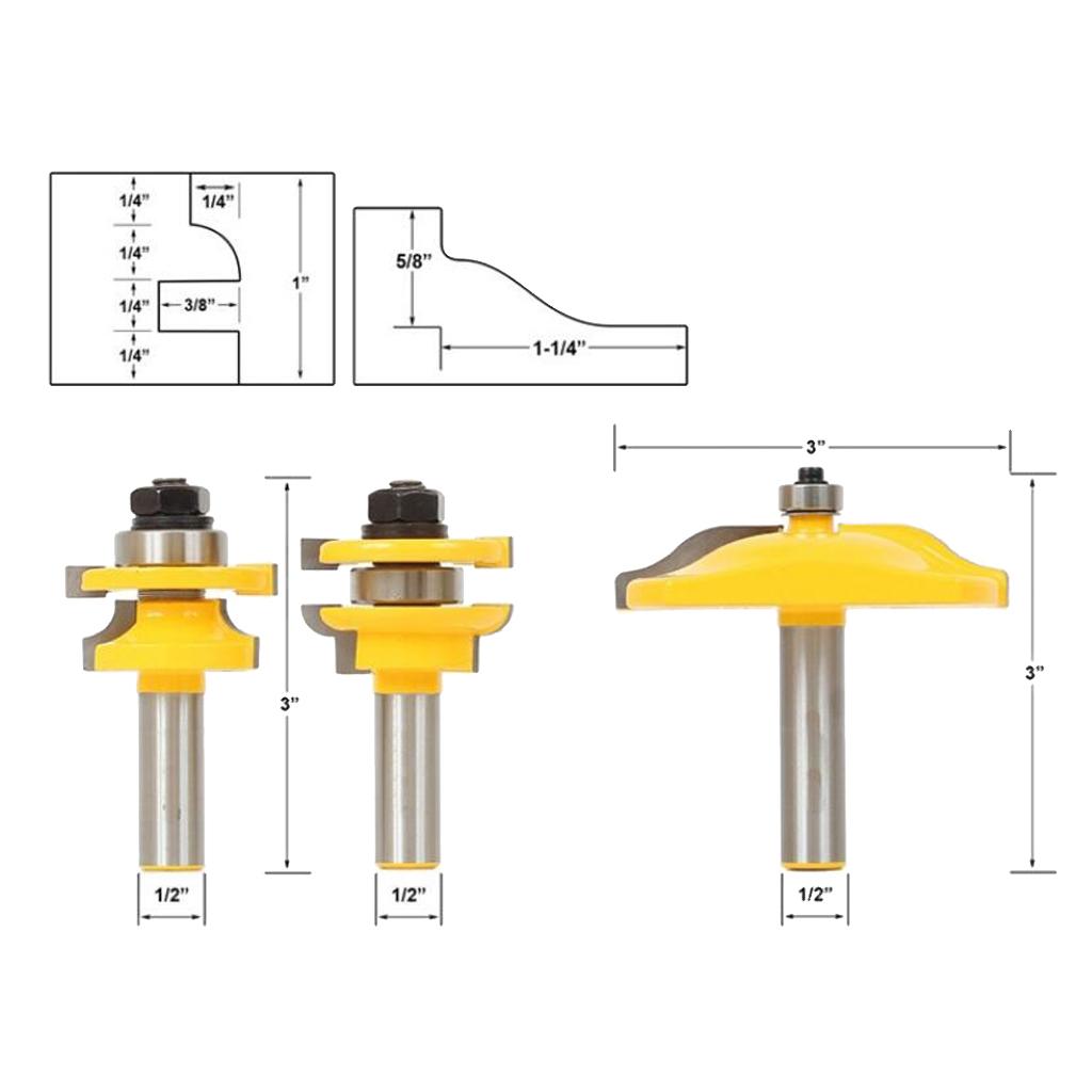 3pcs Router bits set with 1/2 inch shank, high hardness and long service life