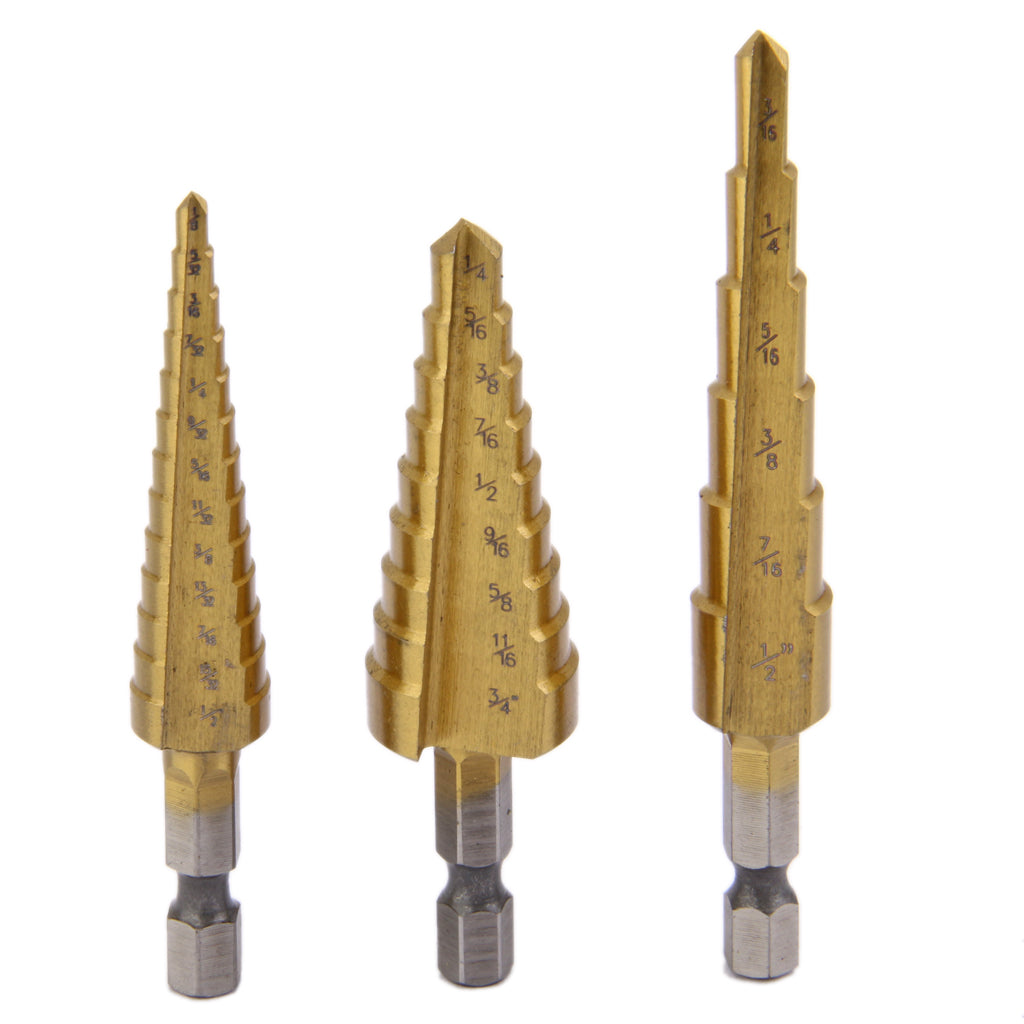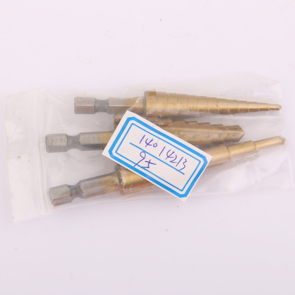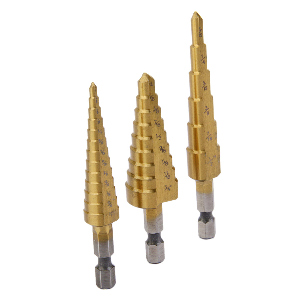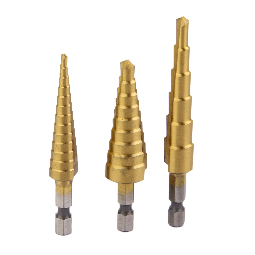 3Pcs Steel Titanium Coated Step Drill Bit Quick-change 1/4" Hex Shank Hot