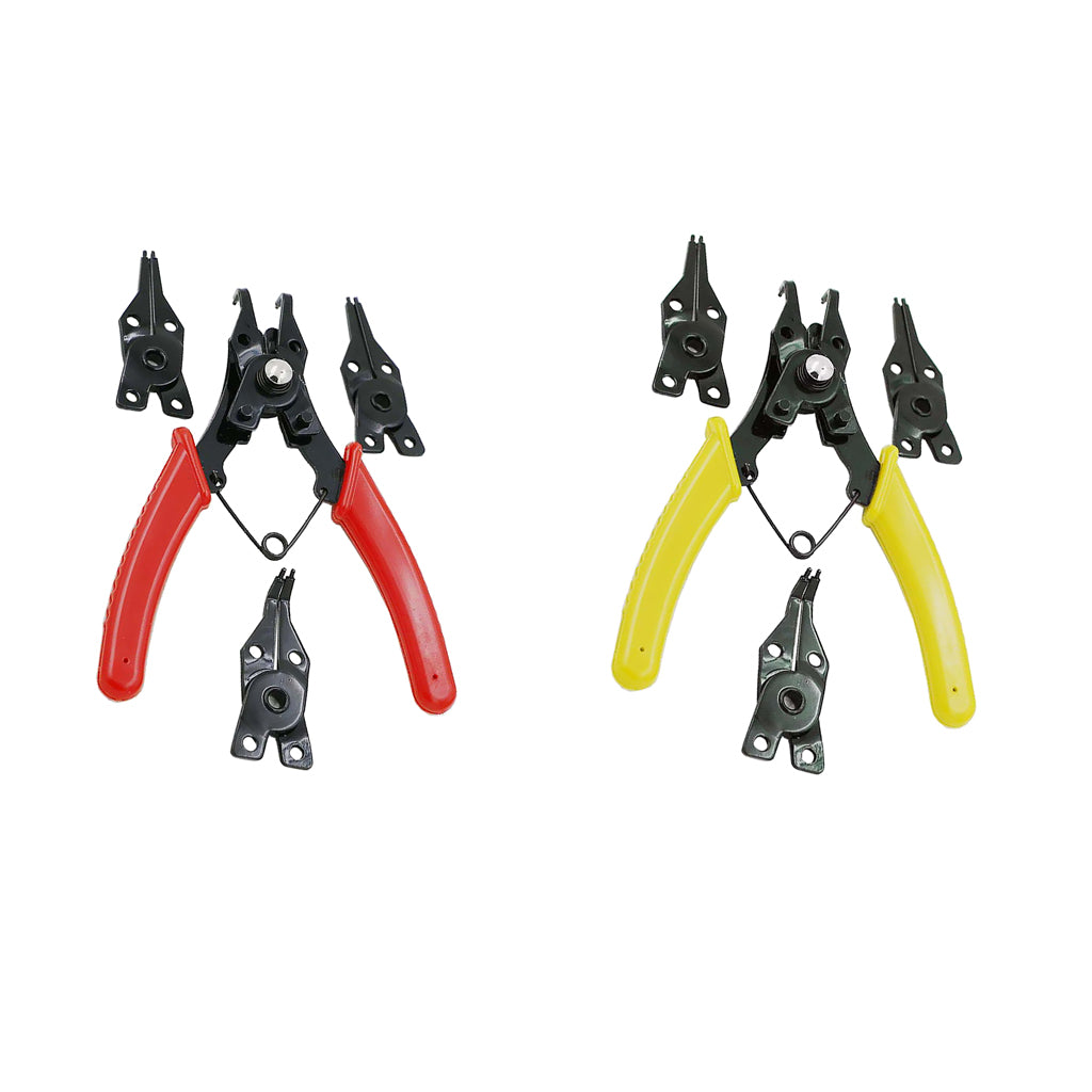 The 4 in 1 snap ring pliers set single handle unit quickly and easily changes heads.