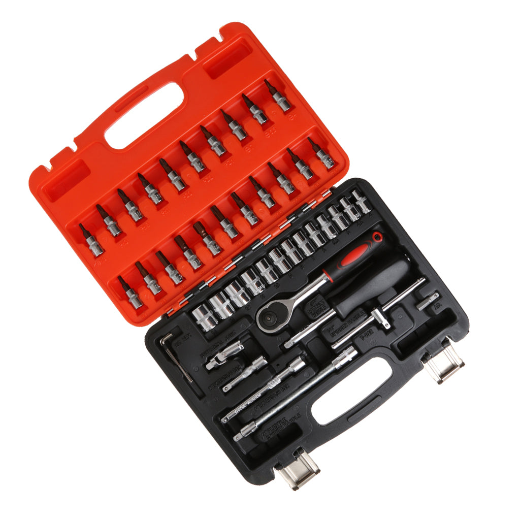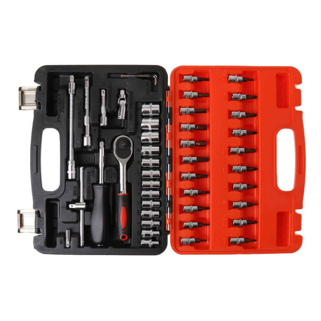 21x screwdriver sockets: T10, T15, T20, T25, T30, T40, H3, H4, H5, H6, H7, H8, S4, S5.5, S7, PH1, PH2, PH3, PZ1, PZ2, PZ3