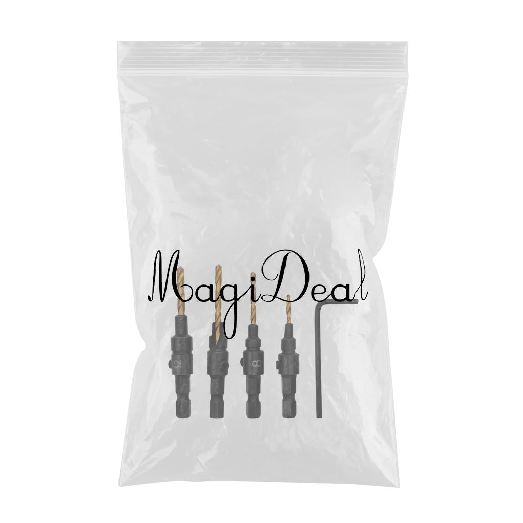 HSS Drill Bits set includes 4 bits for drilling holes for screw sizes #6,#8,#10,#12 and 1 hex wrench.