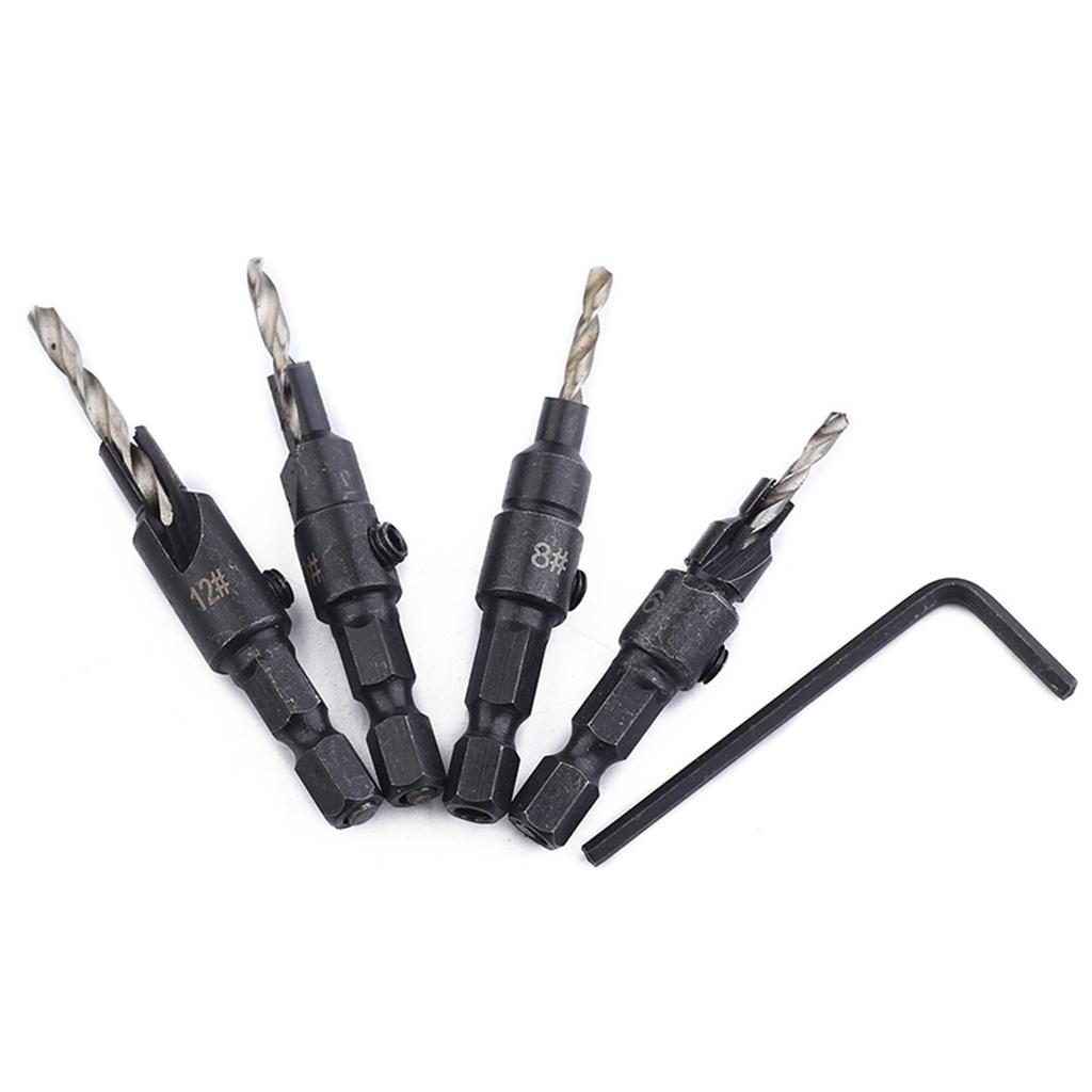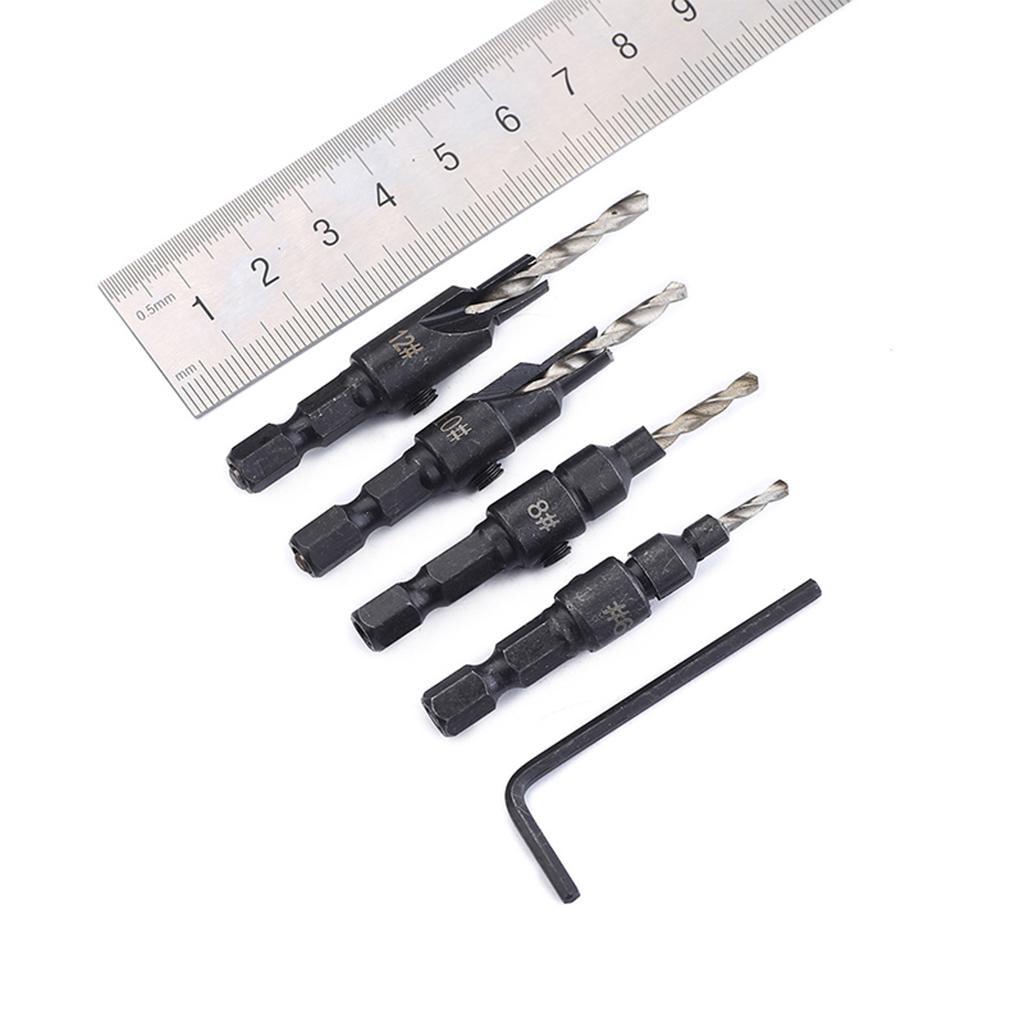 Contains four popular sizes of countersink bits :6mm, 8mm, 10mm, 12mm.