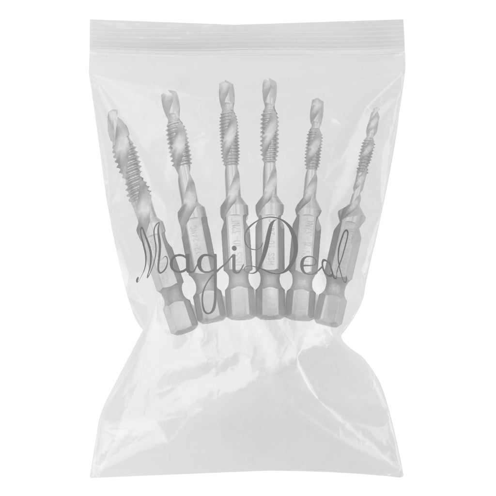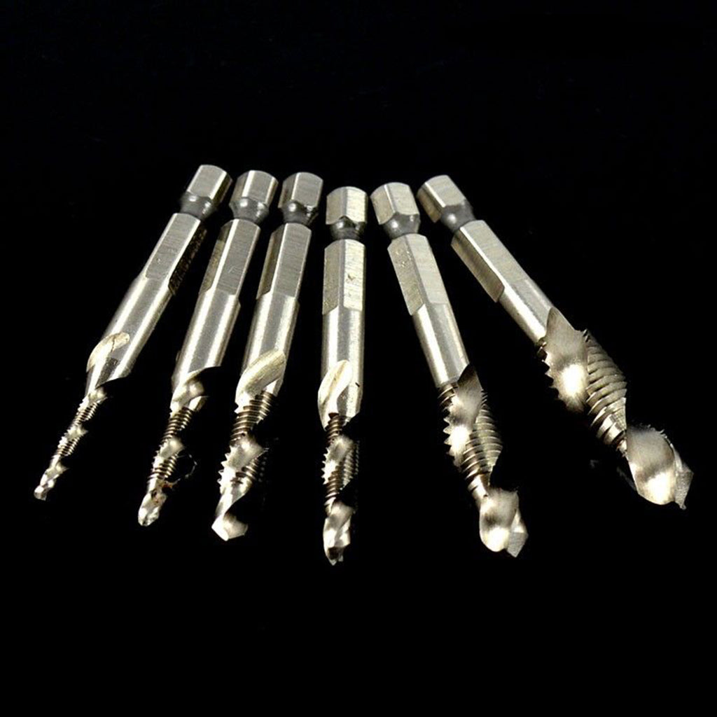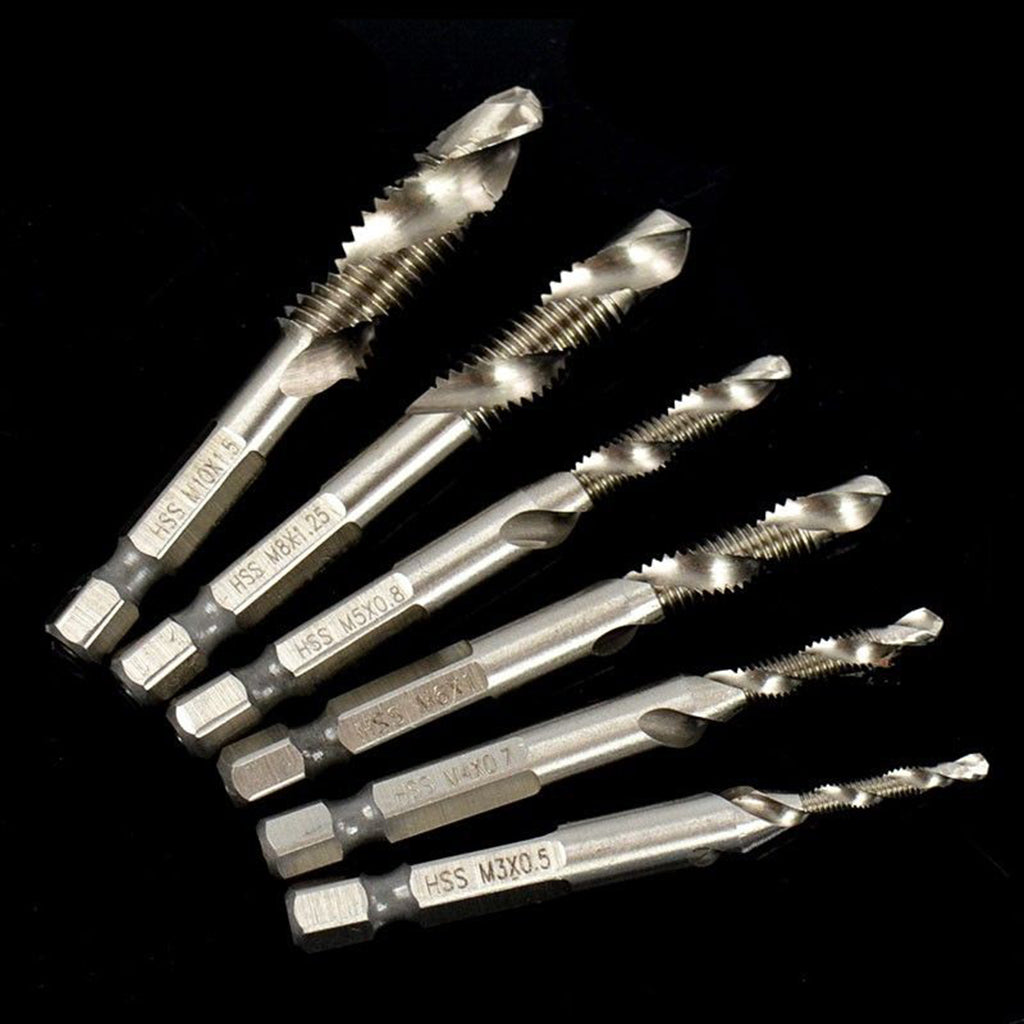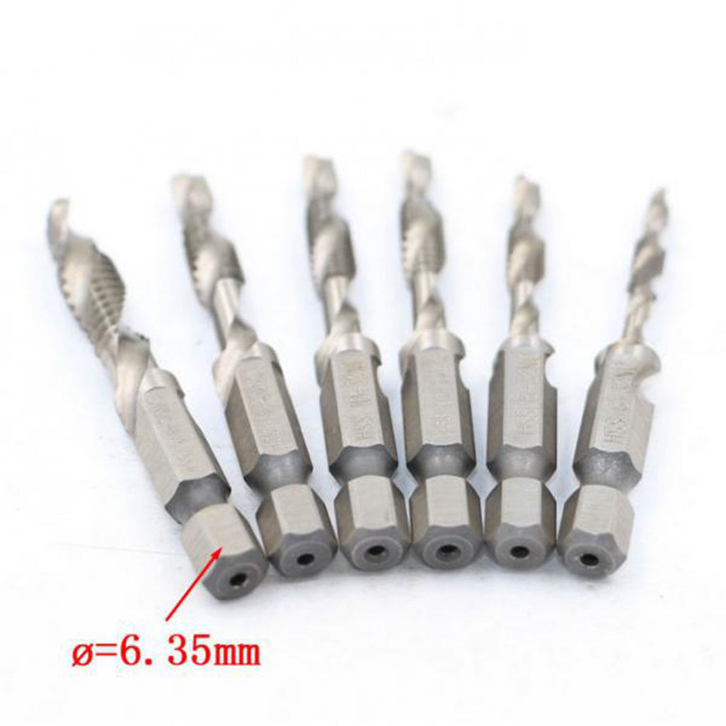 6Pcs 1/4" Hex HSS M3-M10 Composite Tap Drill Bit Thread Spiral Screw Kit