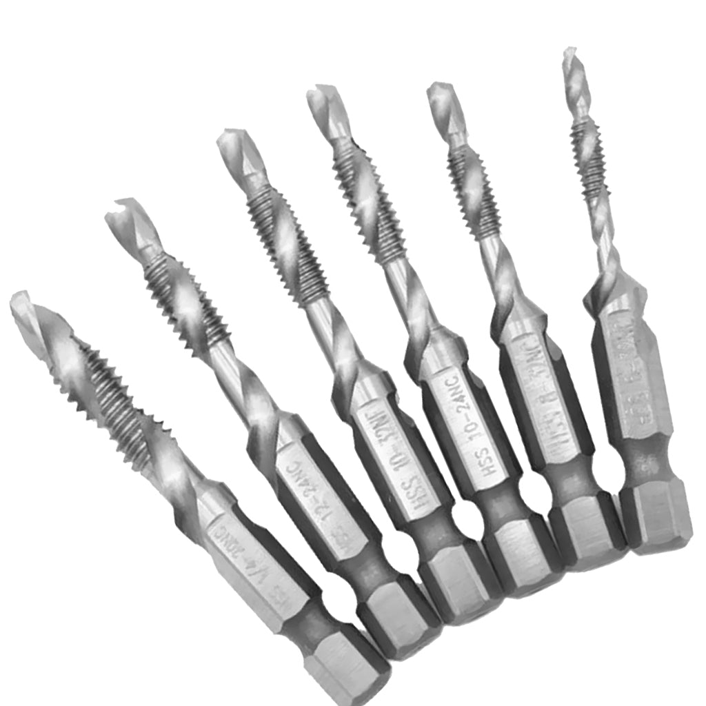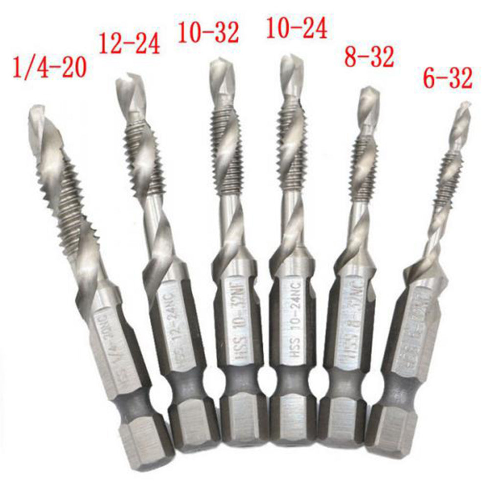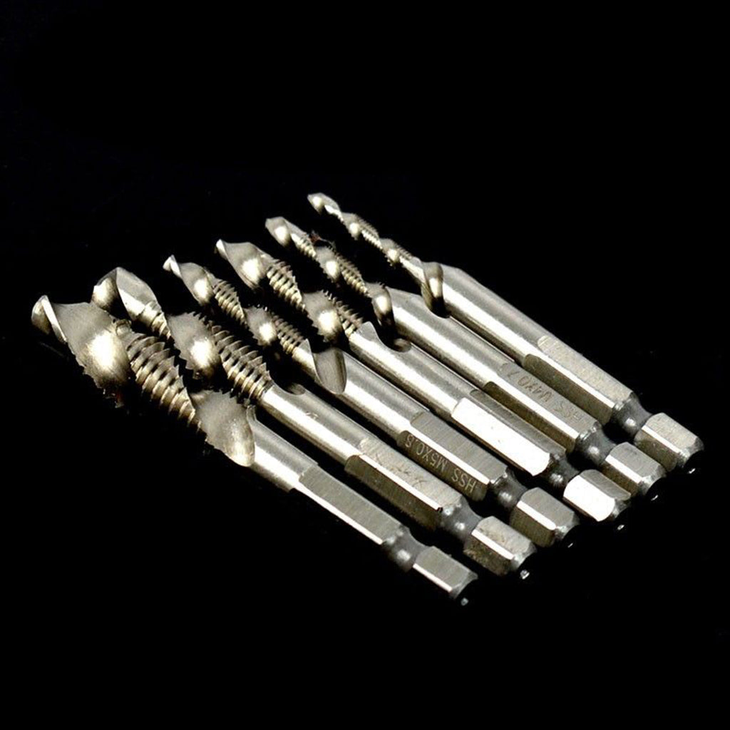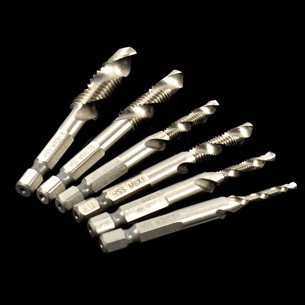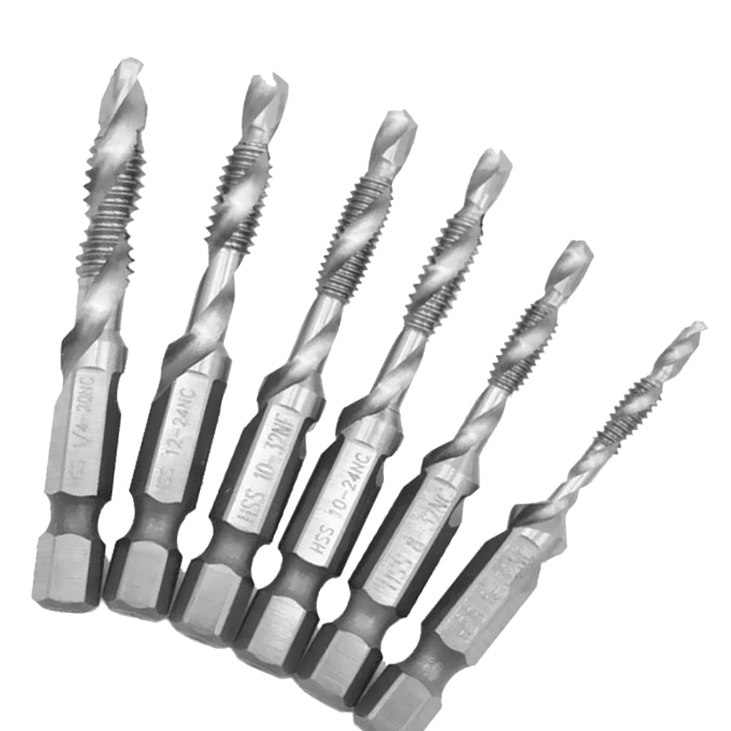 6Pcs 1/4" Hex HSS M3-M10 Composite Tap Drill Bit Thread Spiral Screw Kit