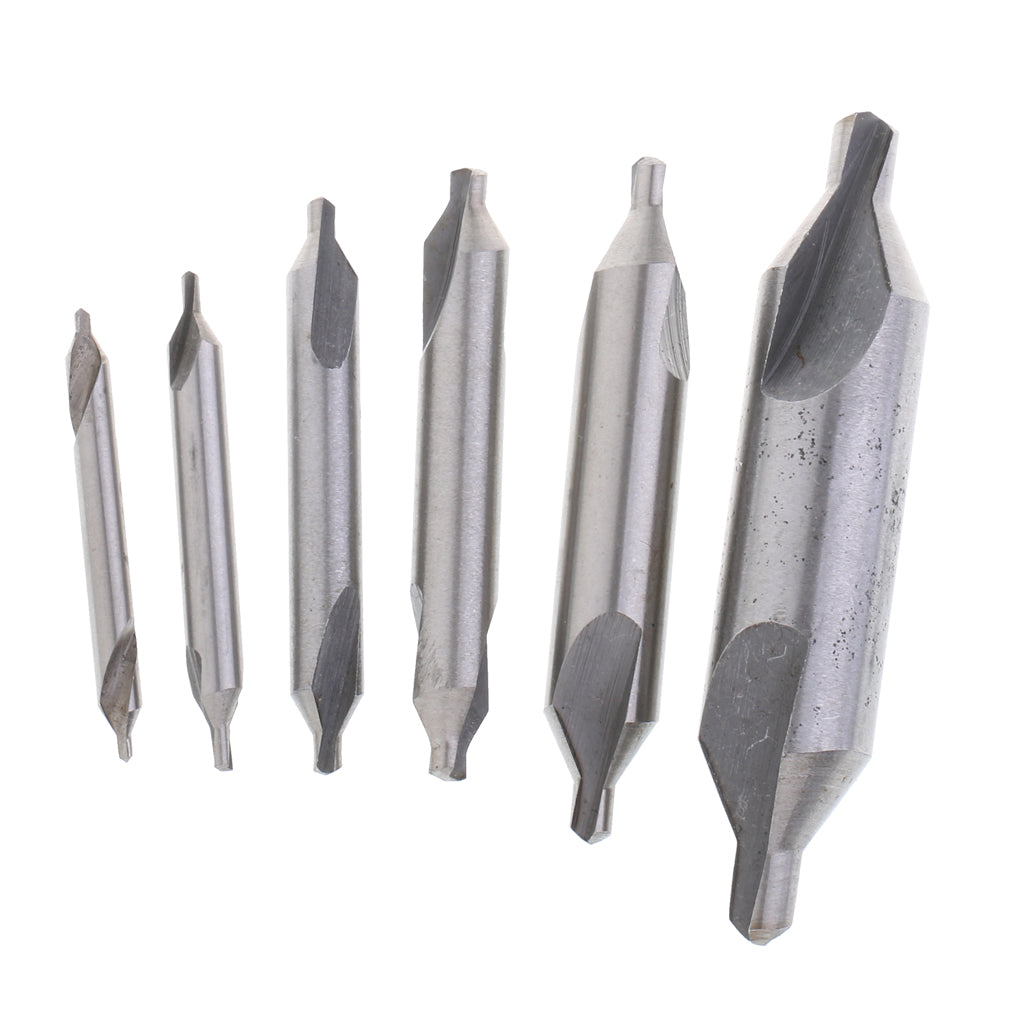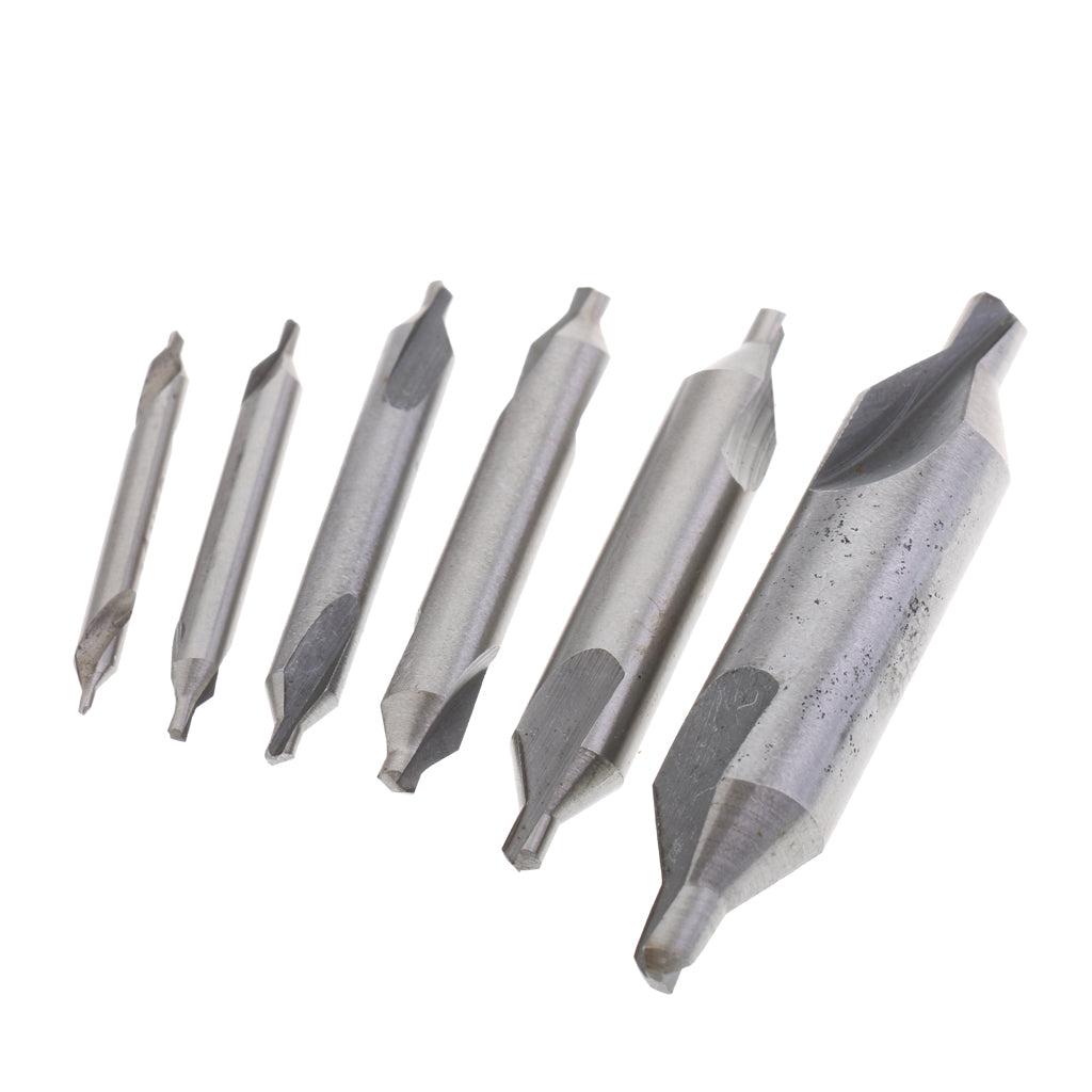 6pcs HSS Center Spotting Drill Bits Tool Center Combined Countersink Kit 60° High-speed Steel 1, 1.5, 2, 2.5, 3, 5mm