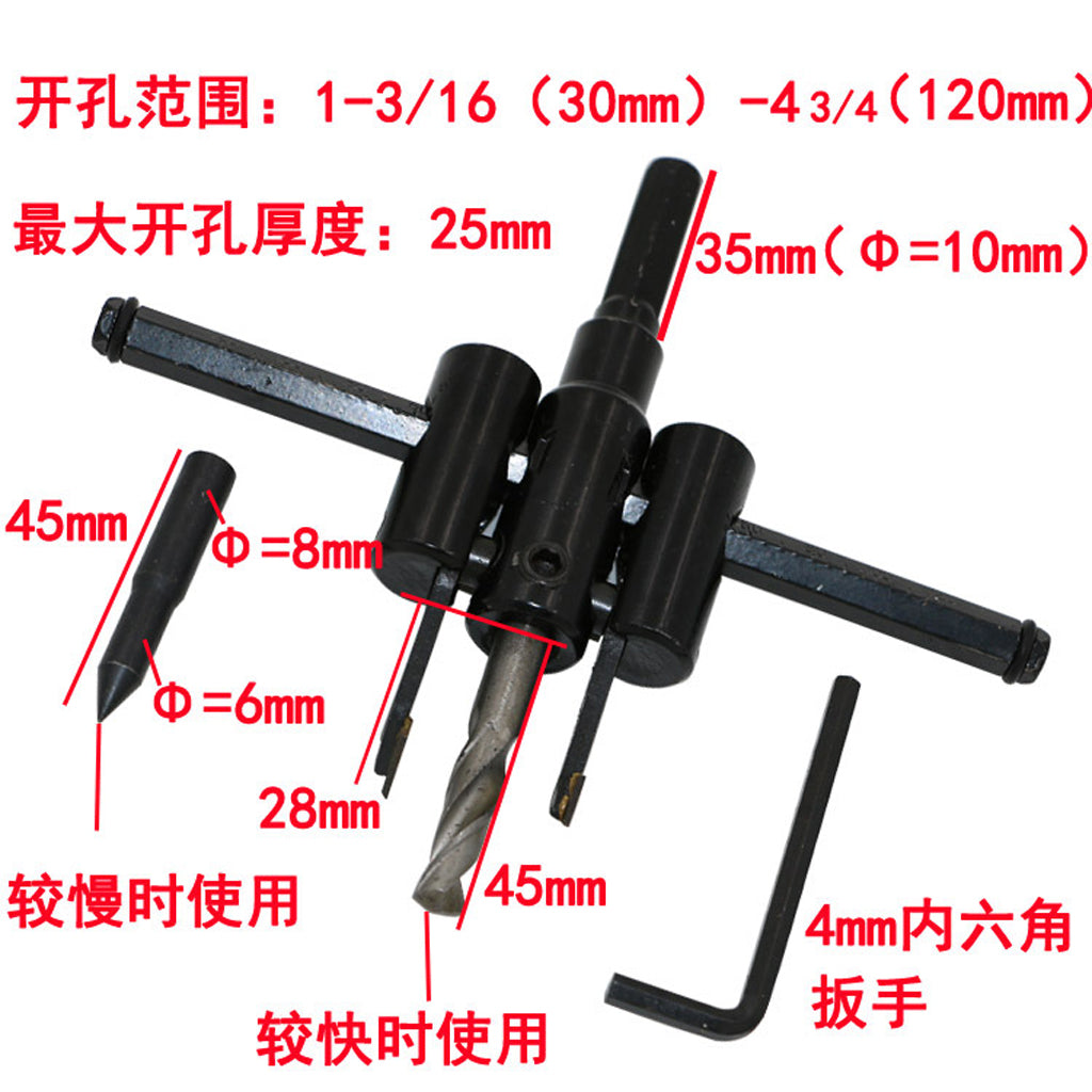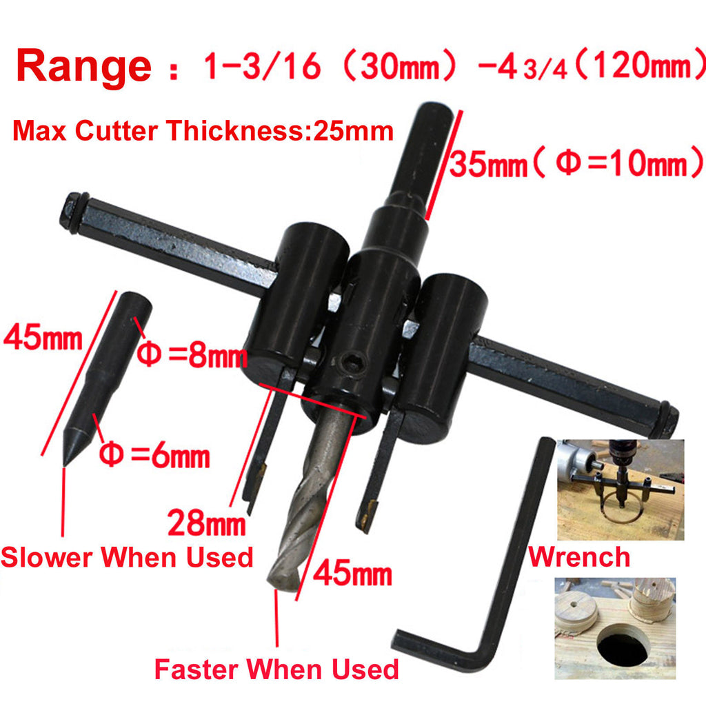 Adjustable Metal Wood Circle Cutter Kit Hole Saw Drill Bit DIY Tool 30-120mm