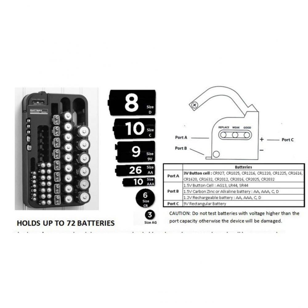 Battery Storage Organizer Rack Power Tester Case Box AA AAA 9V 72 Holder