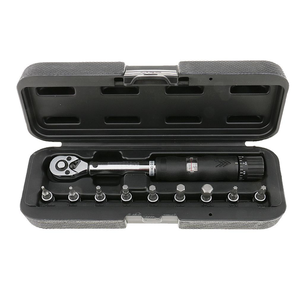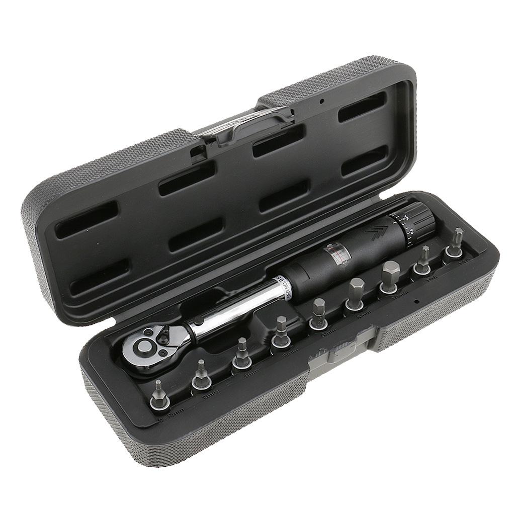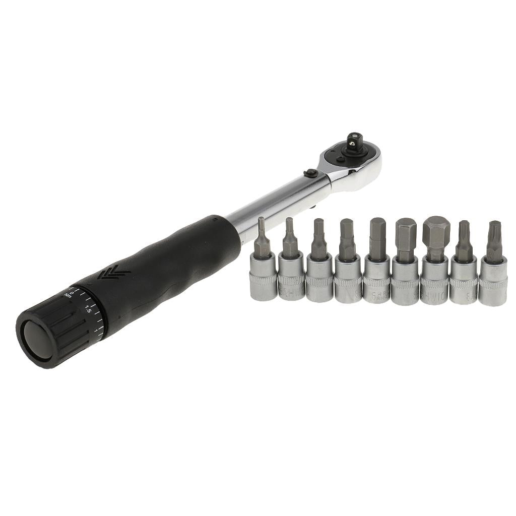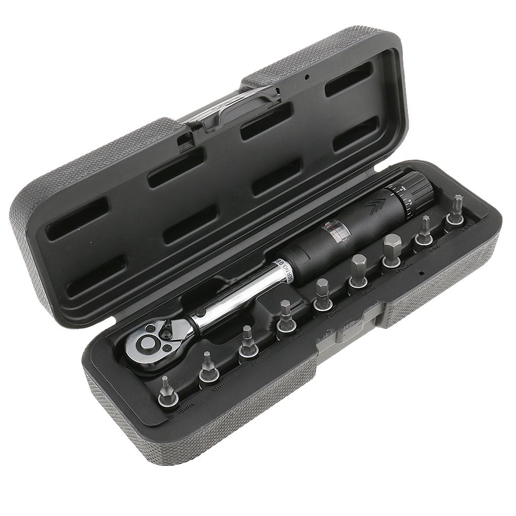 Bicycle Bike Torque Wrench 1/4'' Drive Hex Socket Bit Set Repairing Spanner
