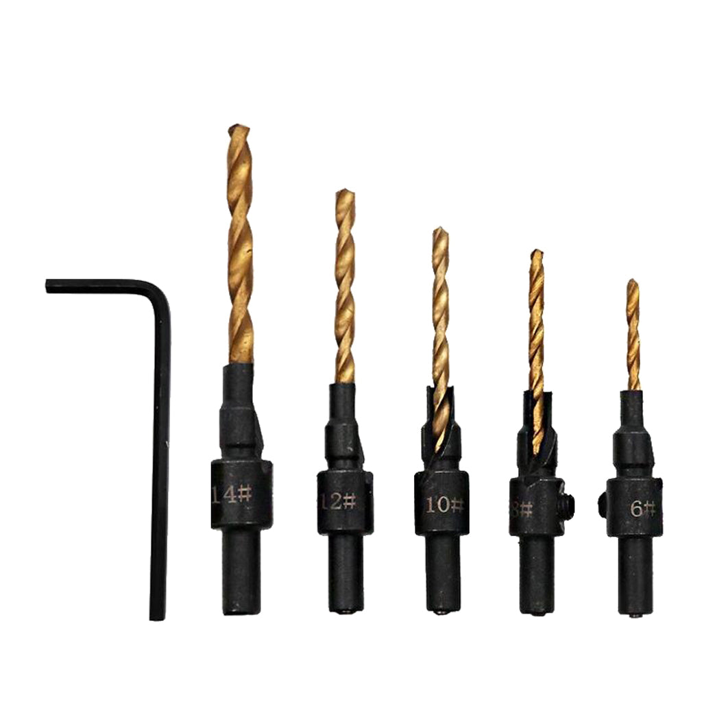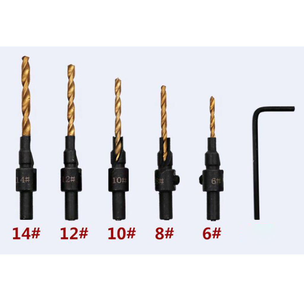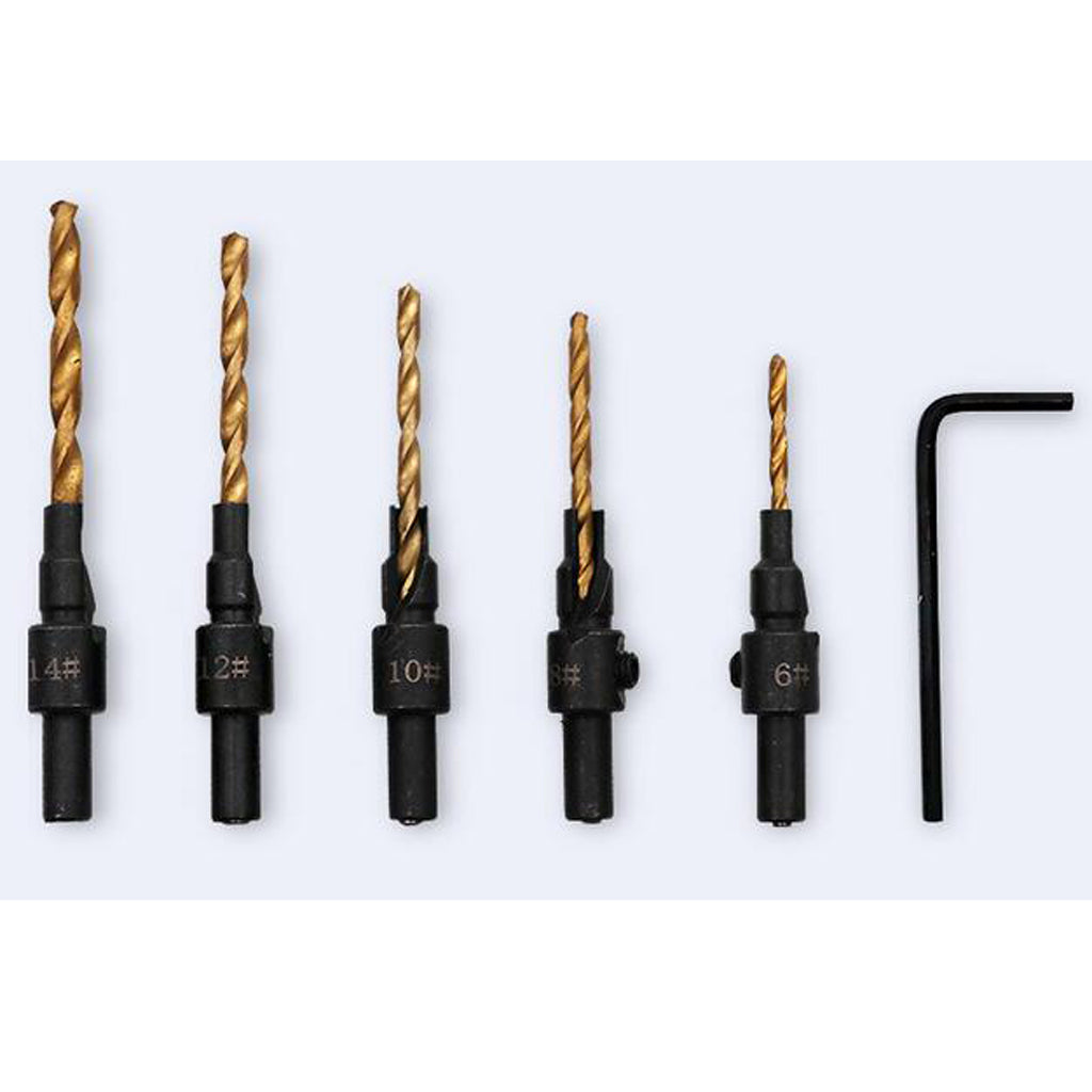 6piece HSS Drill Bits set includes 5 bits for drilling pilot holes for screw sizes #6,#8,#10,#12 and #14 and 1 hex wrench.