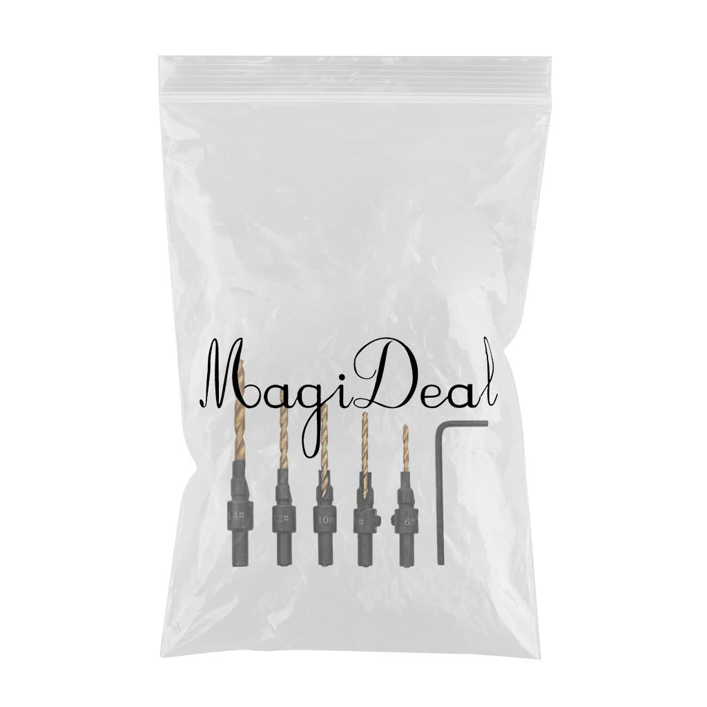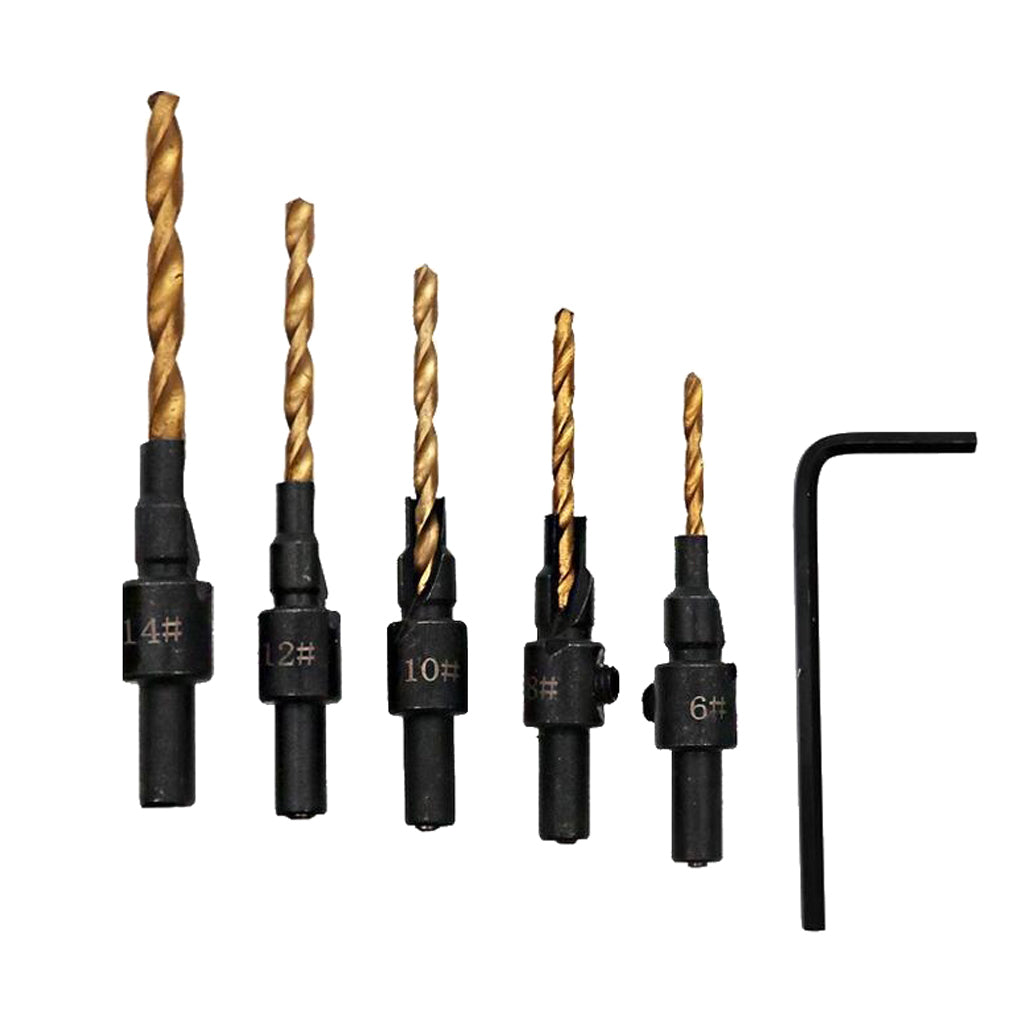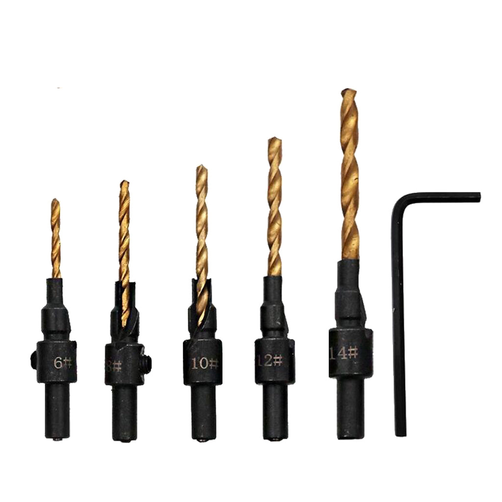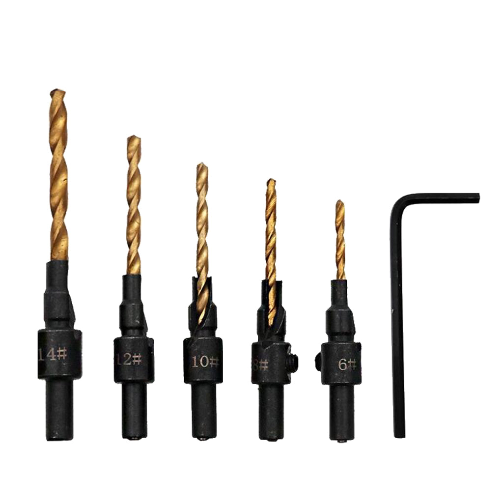 6piece HSS Drill Bits set includes 5 bits for drilling pilot holes for screw sizes #6,#8,#10,#12 and #14 and 1 hex wrench.