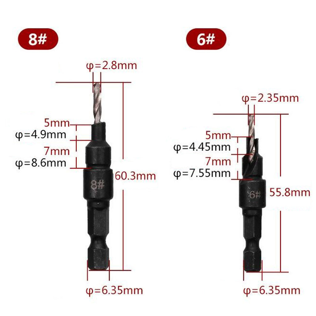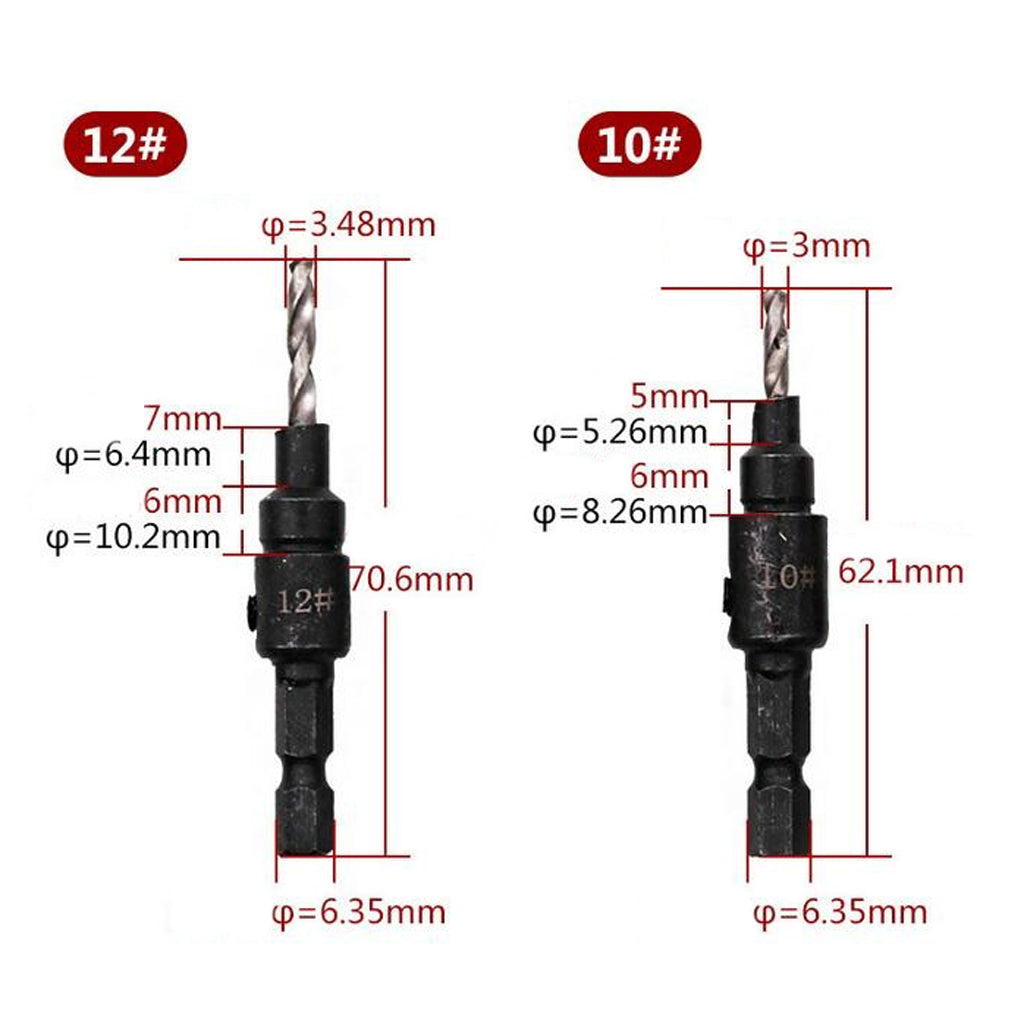 Countersink sizes: #6, #8, #10, #12, #14