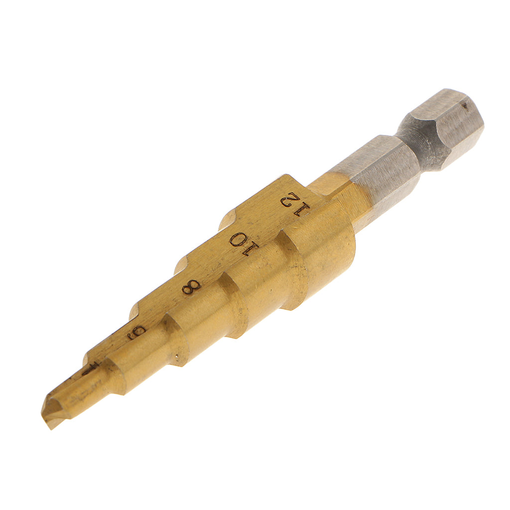 HSS Steel 5 Step Cone Drill Titanium Bit Set Hole Cutter Hex Shank 4-12mm