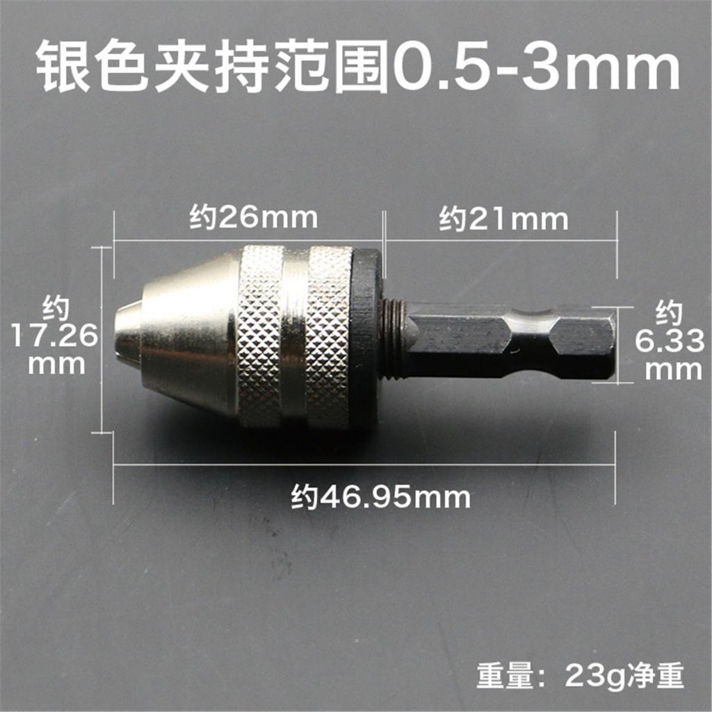 Keyless 3 Jaw Drill Chuck Converter Screwdriver Chuck Adapter, 1/4 Inch Hex Shank, 0.3-3.0mm Drill Bits