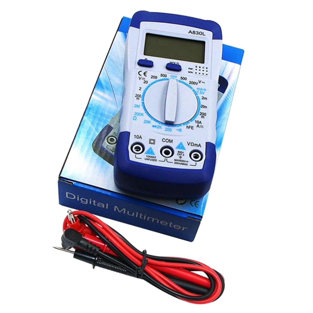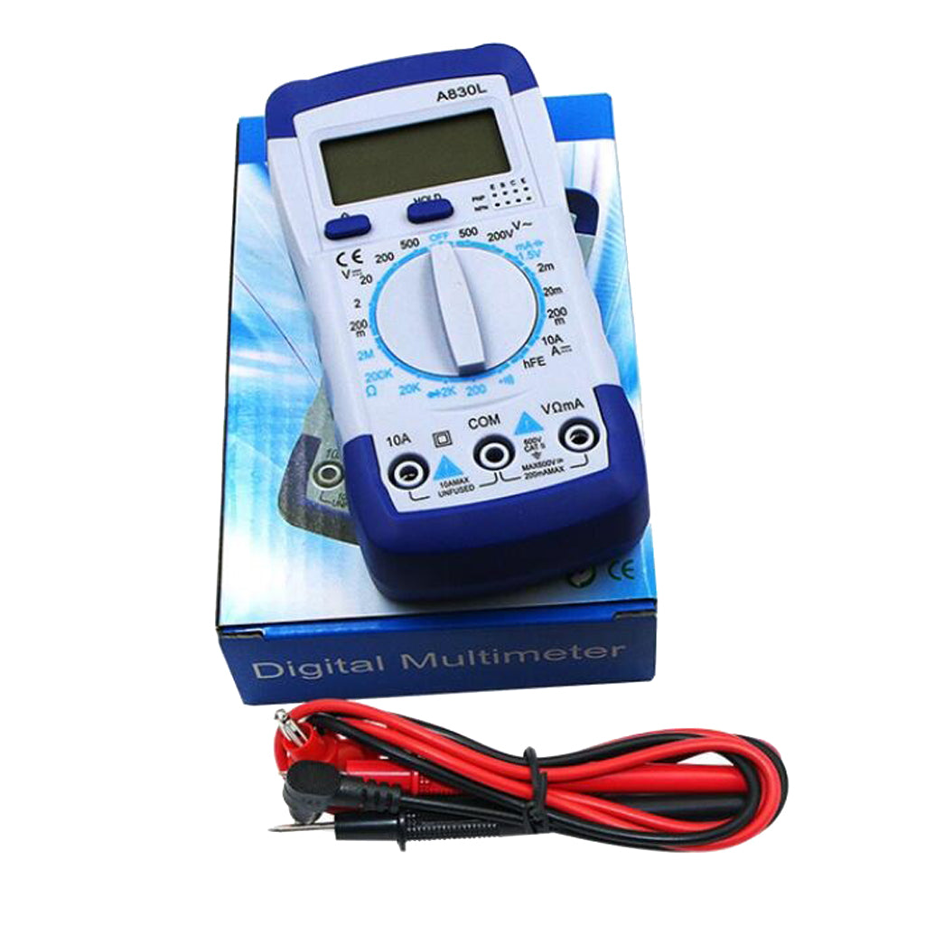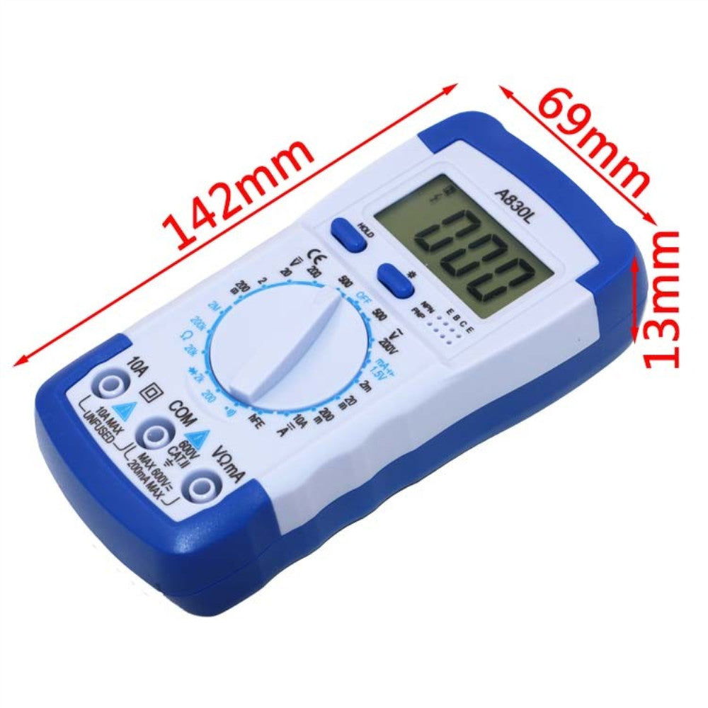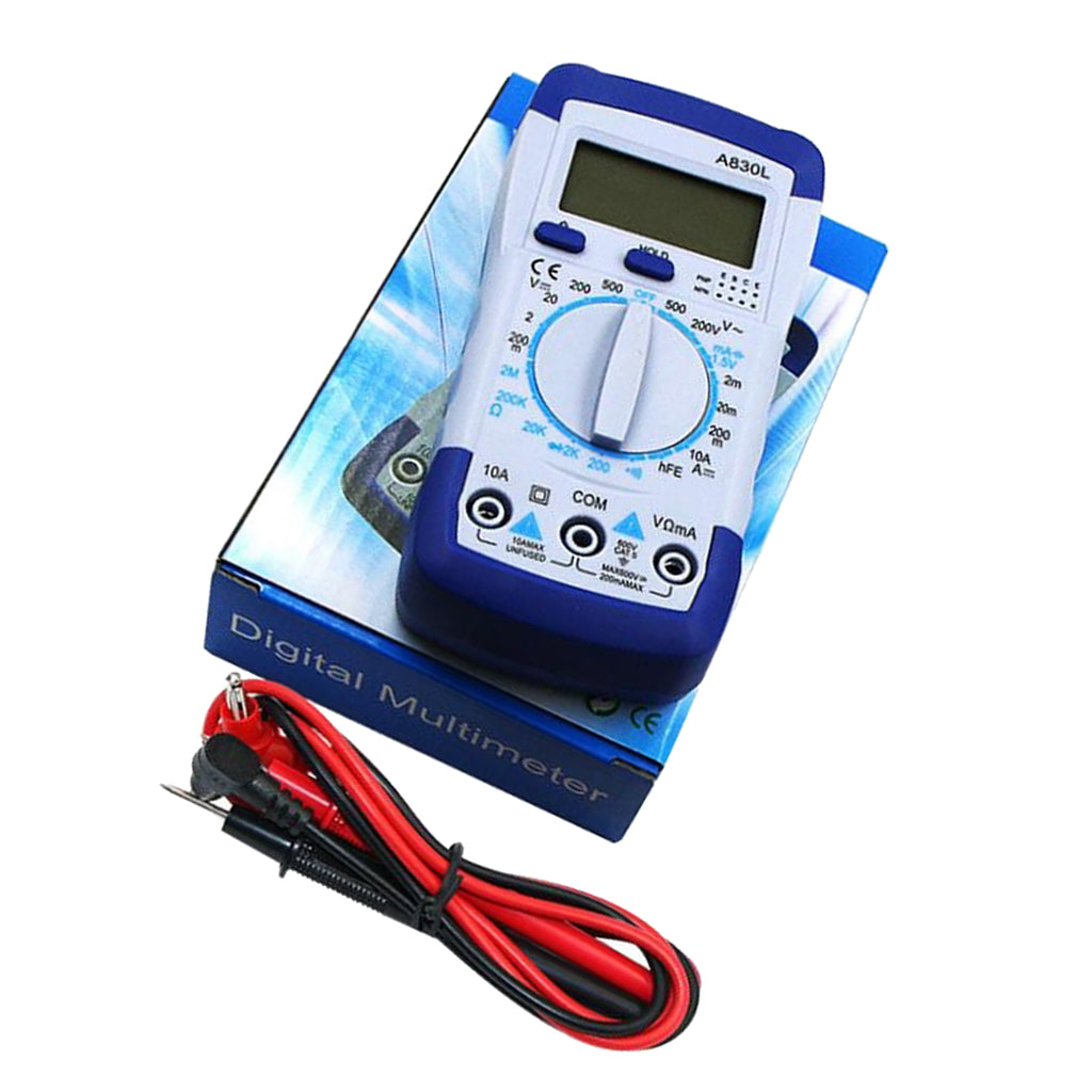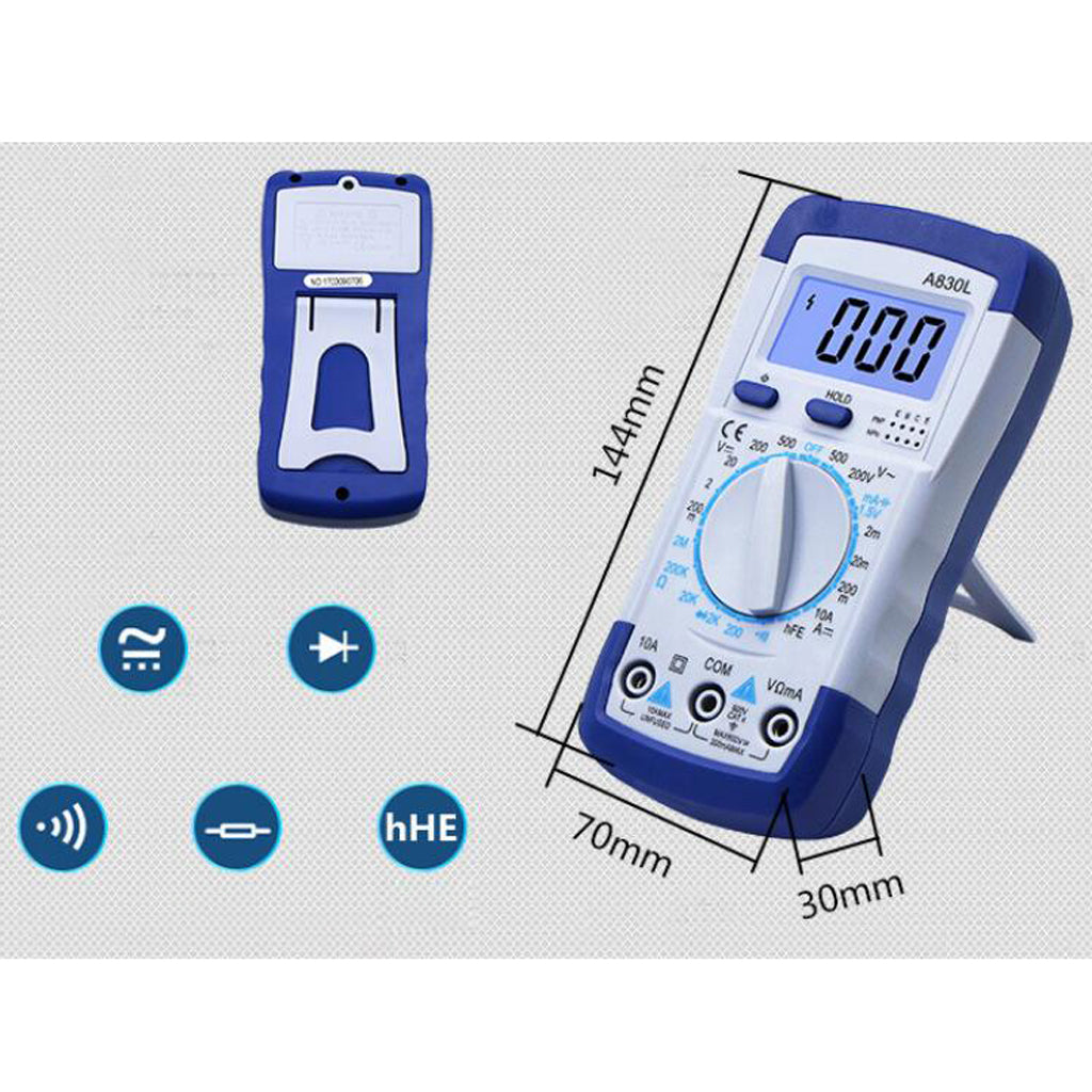 Hand held digital multimeter for measuring AC/DC voltage and AC/DC current, resistance, diode , transistor, freguency, temperature and continuity test with battery operated.