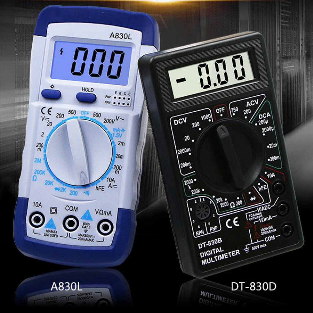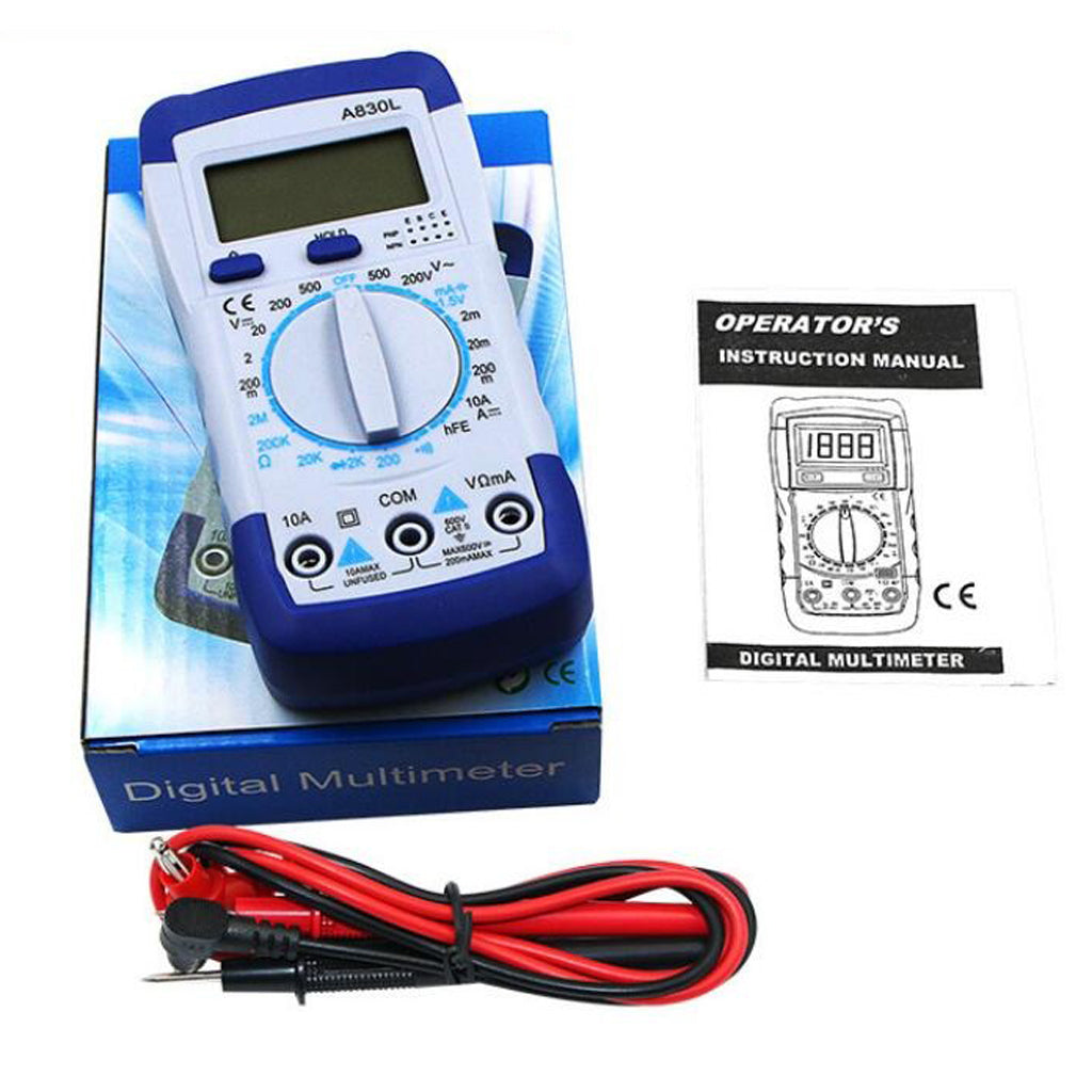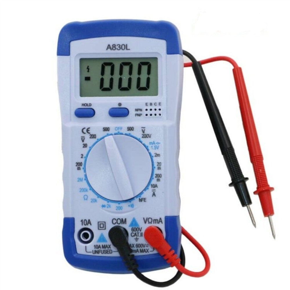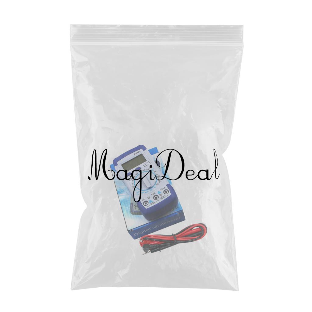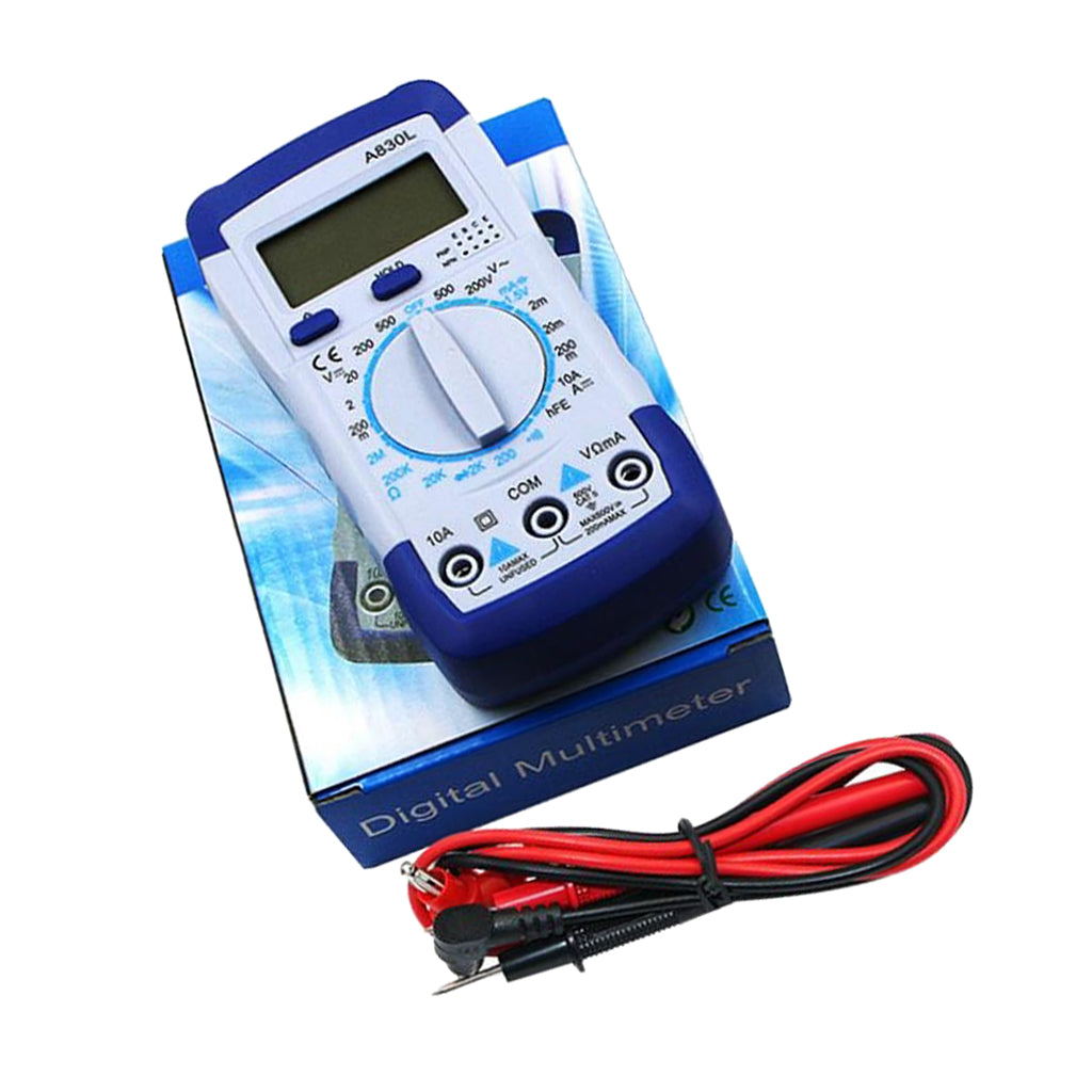 Hand held digital multimeter for measuring AC/DC voltage and AC/DC current, resistance, diode , transistor, freguency, temperature and continuity test with battery operated.