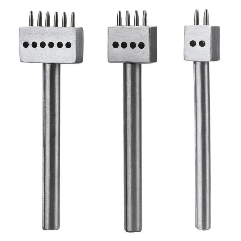 Leather Craft Row Hole Punch Cutter Tool Stitching DIY 8mm Space 6 Prong