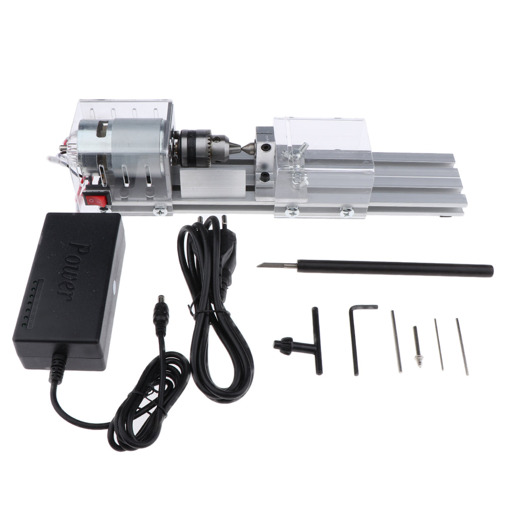Mini Lathe Beads Machine with Power Supply for Wood Working DIY Rotary Tools