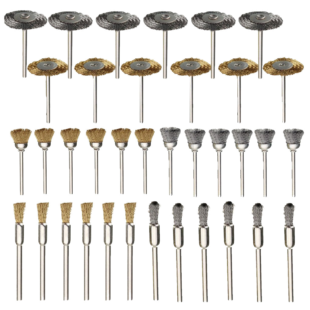 Pack of 36Pieces Rotary Brass Steel Wire Wheel Brush Cup Tool Shank for Drill Rust Weld
