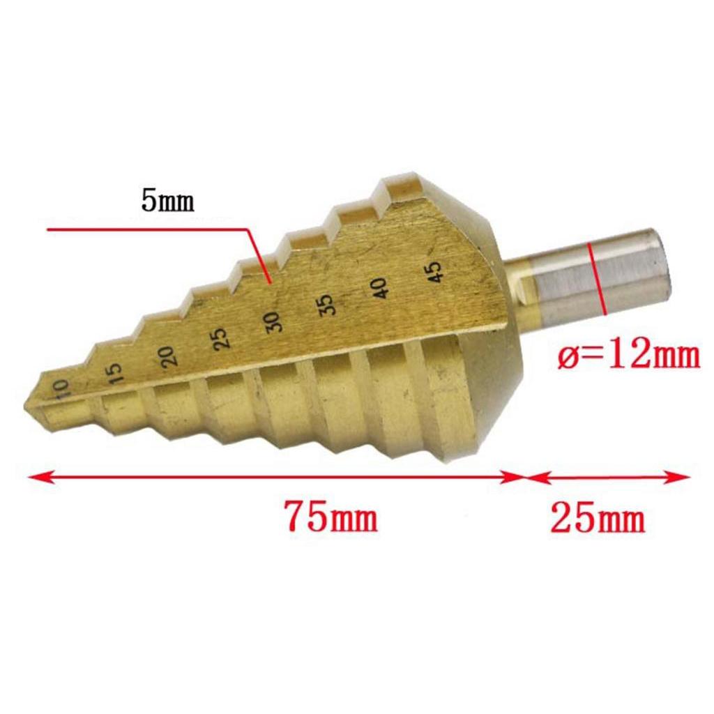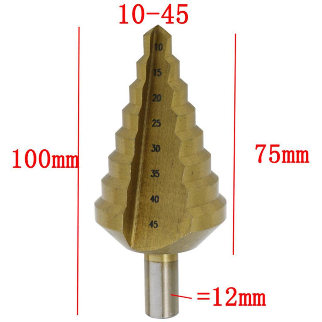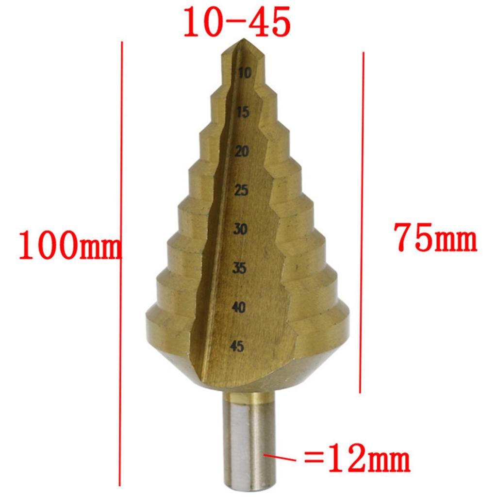 Step drill 10-45mm (8 steps: 10, 15, 20, 25, 30, 35, 40, 45mm)