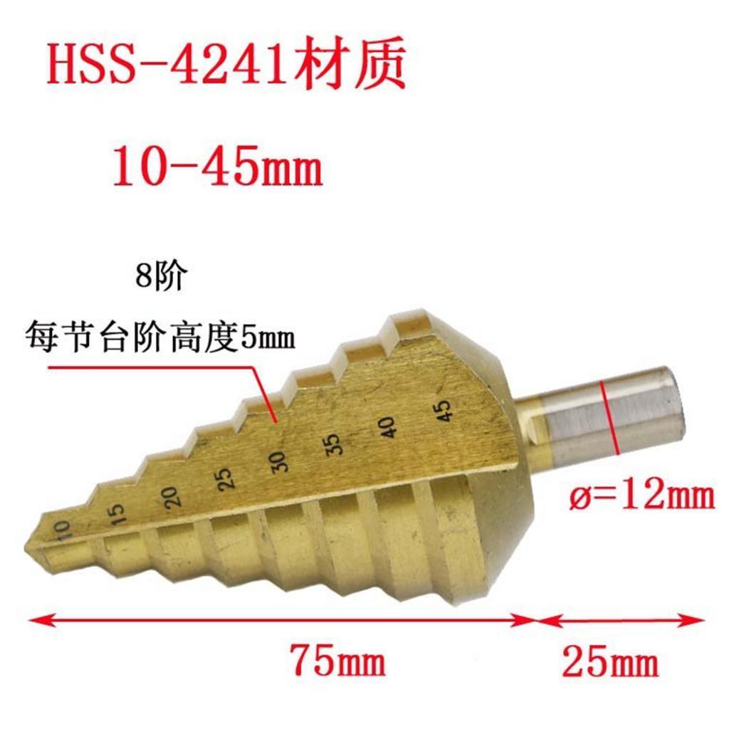 Power Tools Accessories, HSS Cone Drill Bit, 1/4 Inch Shank, 8 Steps, 10, 15, 20, 25, 30, 35, 40, 45mm