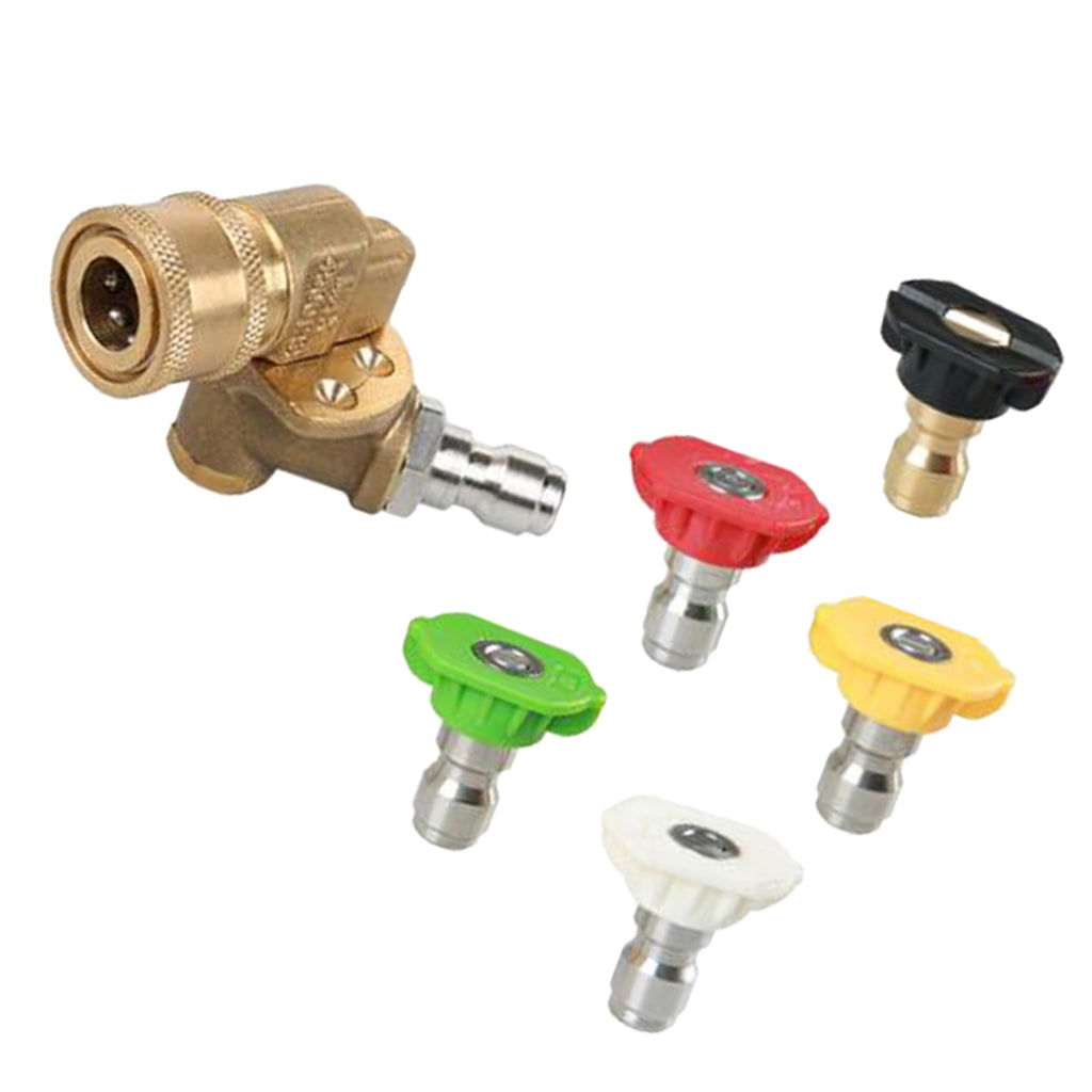 The universal pressure washer accessories have 5 Spray Nozzle Tips and 90 Degree Quick Connect Pivoting Coupler, Fit most of high pressure washer wands up to 4500psi