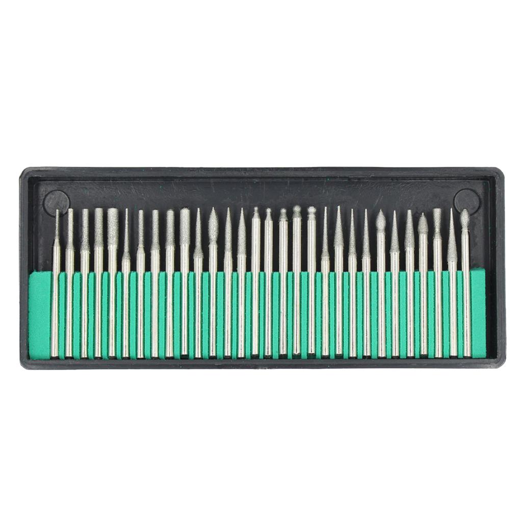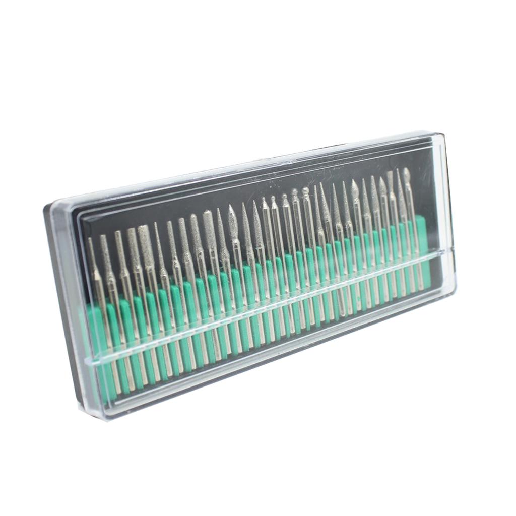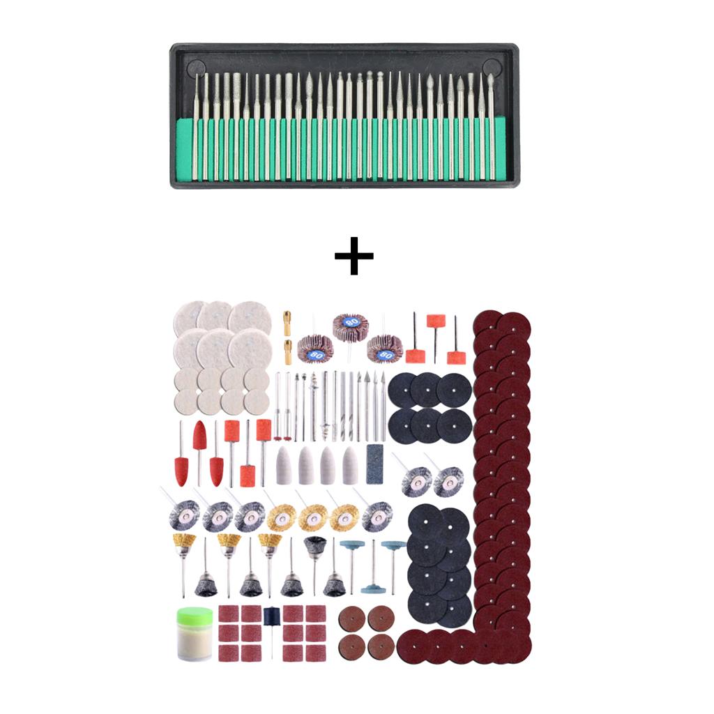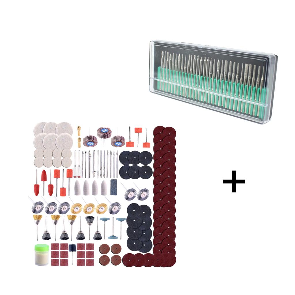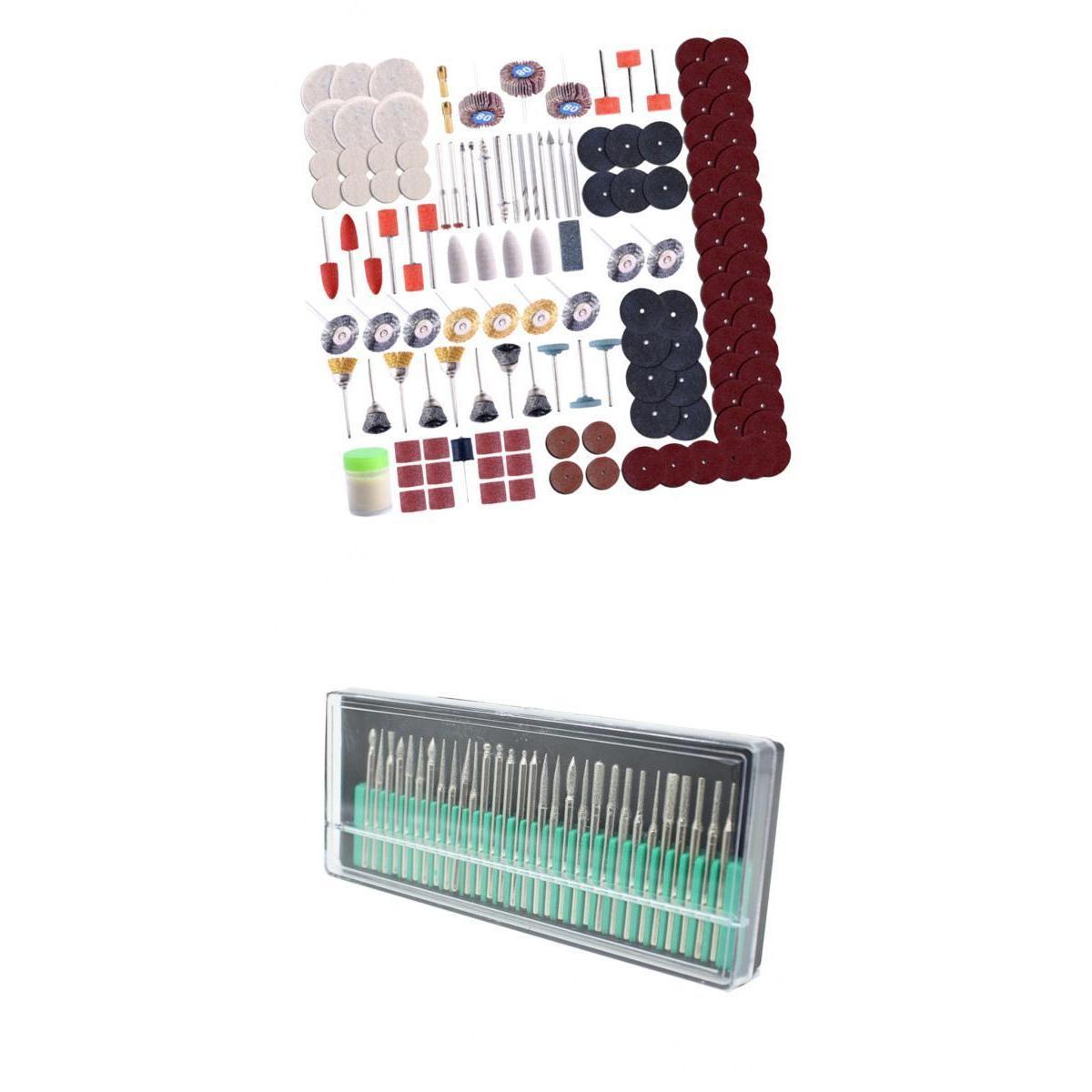 Set of 30pcs assorted diamond-coated burrs + Set of 350pcs rotary tool accessories kit.