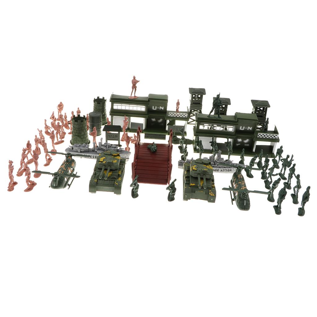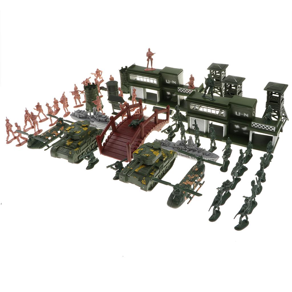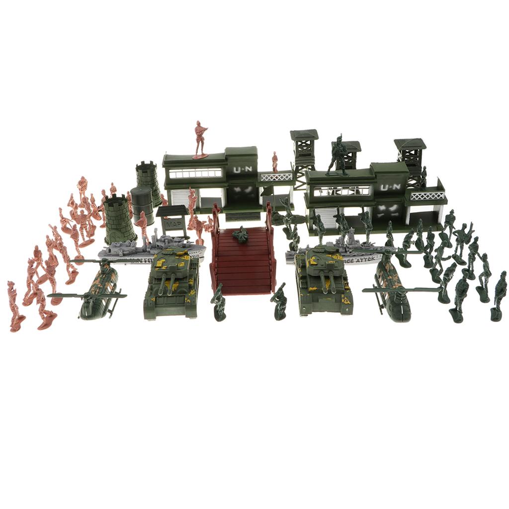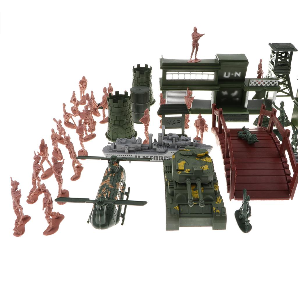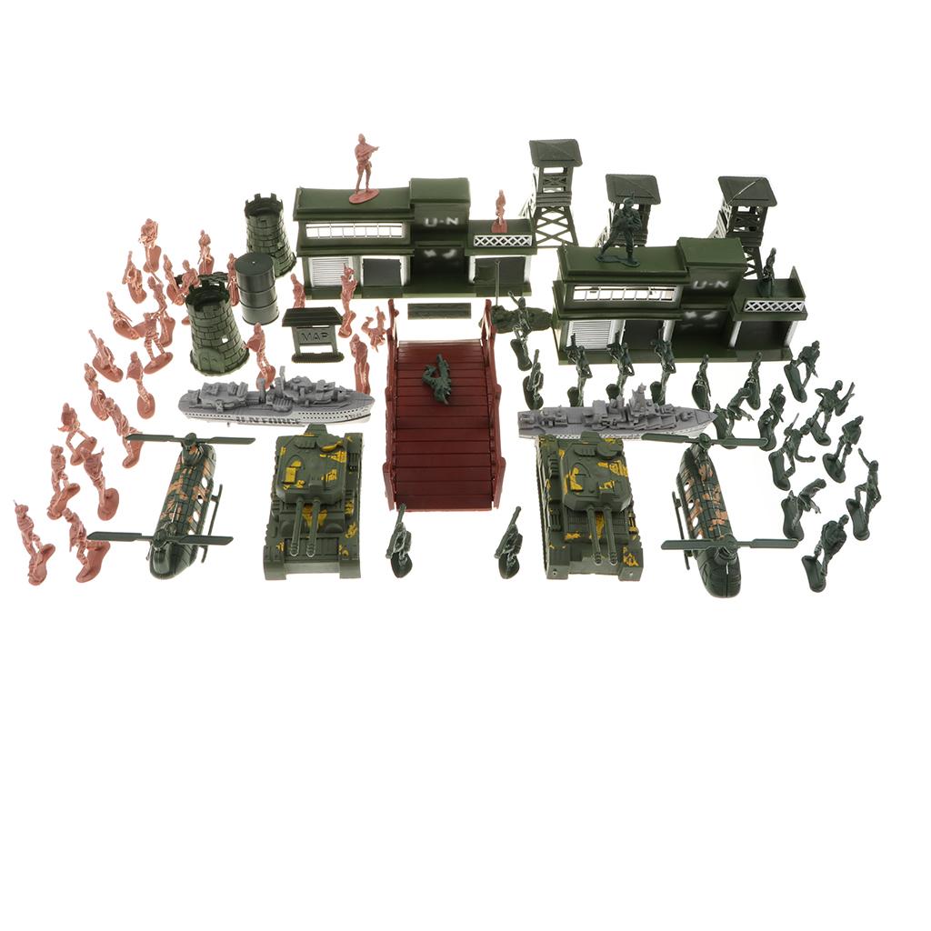 Includes approx. 60 pieces 5cm 1/36 scale soldiers figures(in 2 colors), 2 Warships, 2 Tanks and other accessories (we will send randomly, some small accessories will be different)