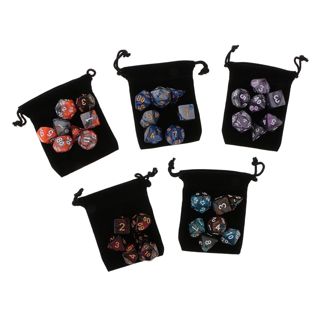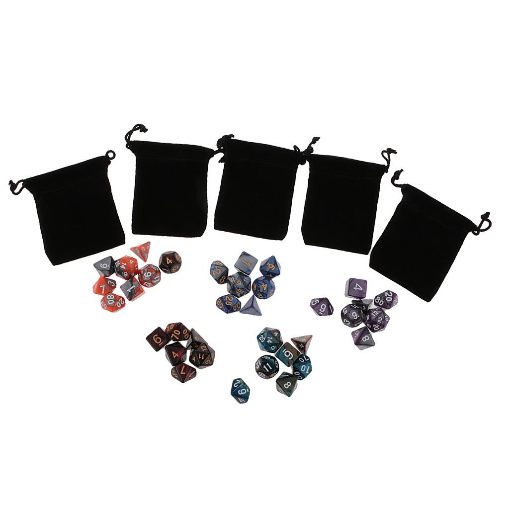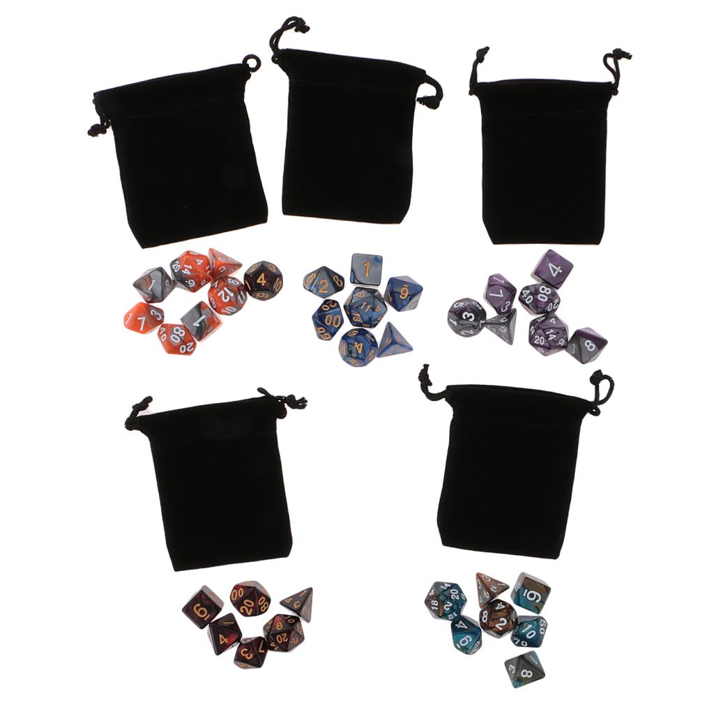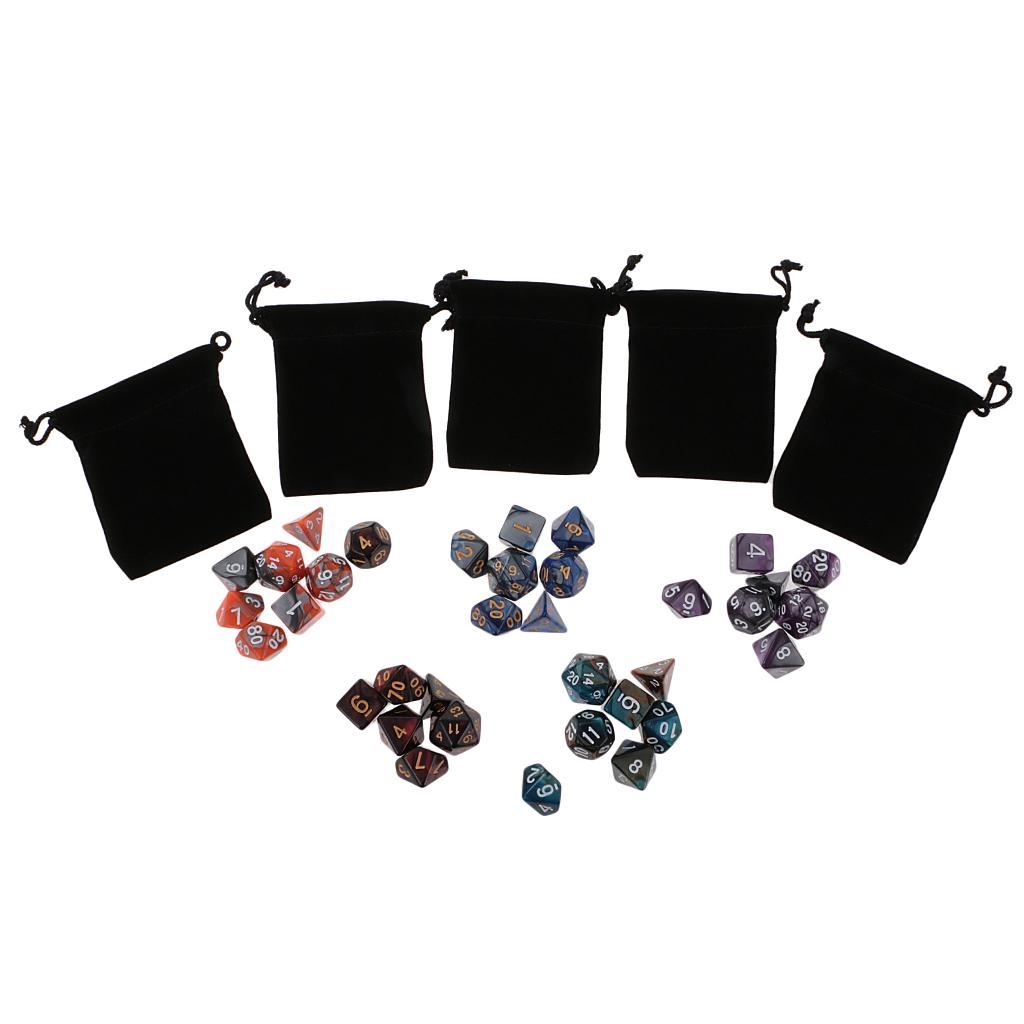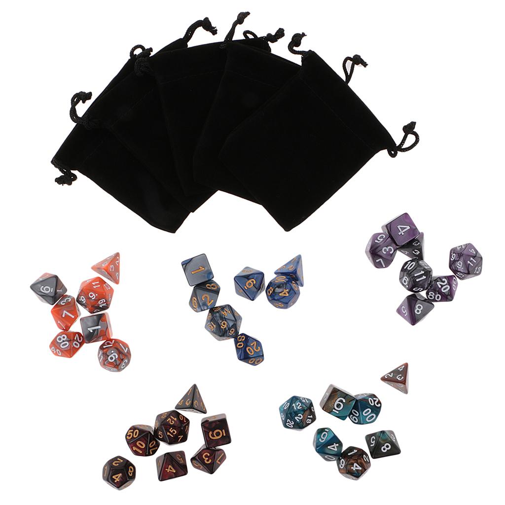 Good amusing dice game accessory: the polyhedral 35 set (D20 D12 D10 D8 D6 D4) is a good accessory for Dungeons and Dragons DND MTG RPG.they are Double-Colors Dice.Come with 5 pieces Black bags