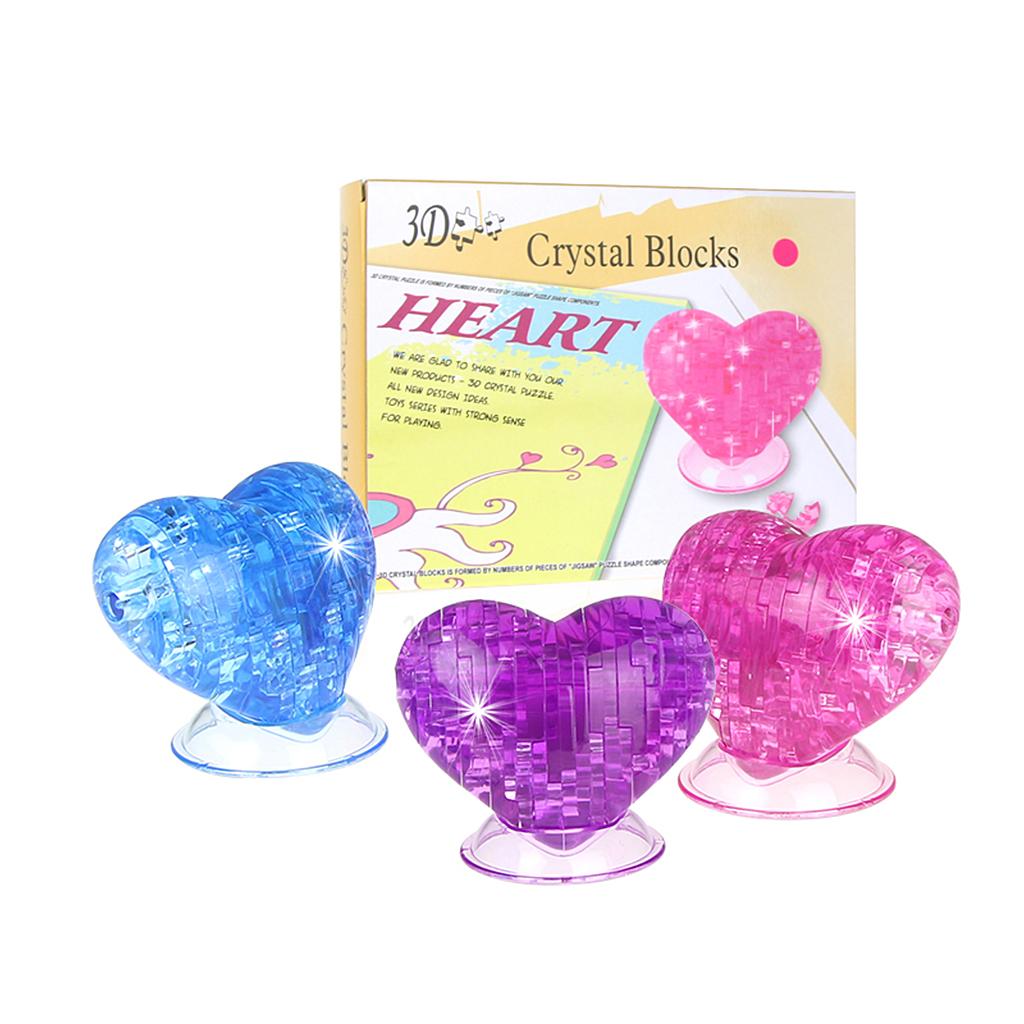 3D Crystal Puzzle Jigsaw DIY Love Heart Model Blocks Brain Teaser Decoration Blue