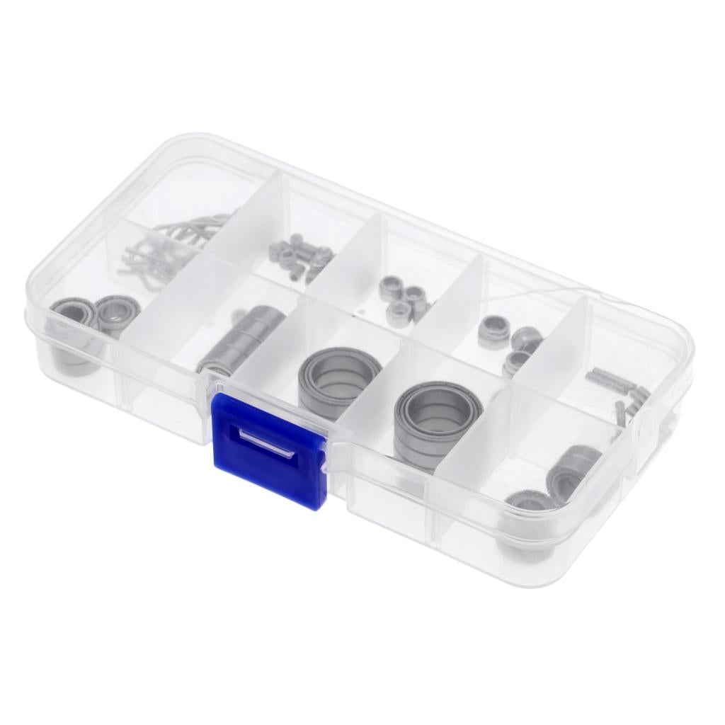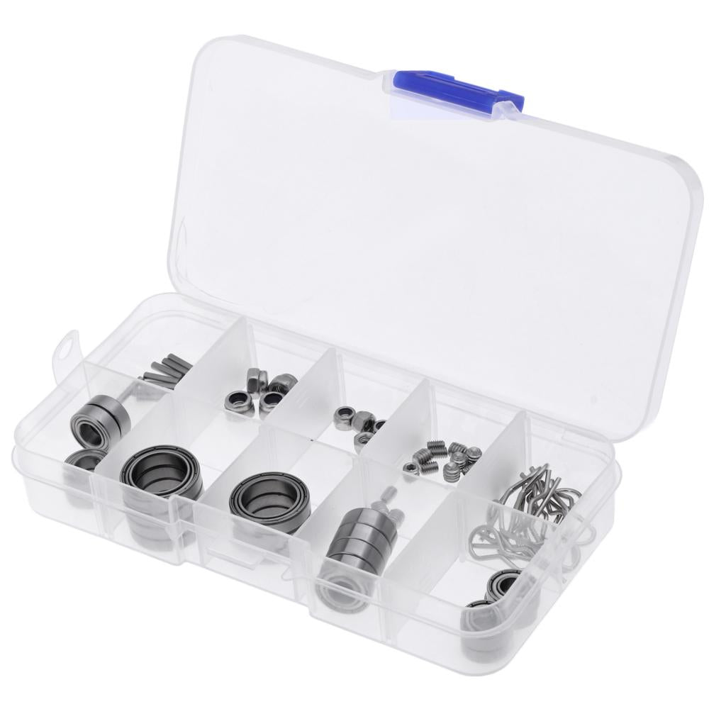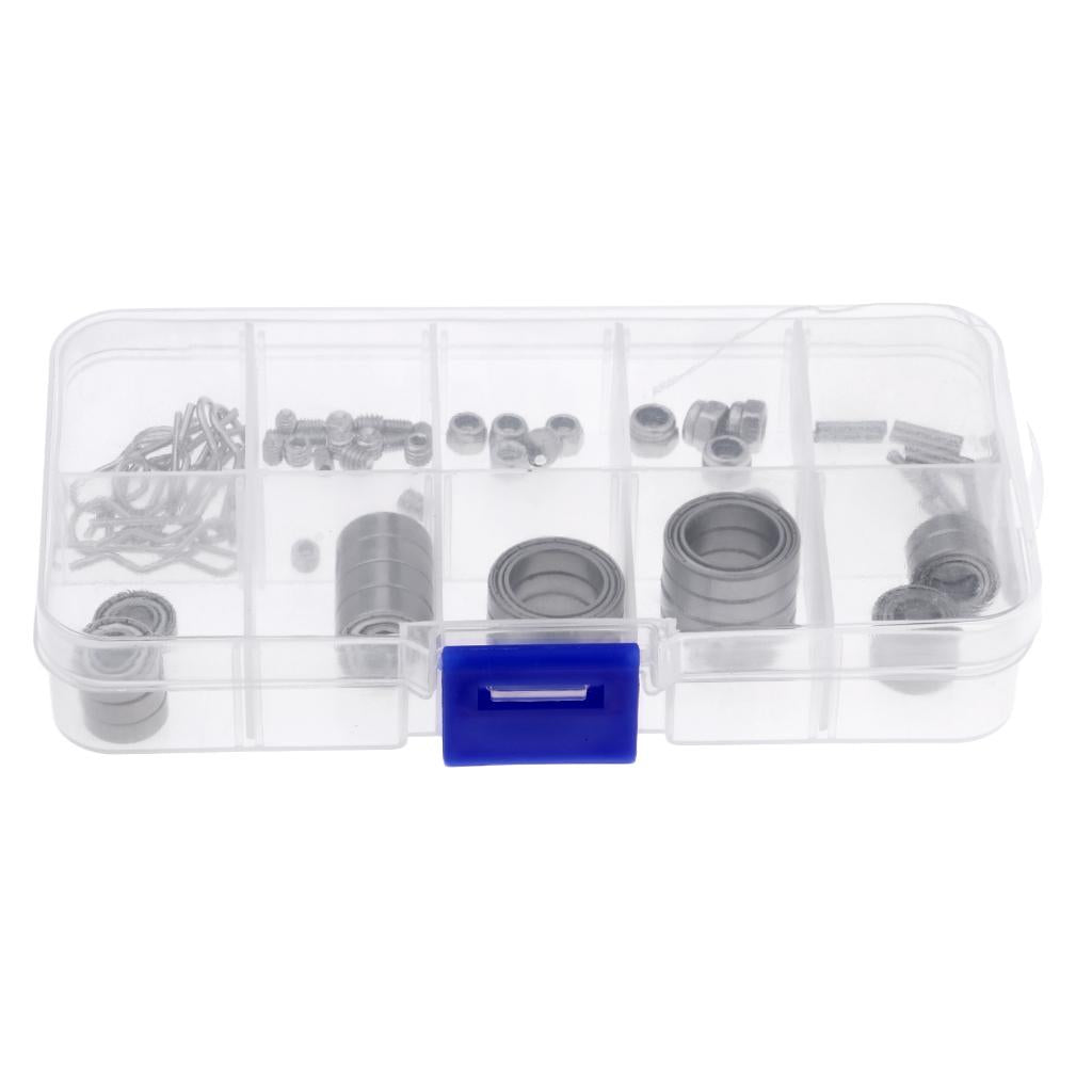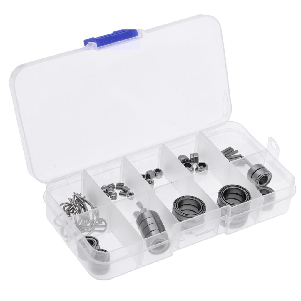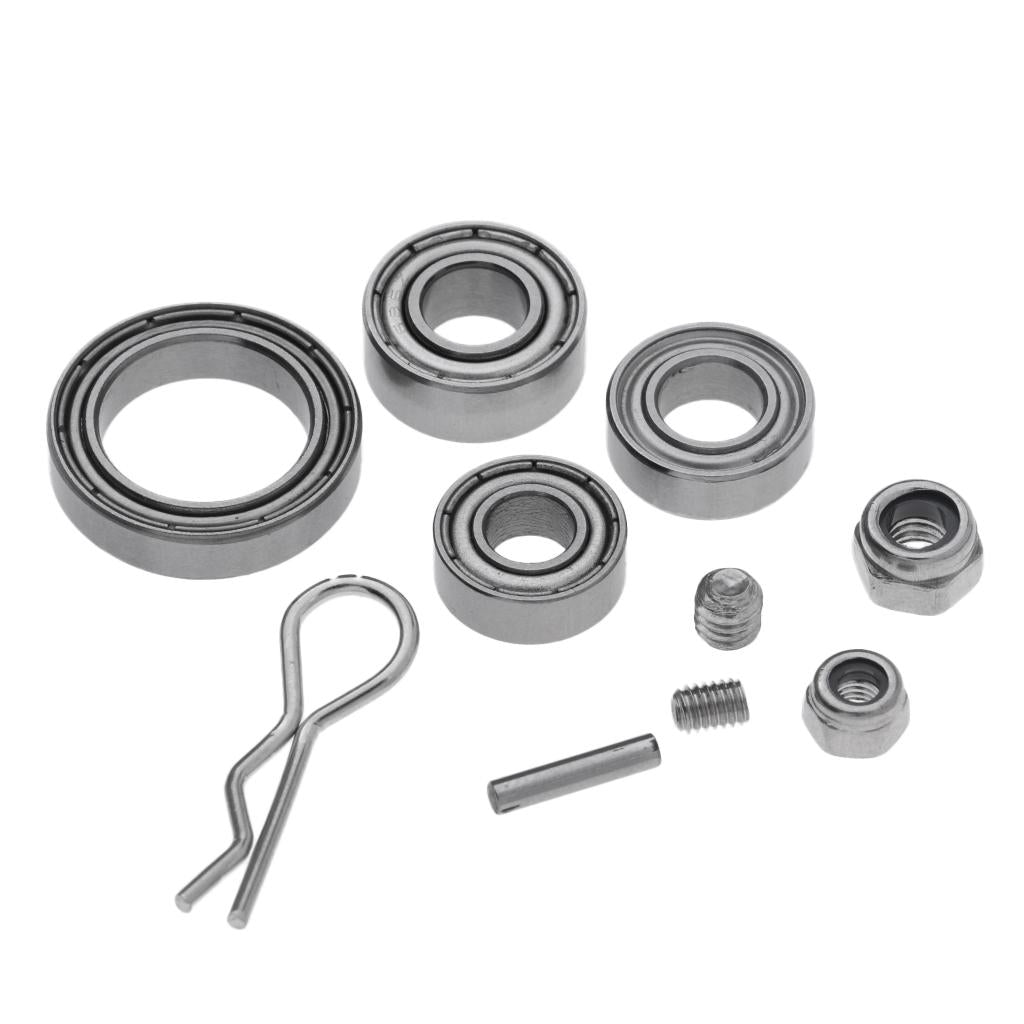 Comes complete with assorted bearings, screws, nuts, wheel pins and R-Shaped pins