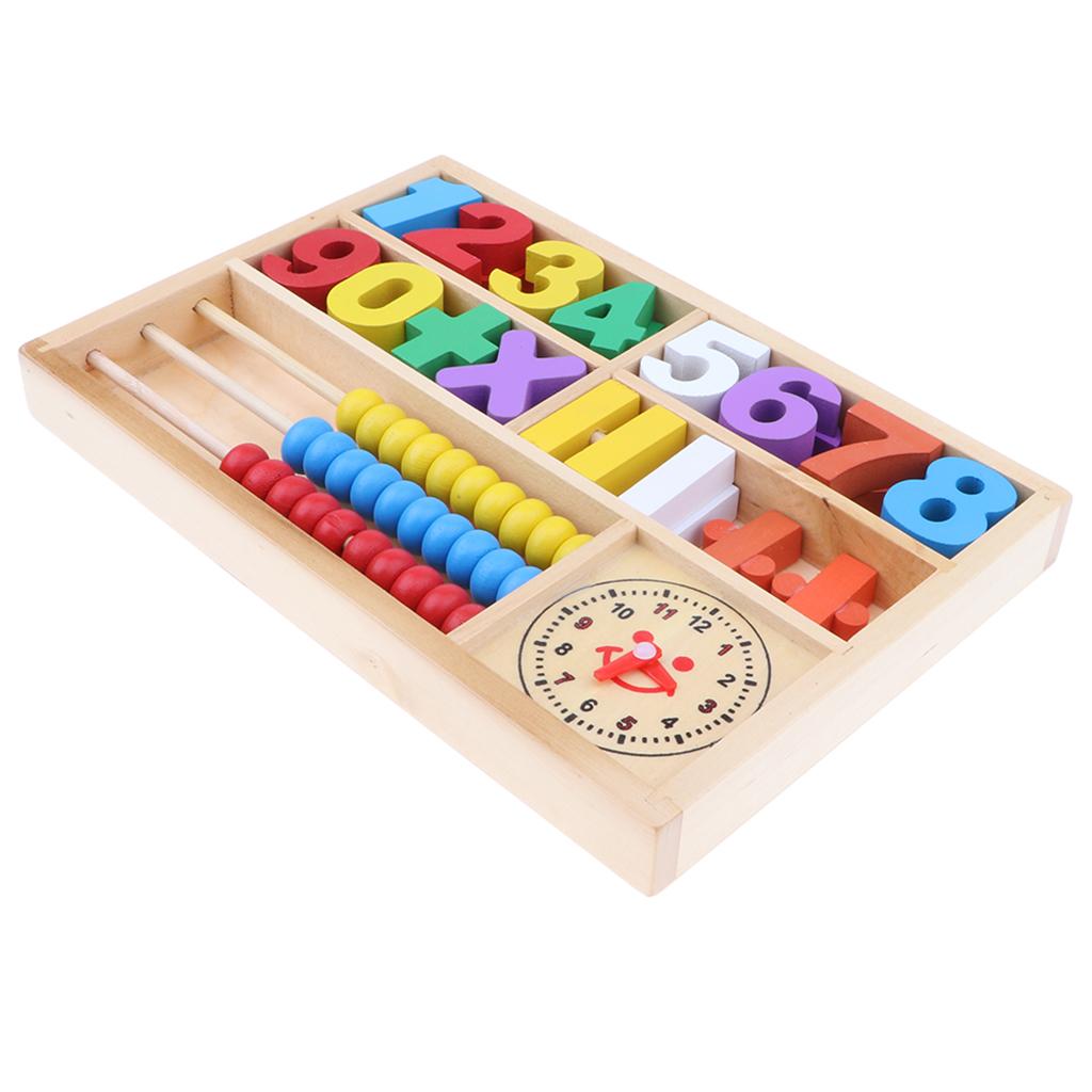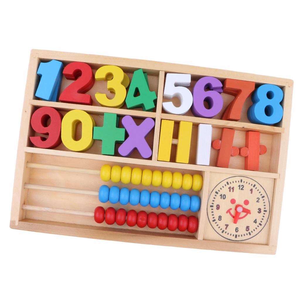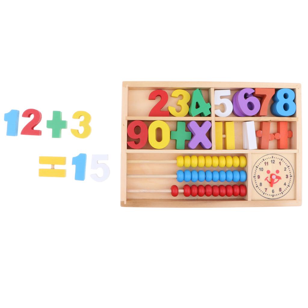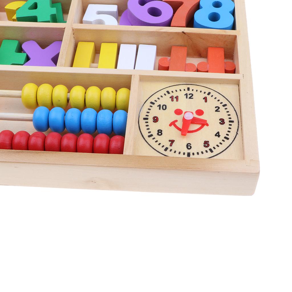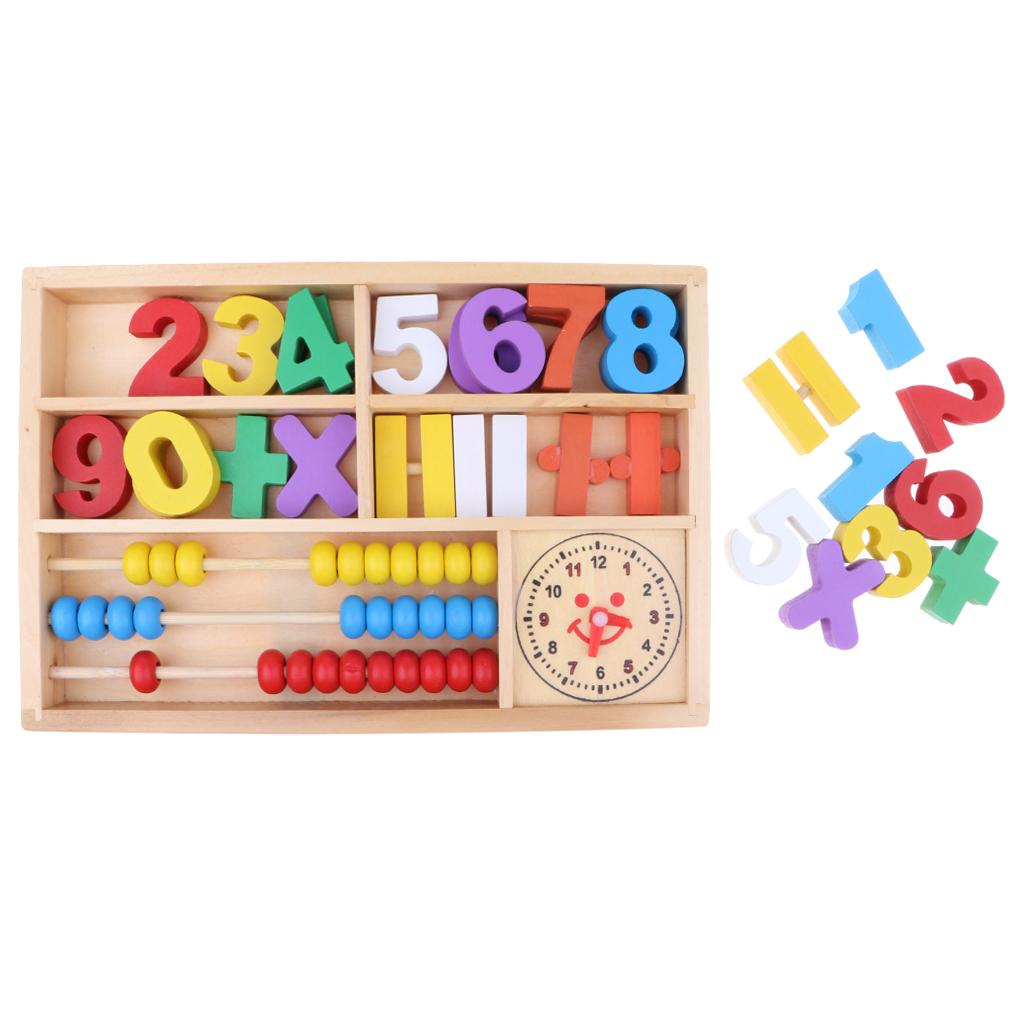 Box of mathematic learning toy set: comes with 2 sets 0~9 numbers, math calculating symbols, calculating frame, and clock