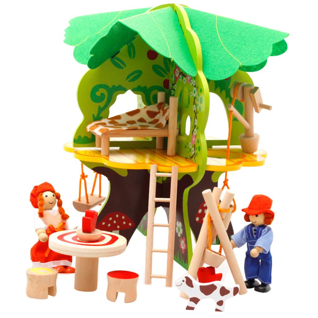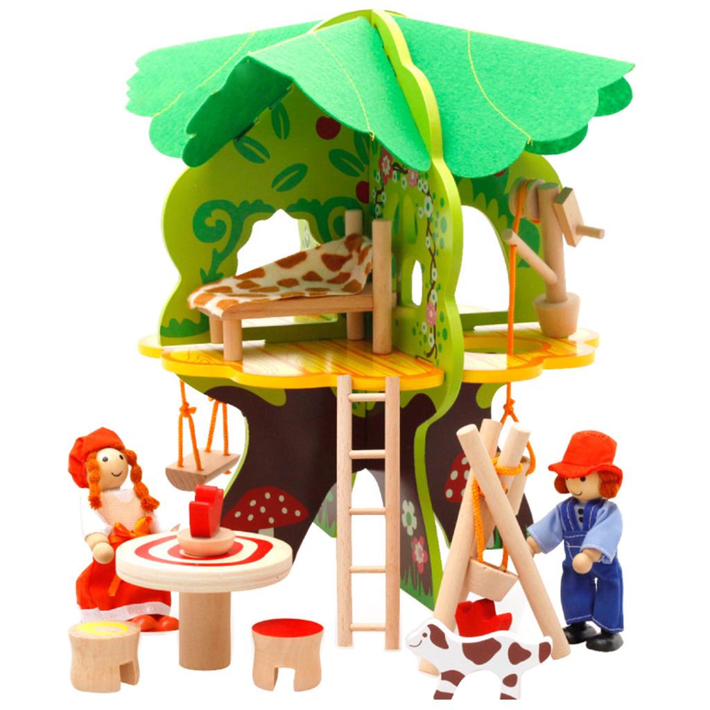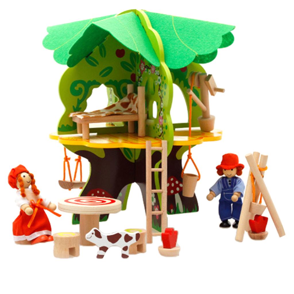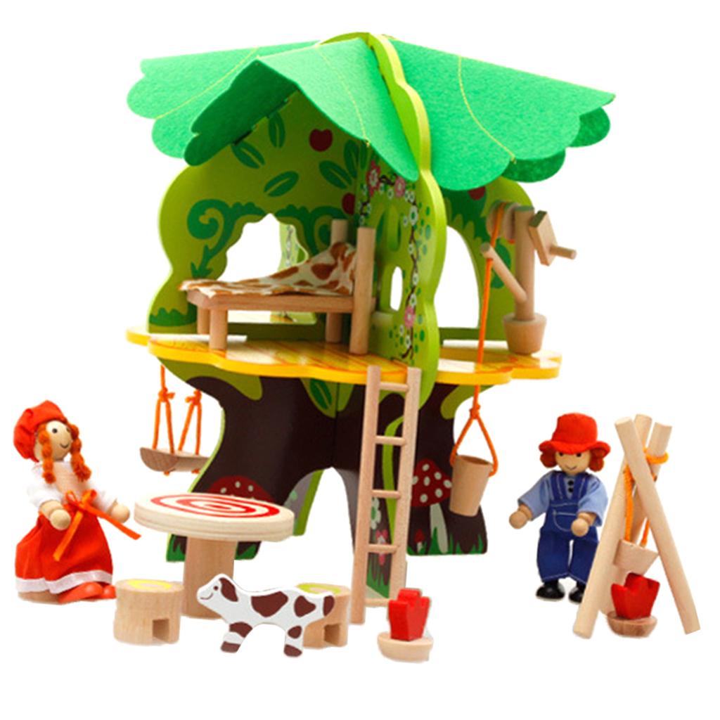 3D DIY wooden dollhouse miniature villa tree house furniture doll figures kits building blocks toy set