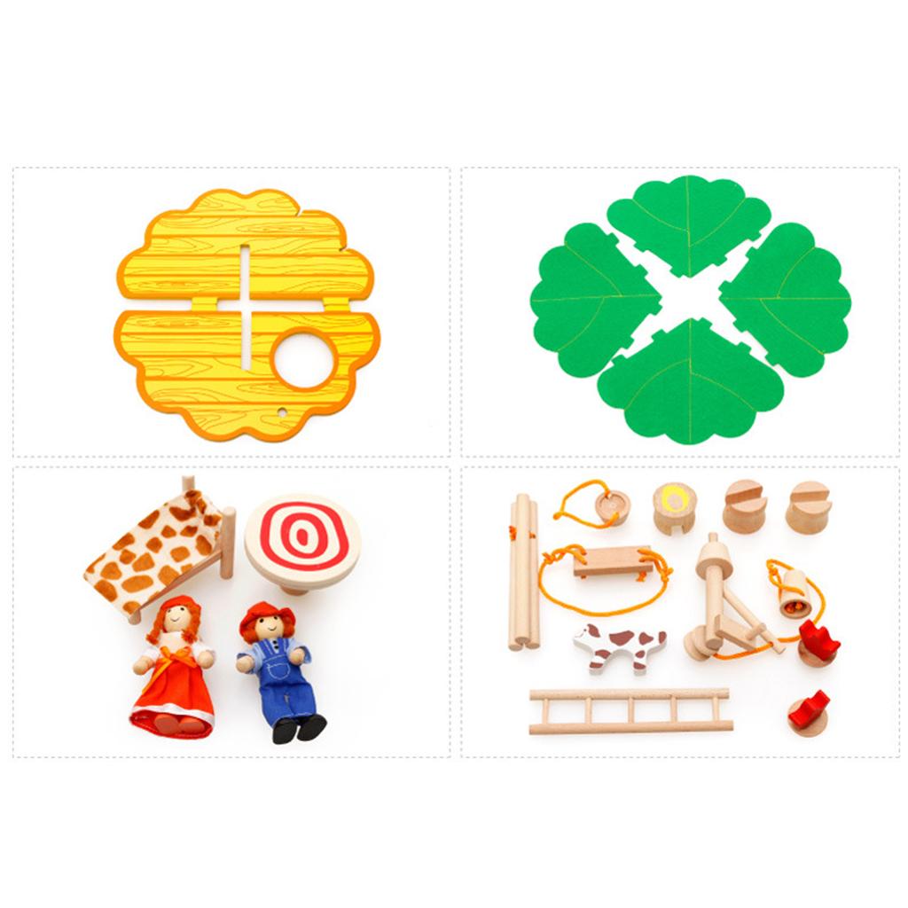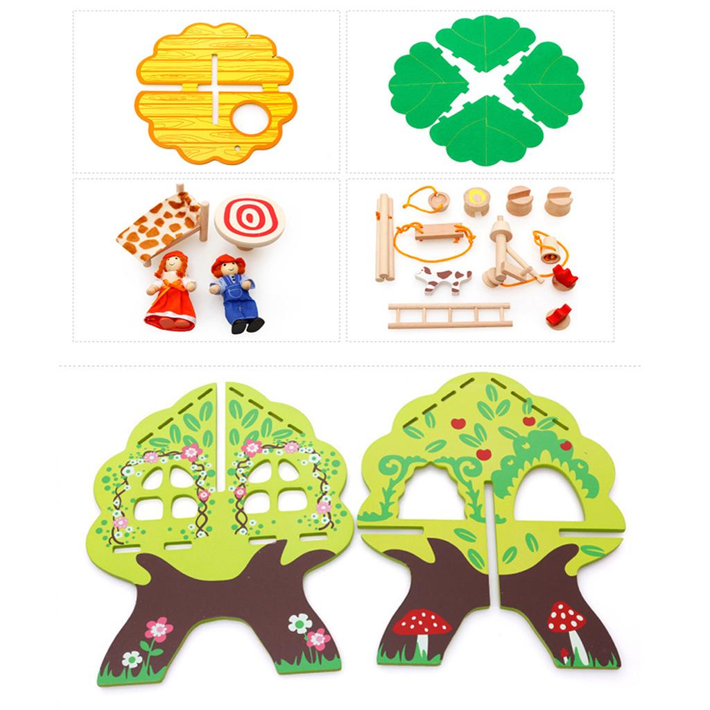 DIY Wooden Miniature Dollhouse Villa Tree House Doll Figures Furniture Set Kids Building Blocks Educational Toy Birthday Gift