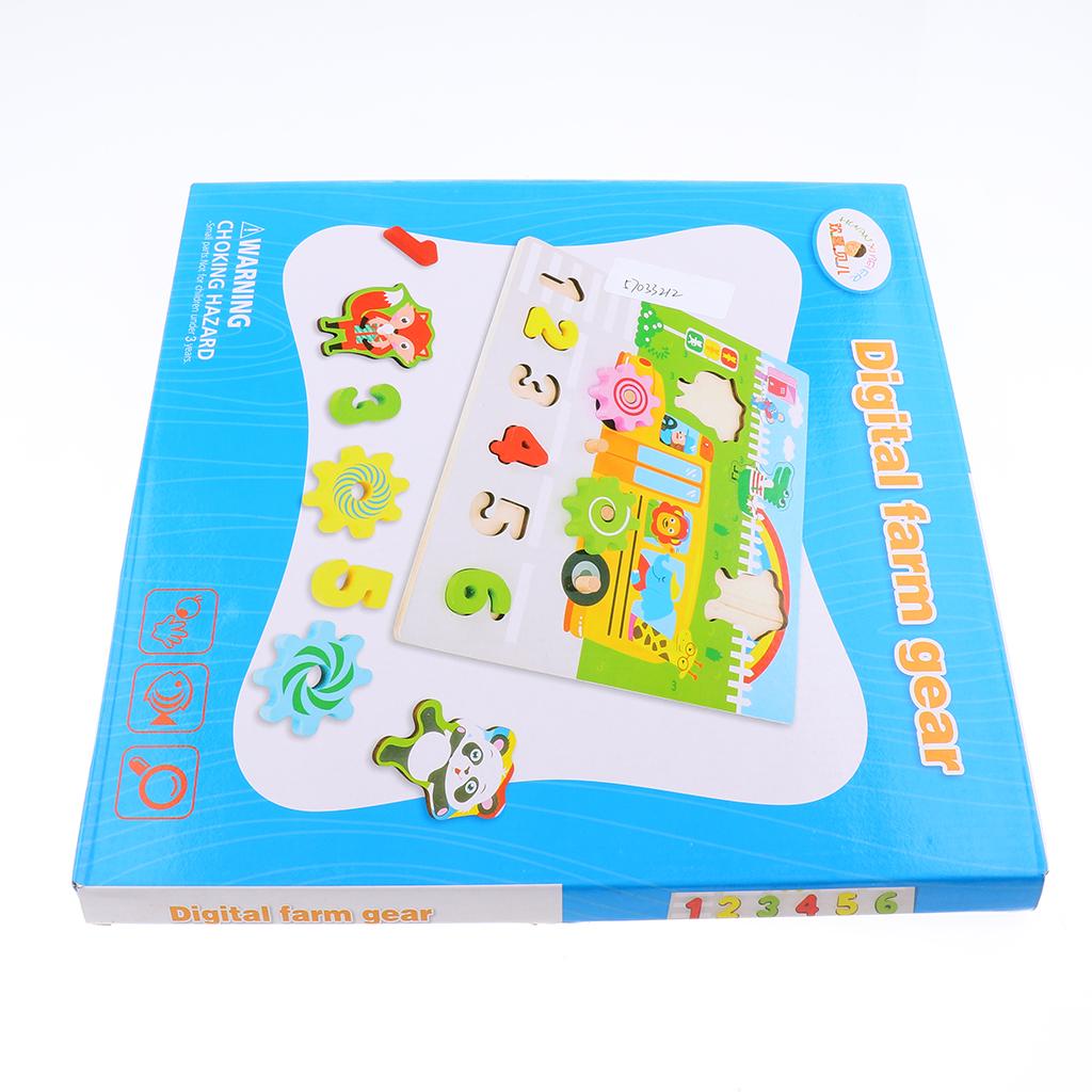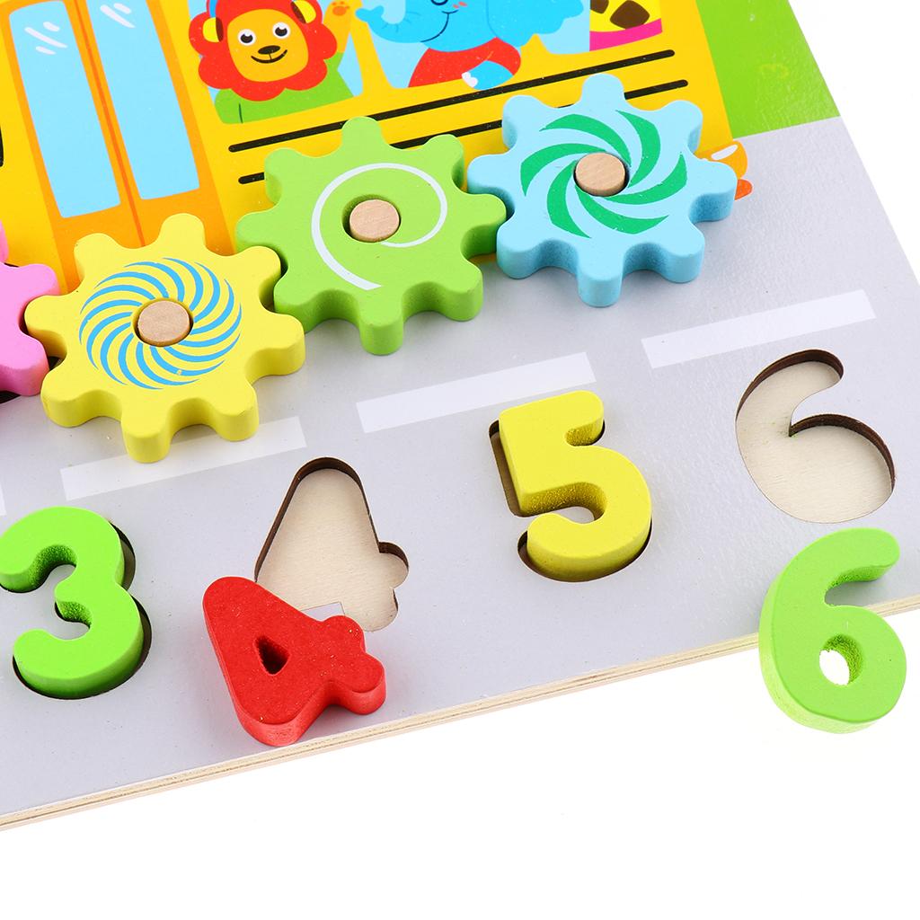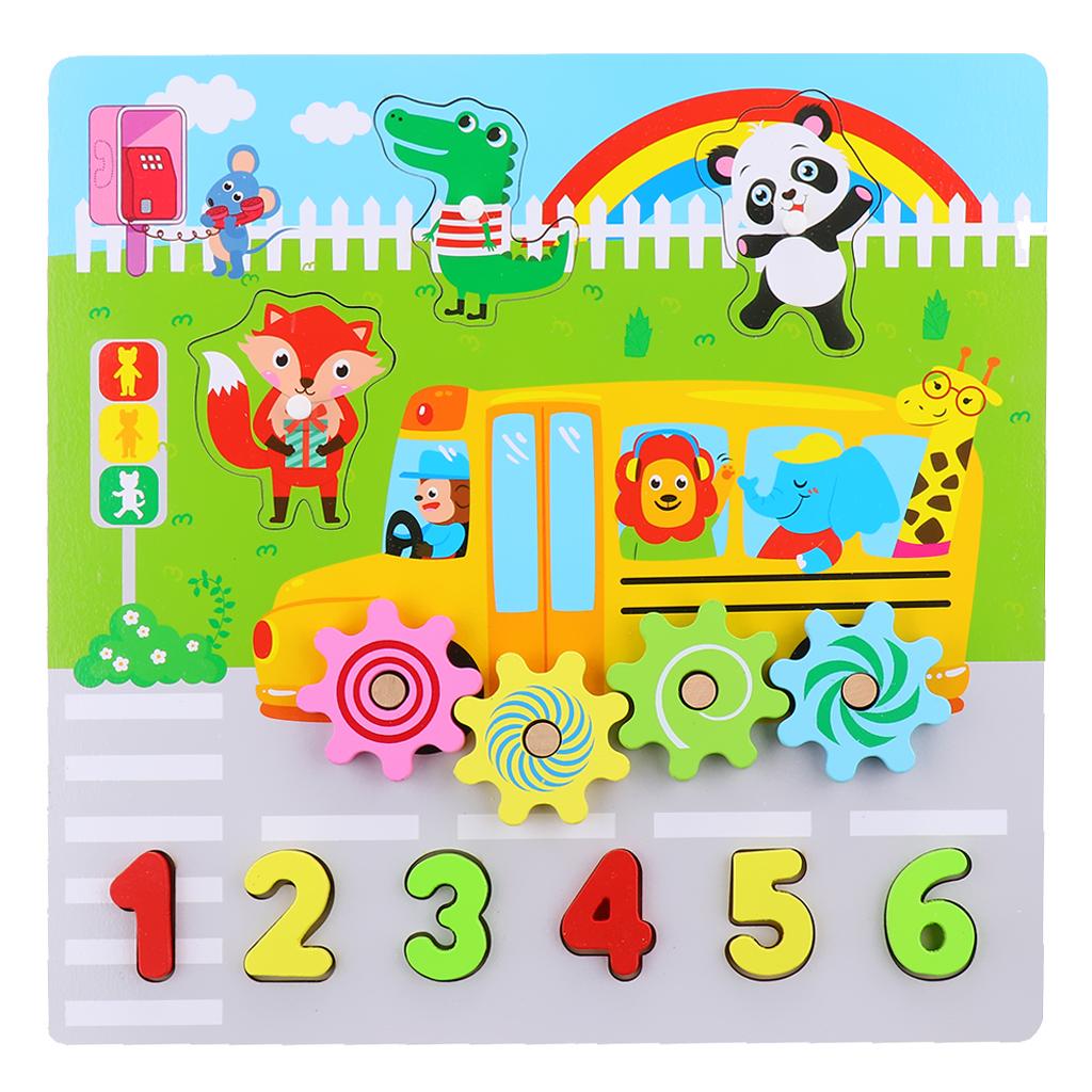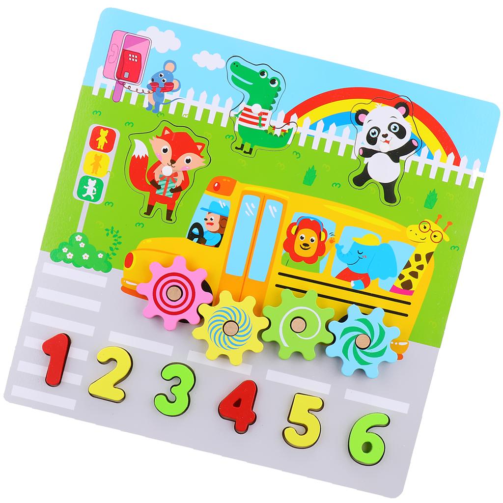 Wooden puzzles toy, grab board, including animal gear and number shape, for kids and kindergarteners.