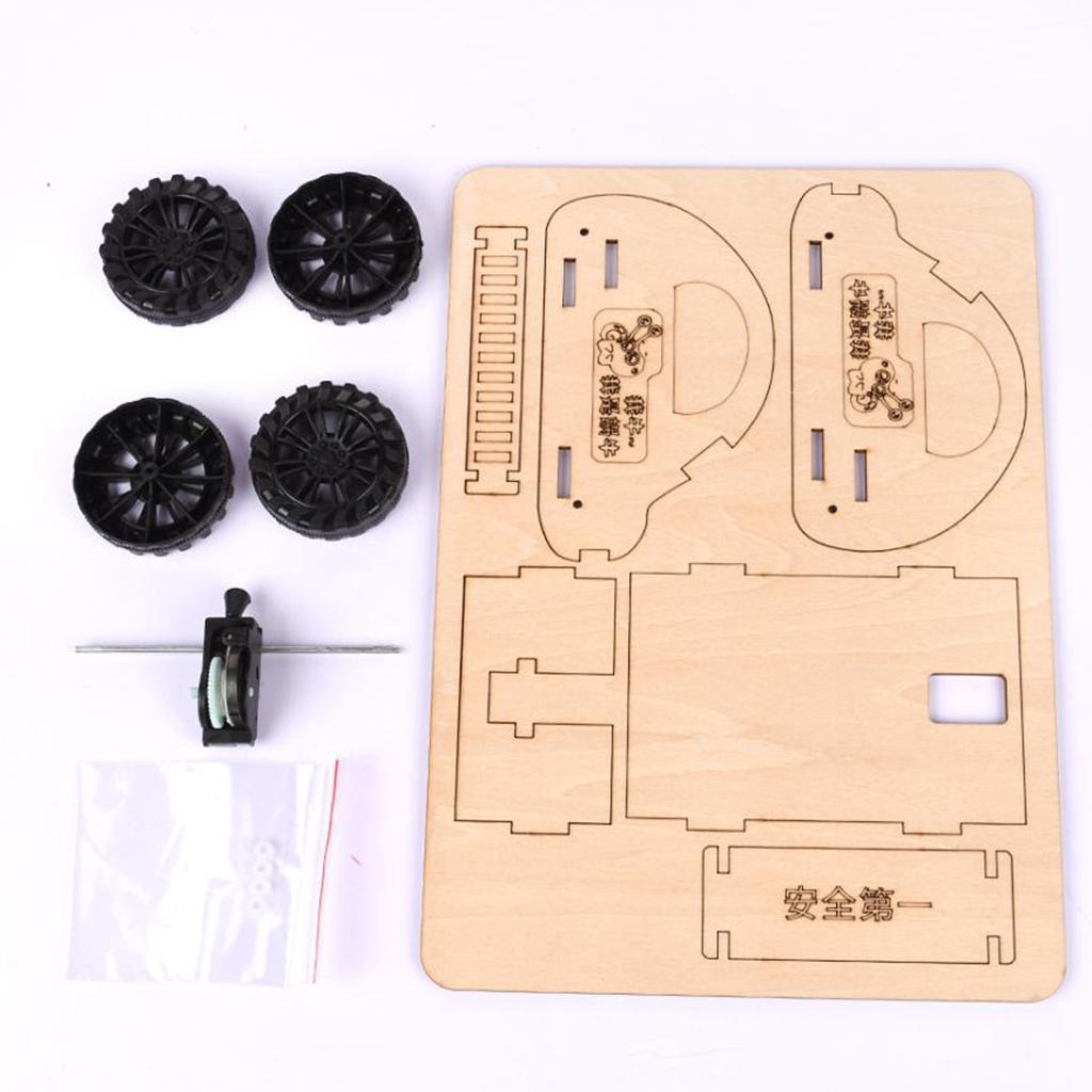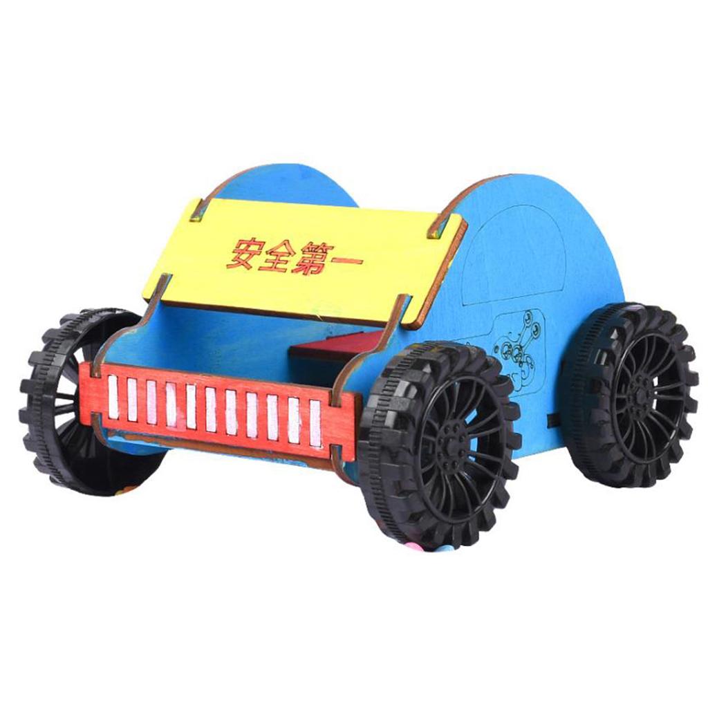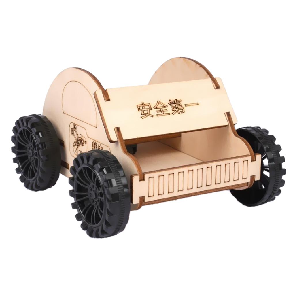 Creative wooden pulling car DIY model kids educational science innovation toy